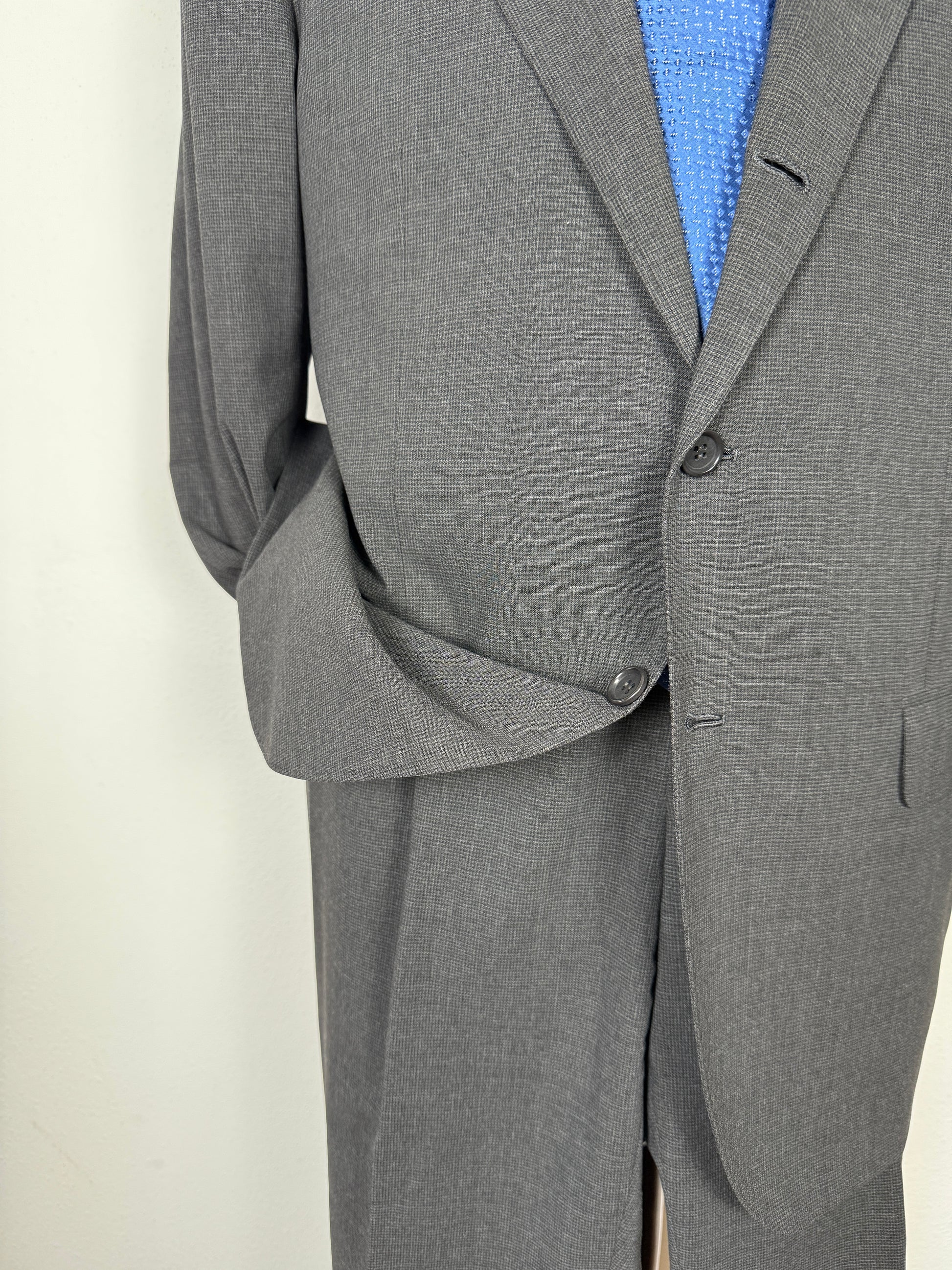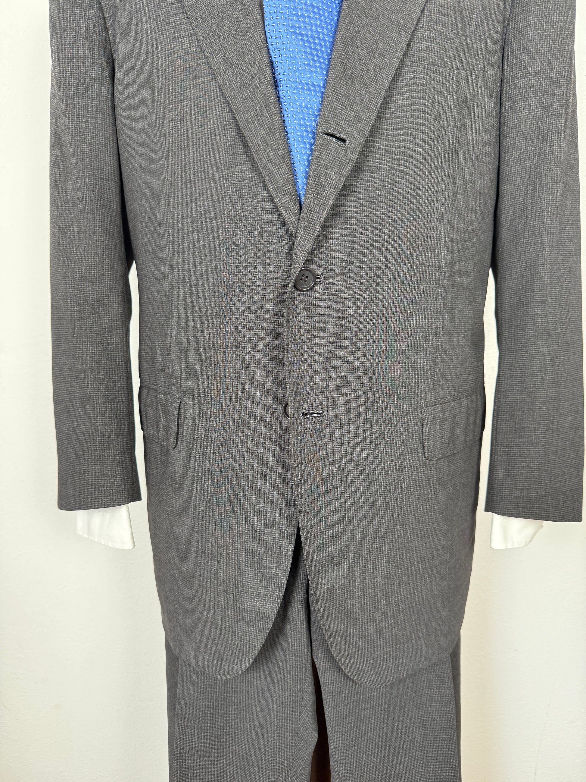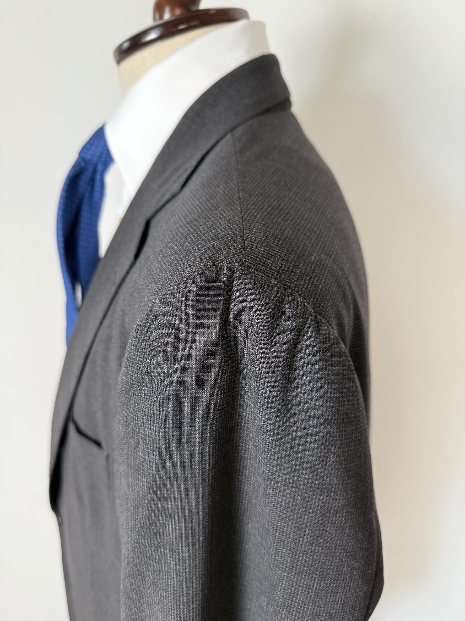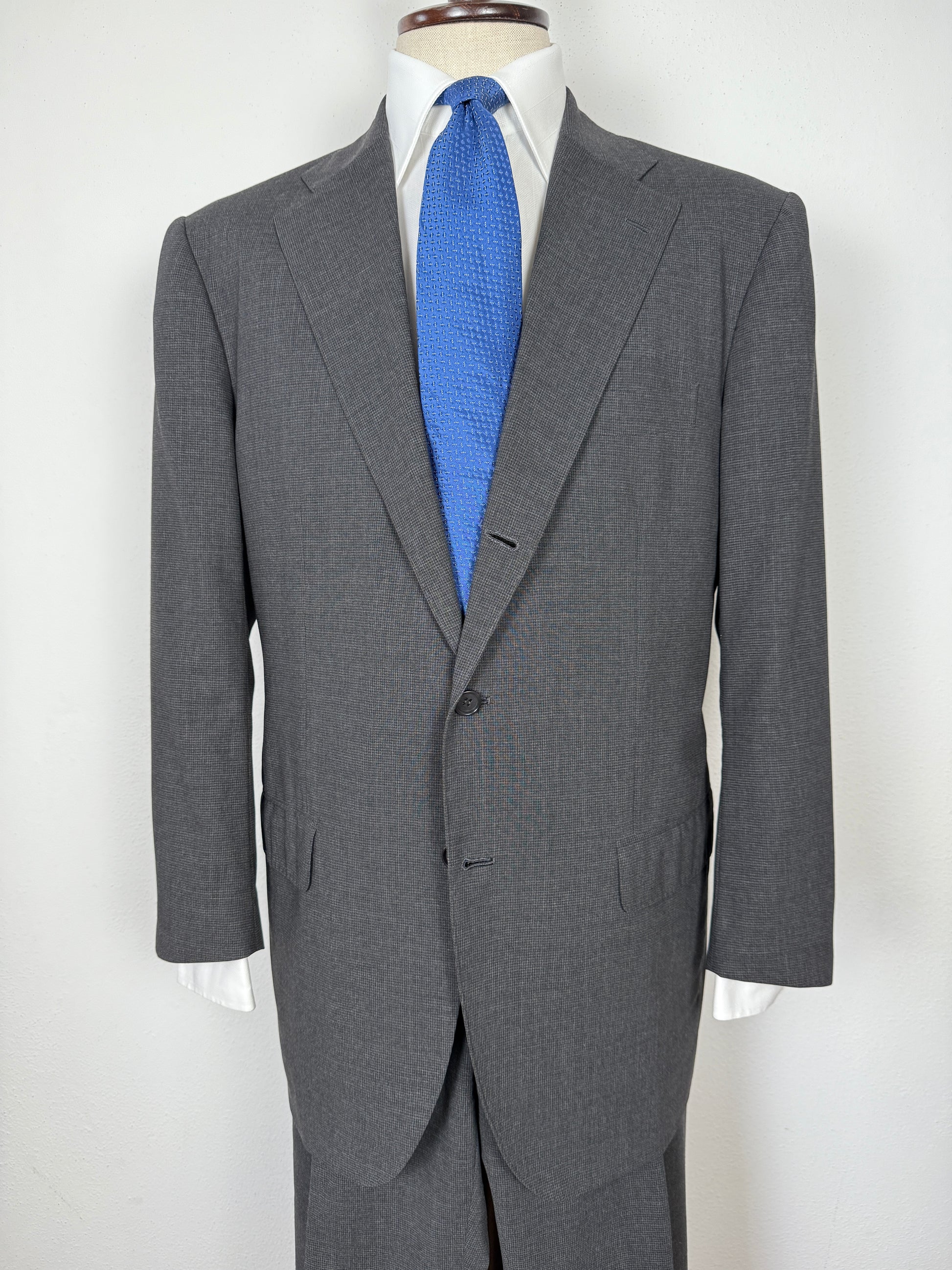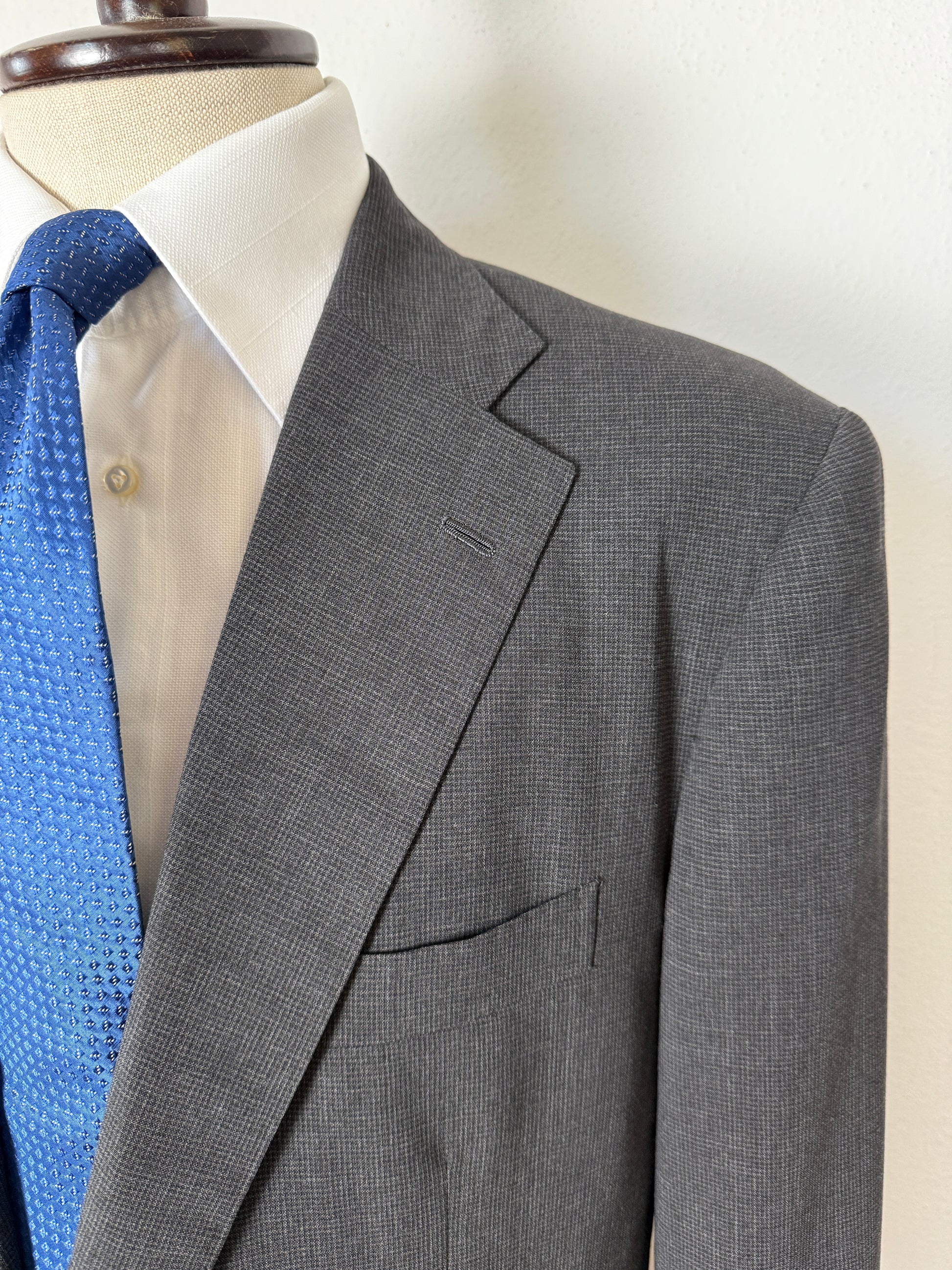 Abito Sartorio Napoli (gruppo Kiton) in leggerissimo fresco di lana 100%, armatura tela, colore grigio antracite con micro trama a quadrettini.