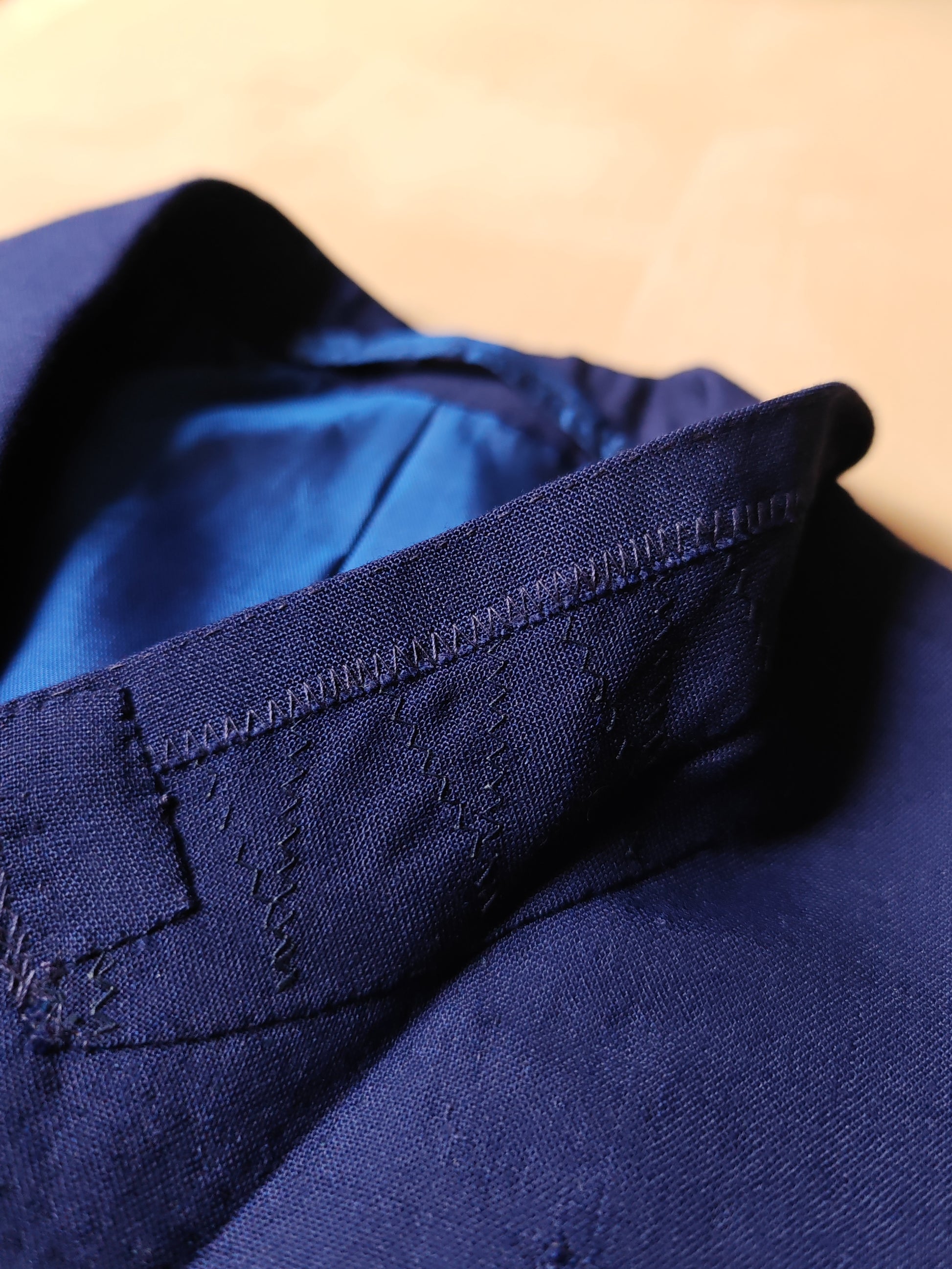 La giacca ha ovviamente un'ottima costruzione interamente intelata (full canvas), anche se molti passaggi sono fatti a macchina, anche con punto zigzag.