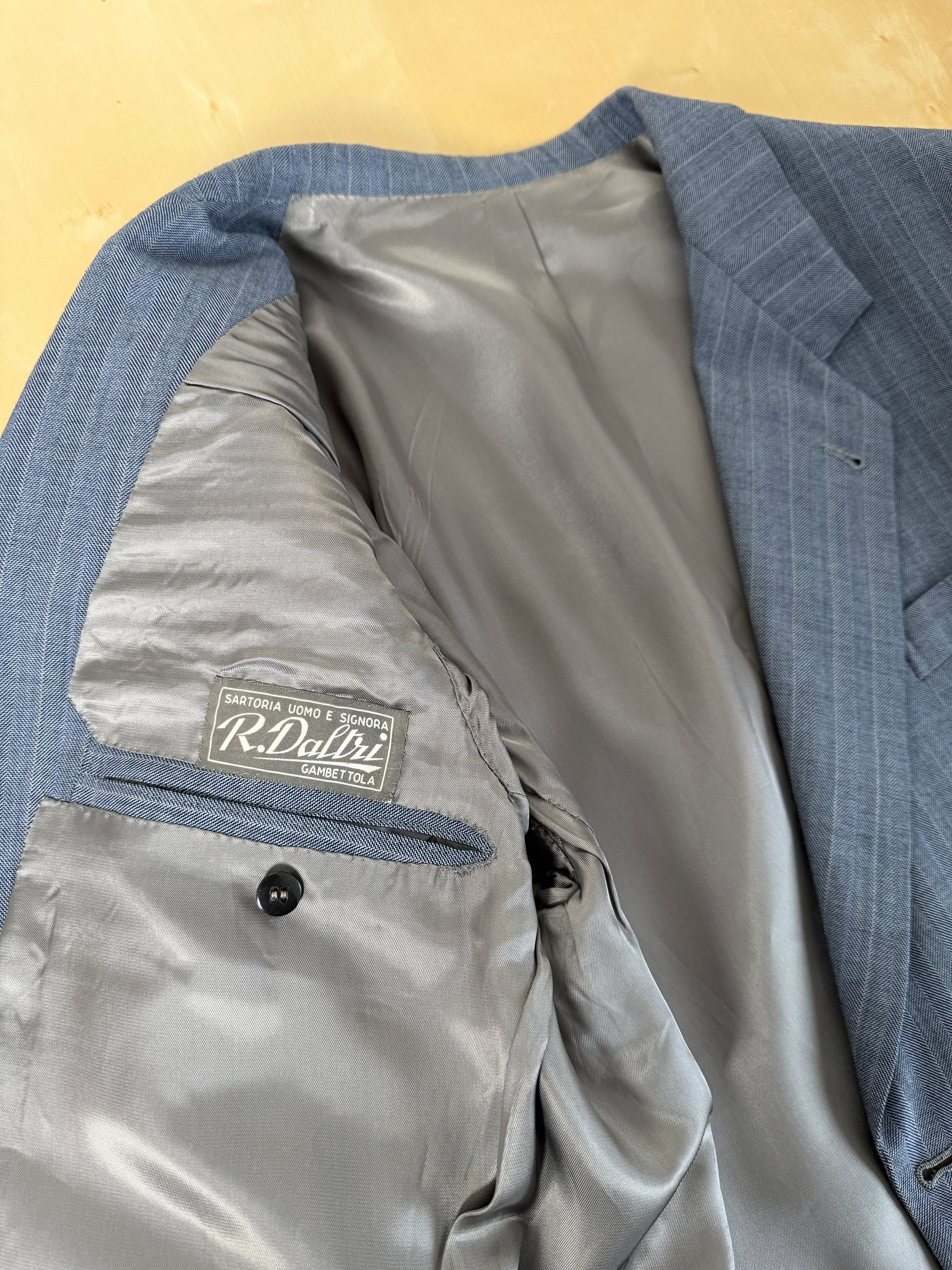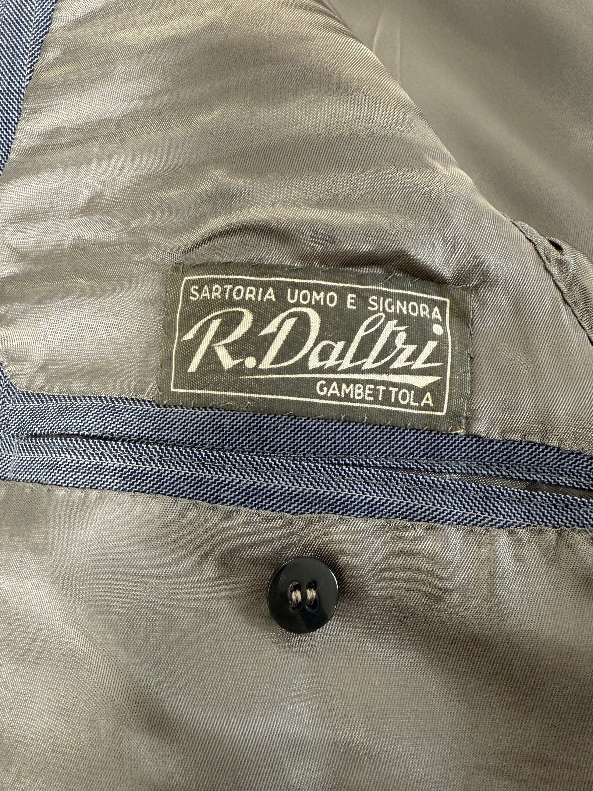 Abito sartoriale degli anni '60 (vecchia sartoria Daltri di Gambettola, FC), confezionato con un bellissimo tessuto in grisaglia 100% lana pettinata.