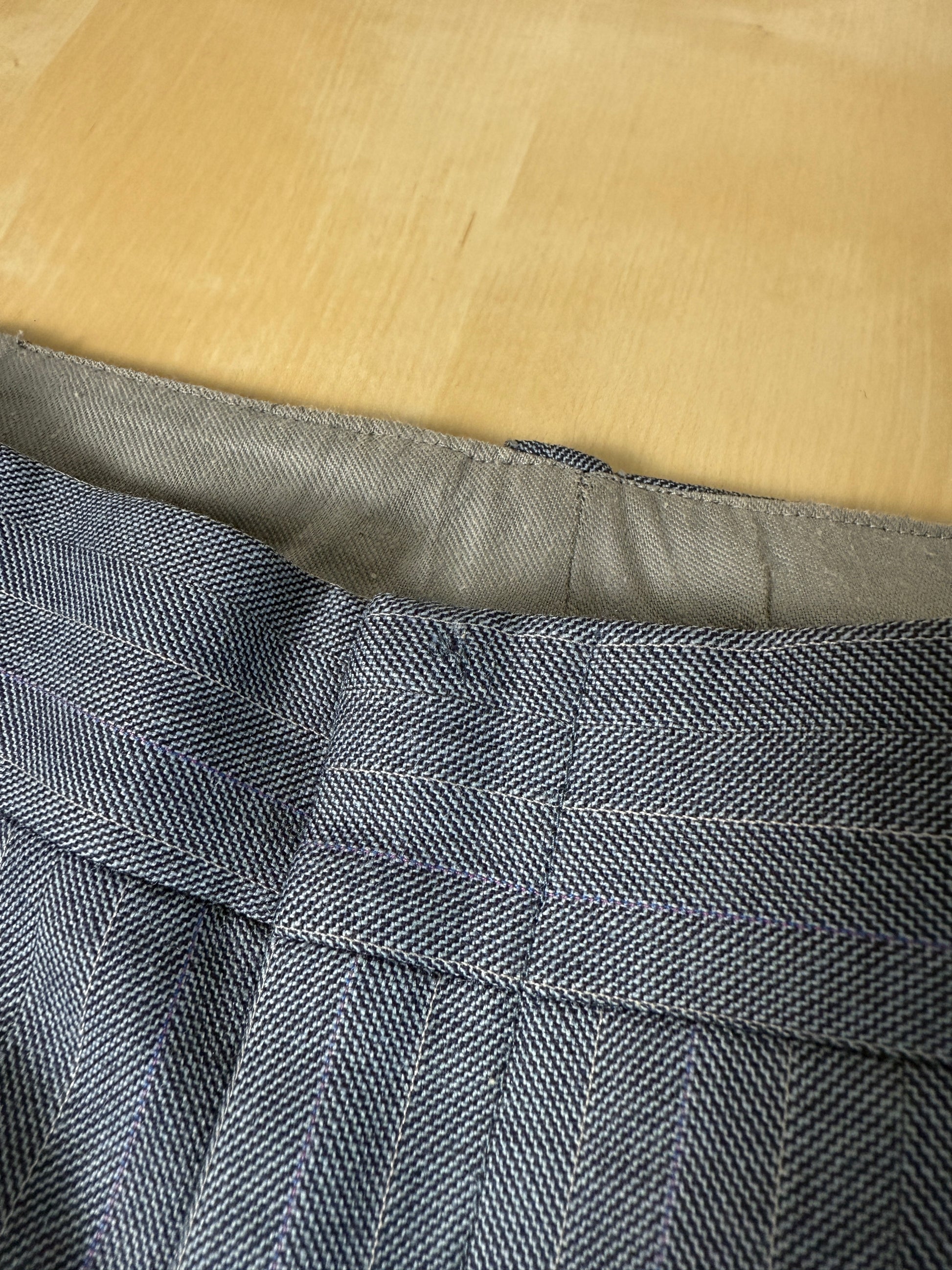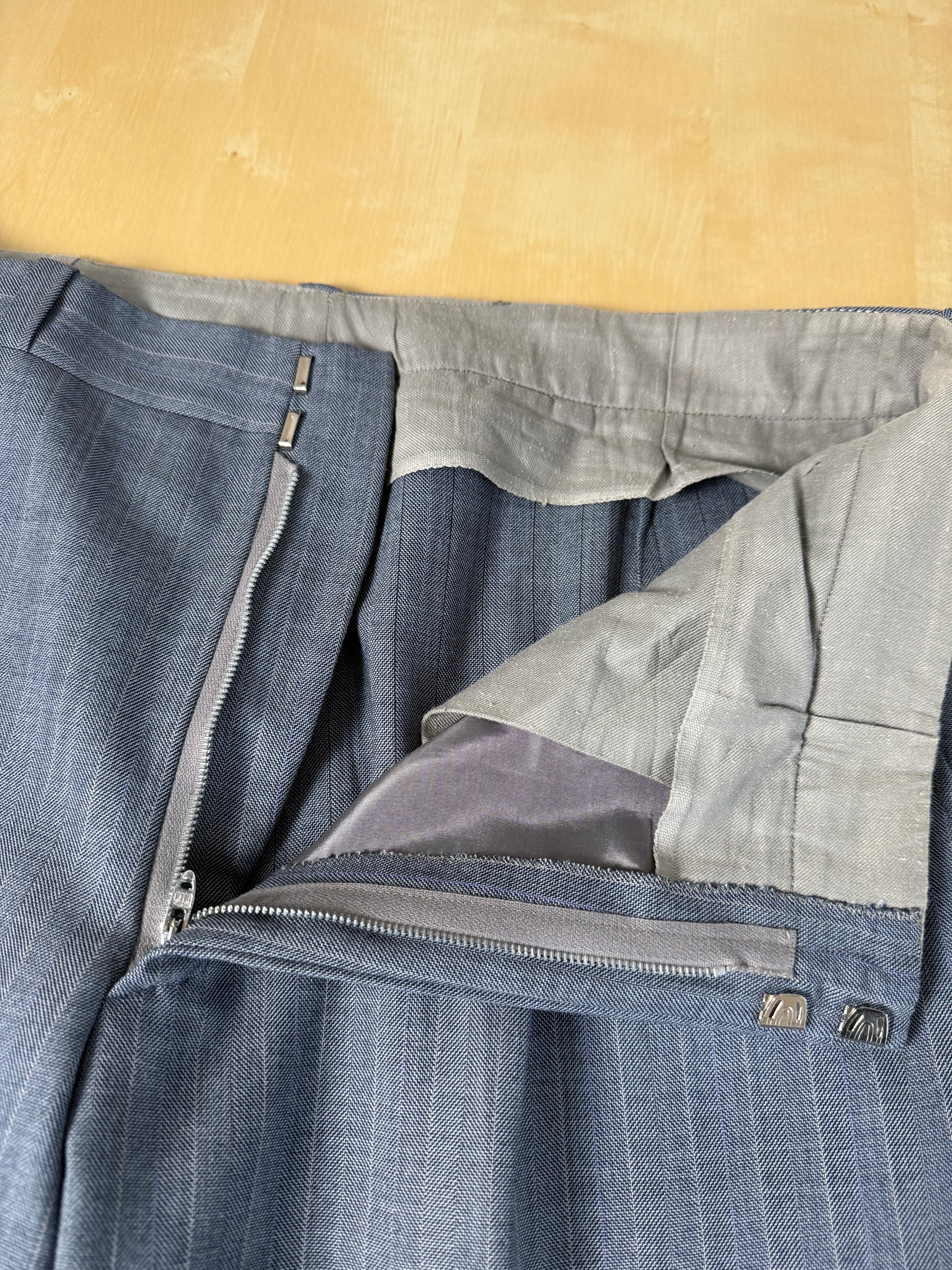 Da segnalare che il pantalone ha subito nel tempo una piccola modifica in allargamento: la vestibilità corrisponderebbe perciò, stando alle misure attuali, a una 50/52 con drop basso, circa 4.