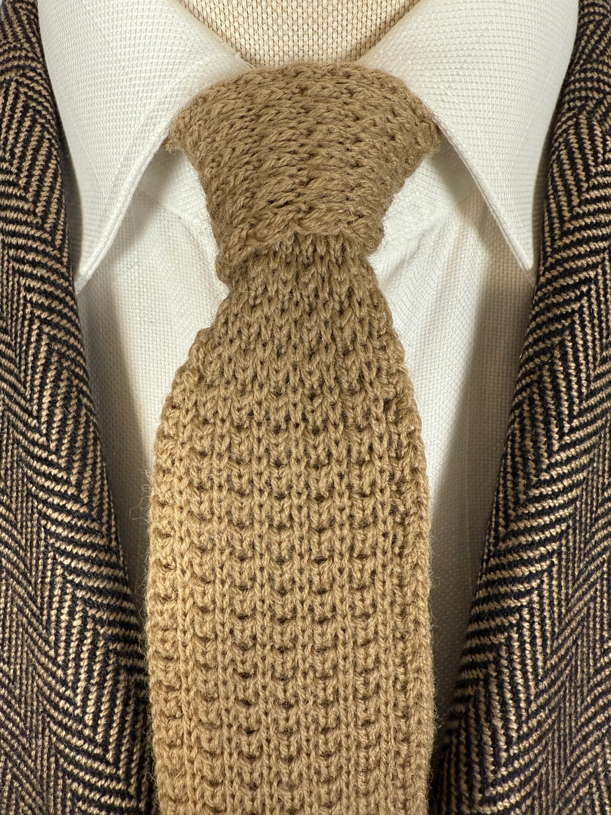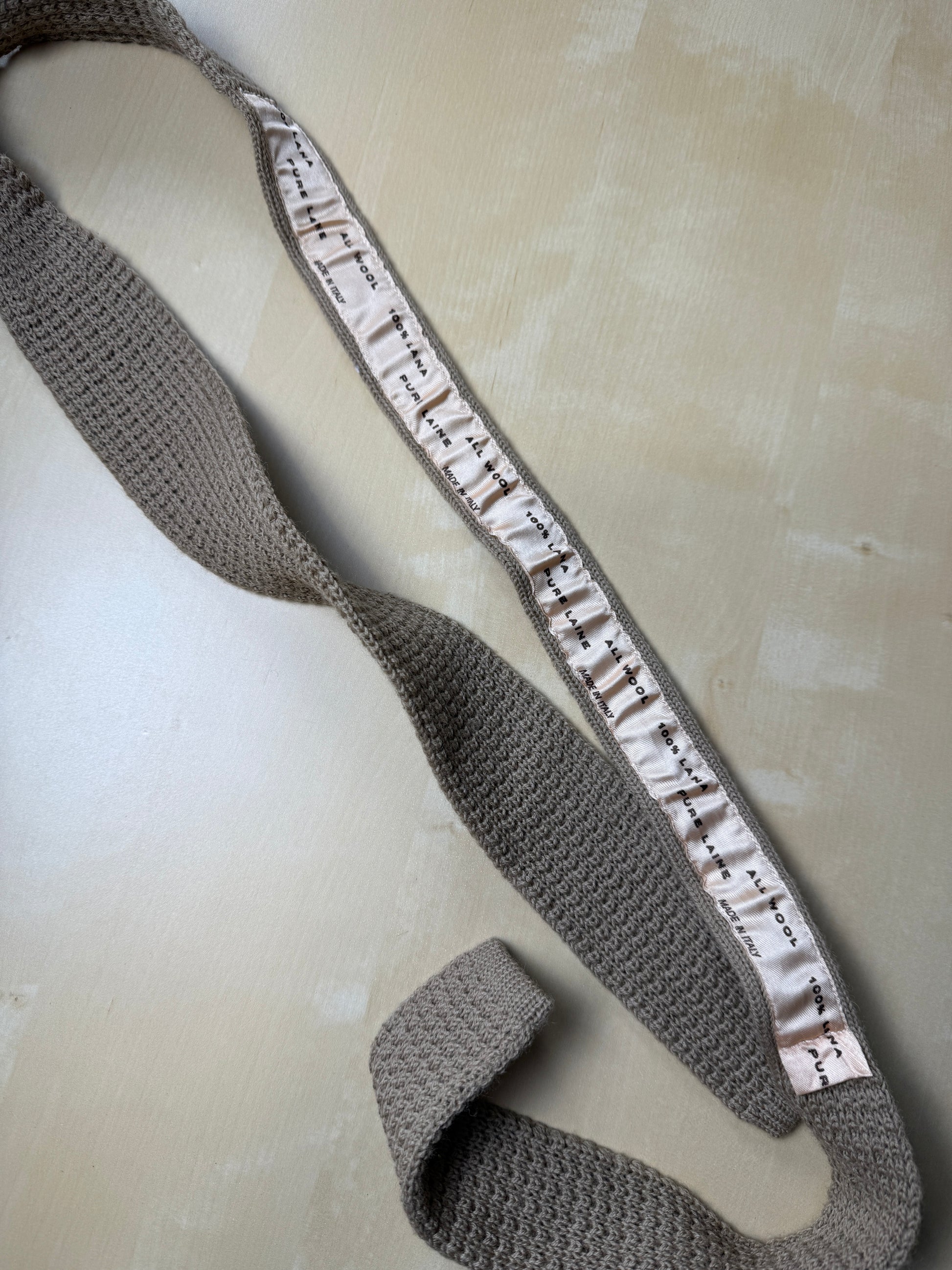 Cravatta anni ‘70 in maglia 100% lana, colore beige/nocciola.