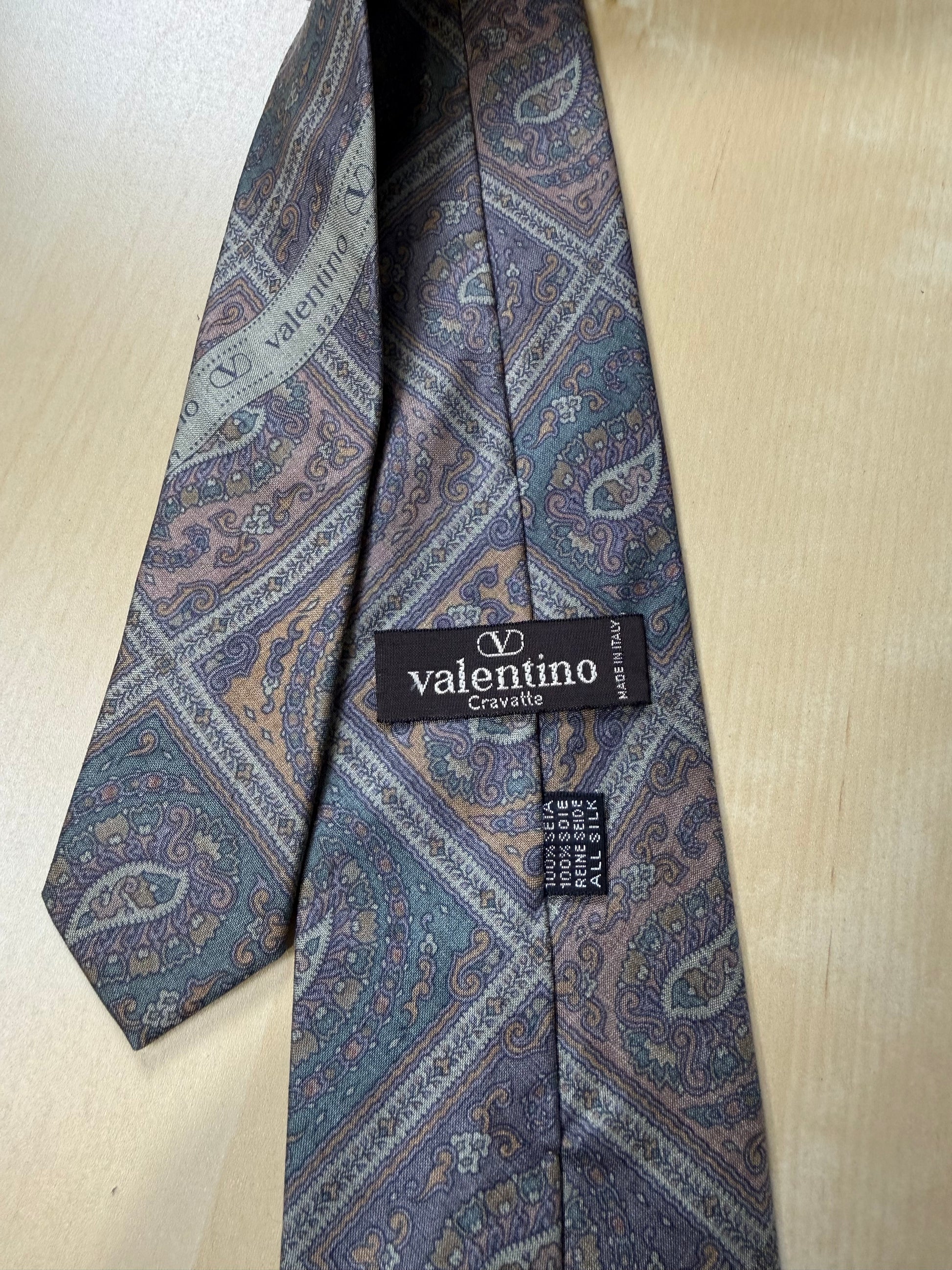 Stupenda cravatta vintage Valentino in 100% seta dalla mano asciutta e grezza, tipo shantung.
