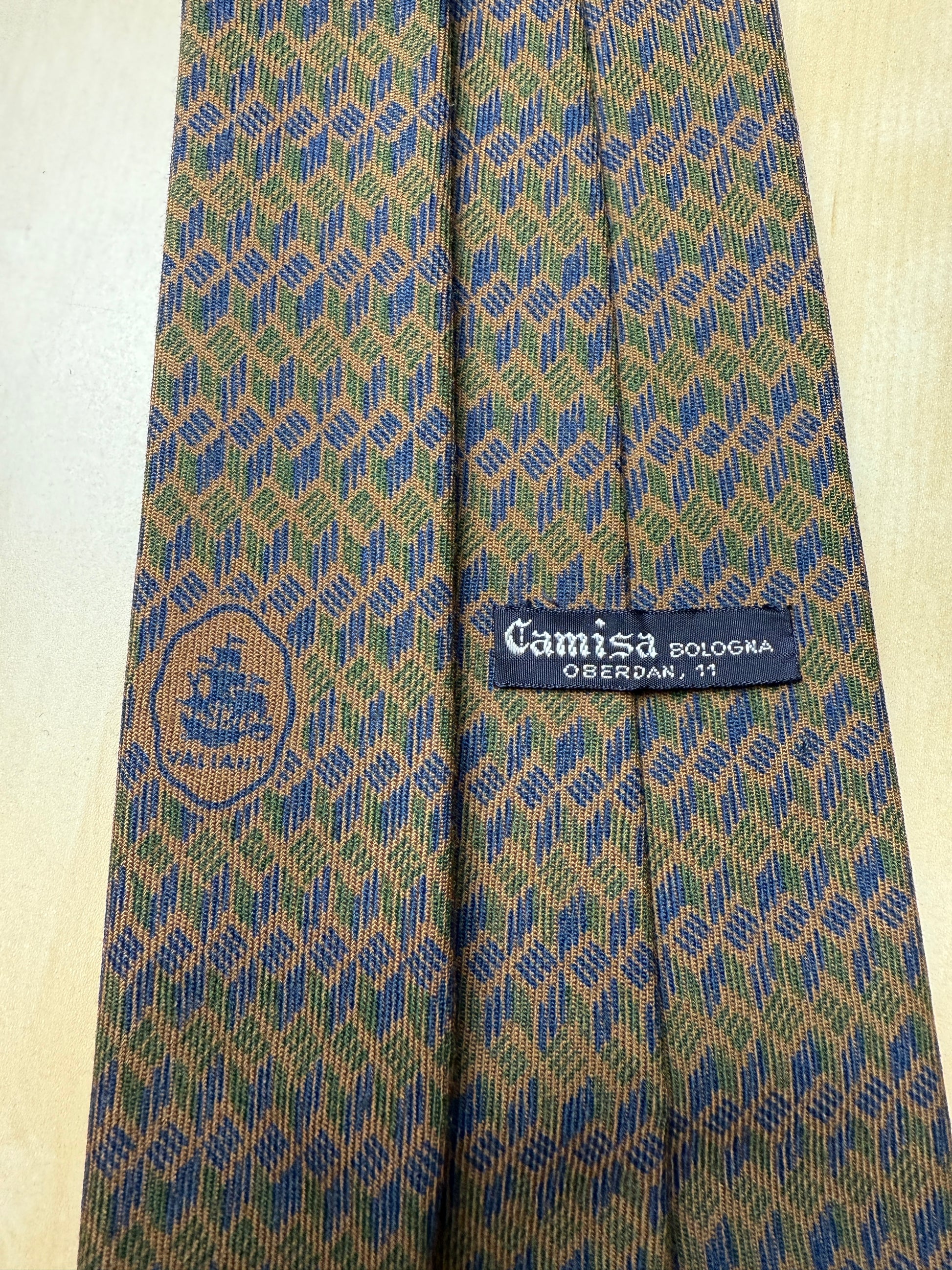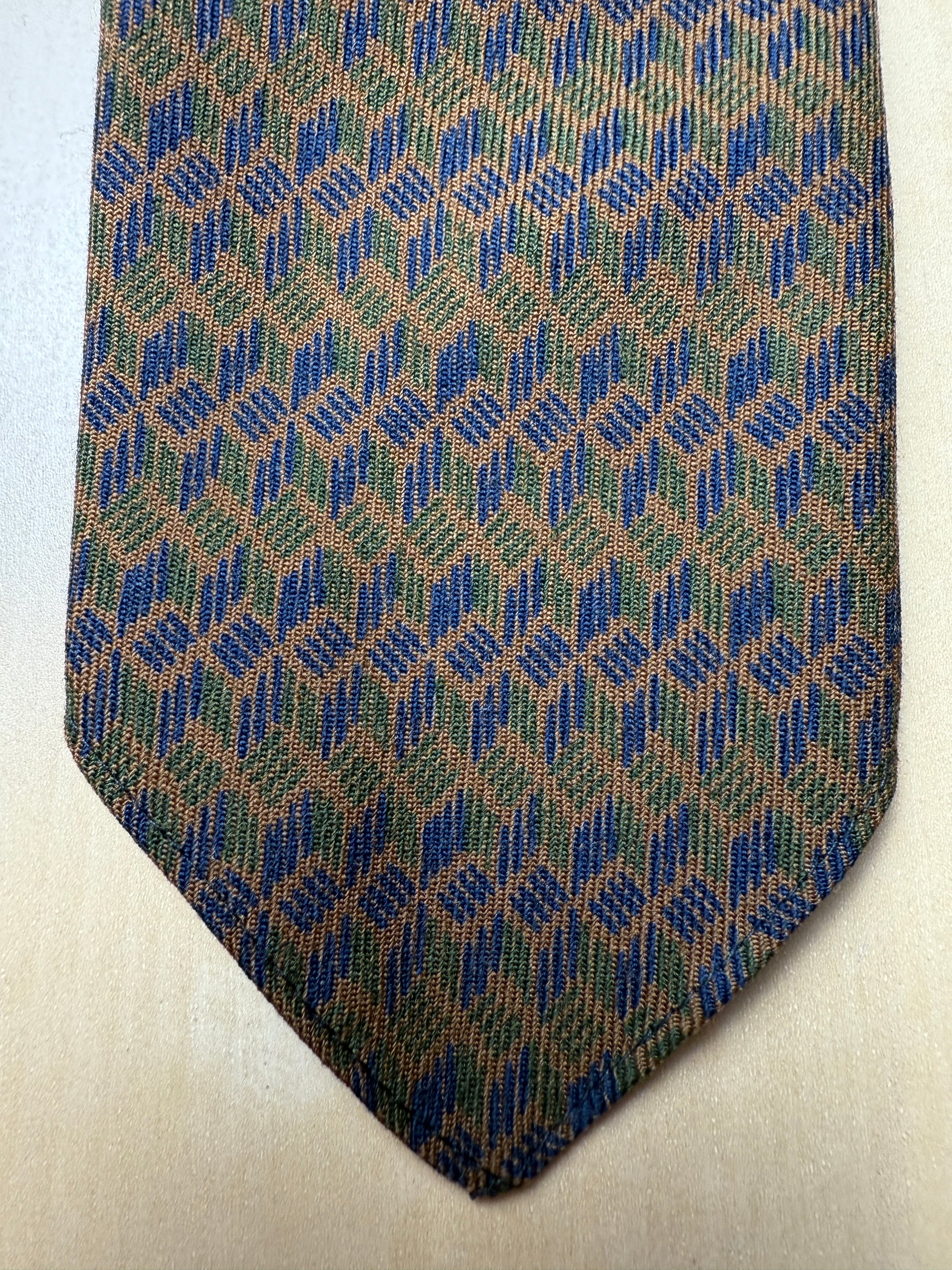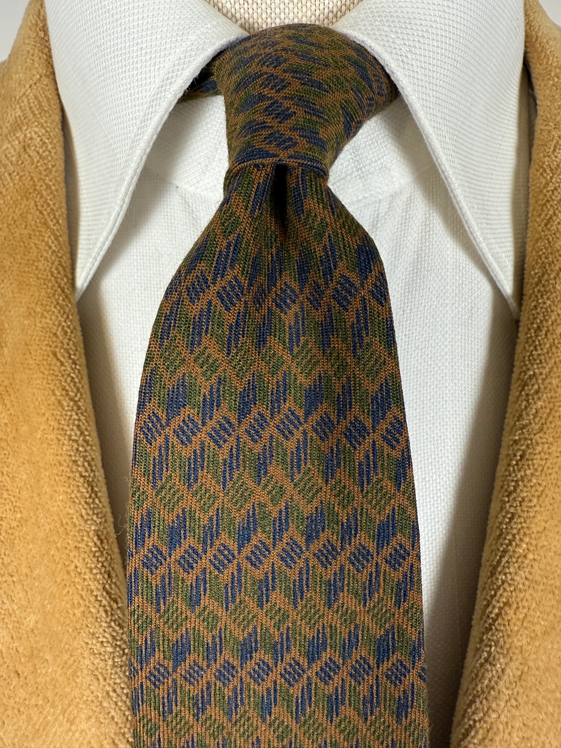 Cravatta anni ‘60/‘70 in pura lana, con costruzione sfoderata e a pala stretta.