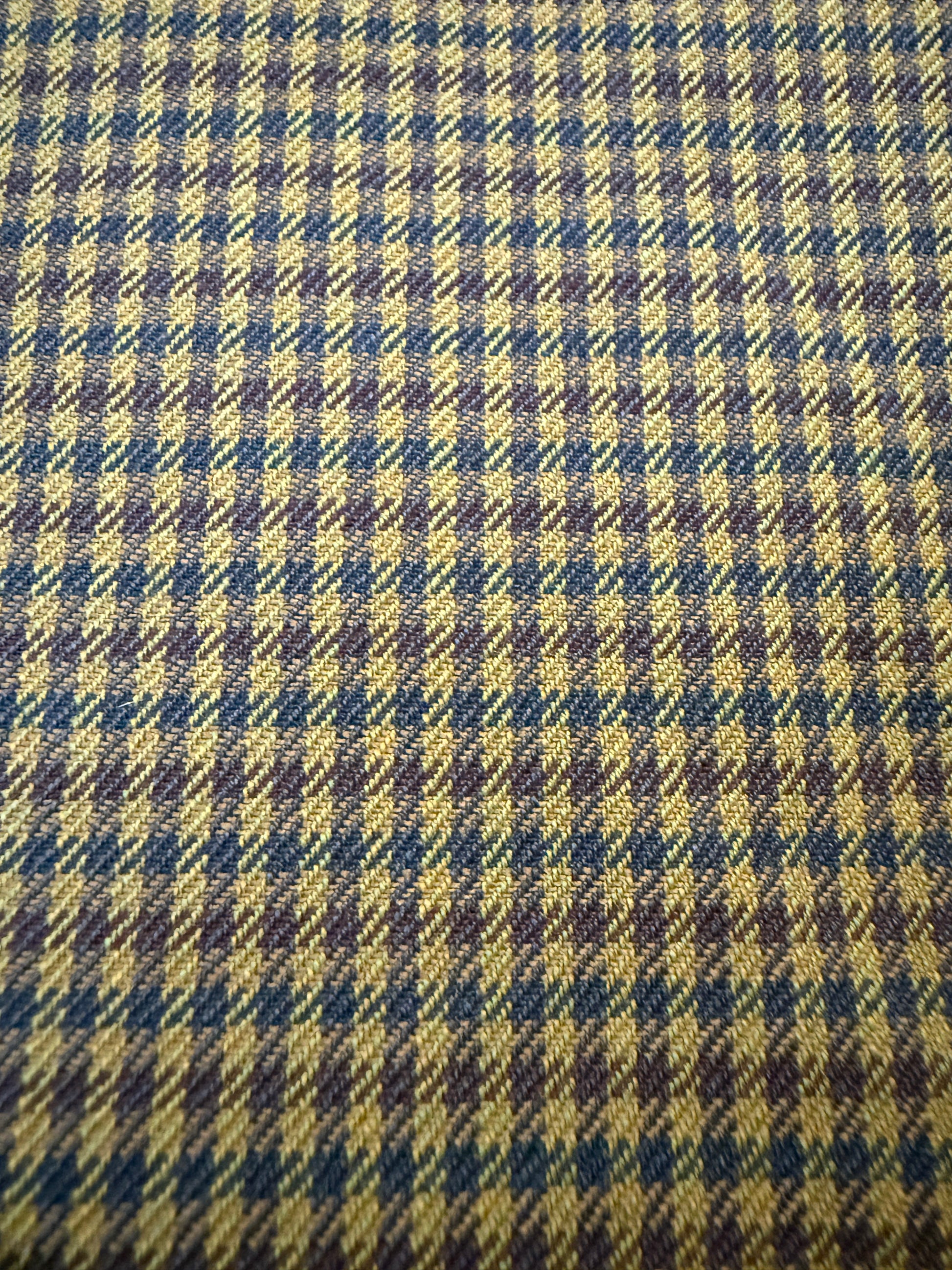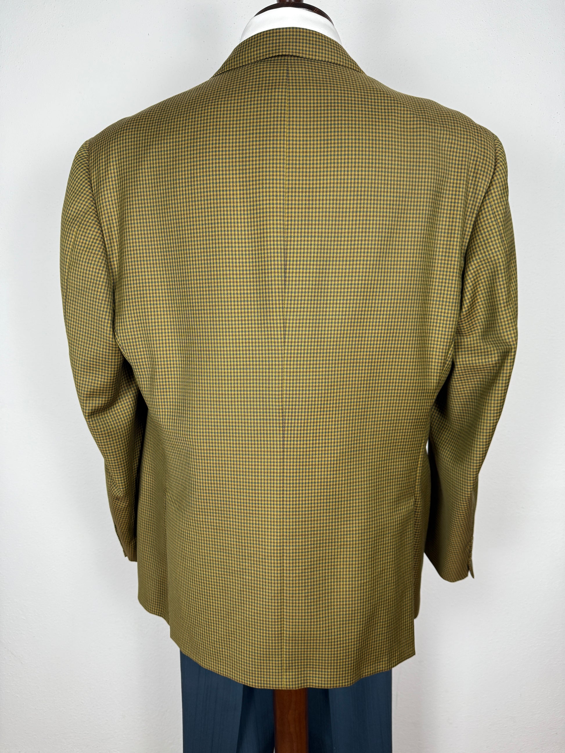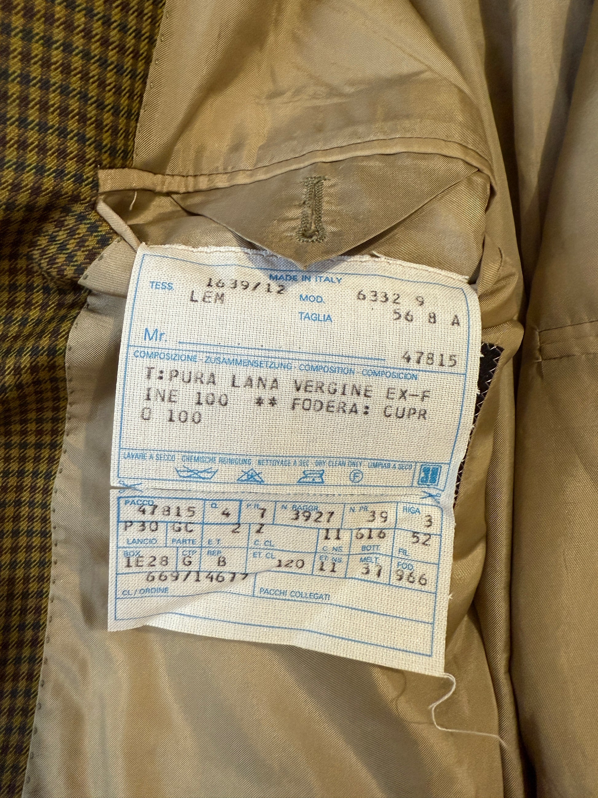 Giacca di ottima confezione anni ‘80, in flanella leggera 100% lana con bella fantasia pied-de-poule sui toni del verde, marrone, senape.