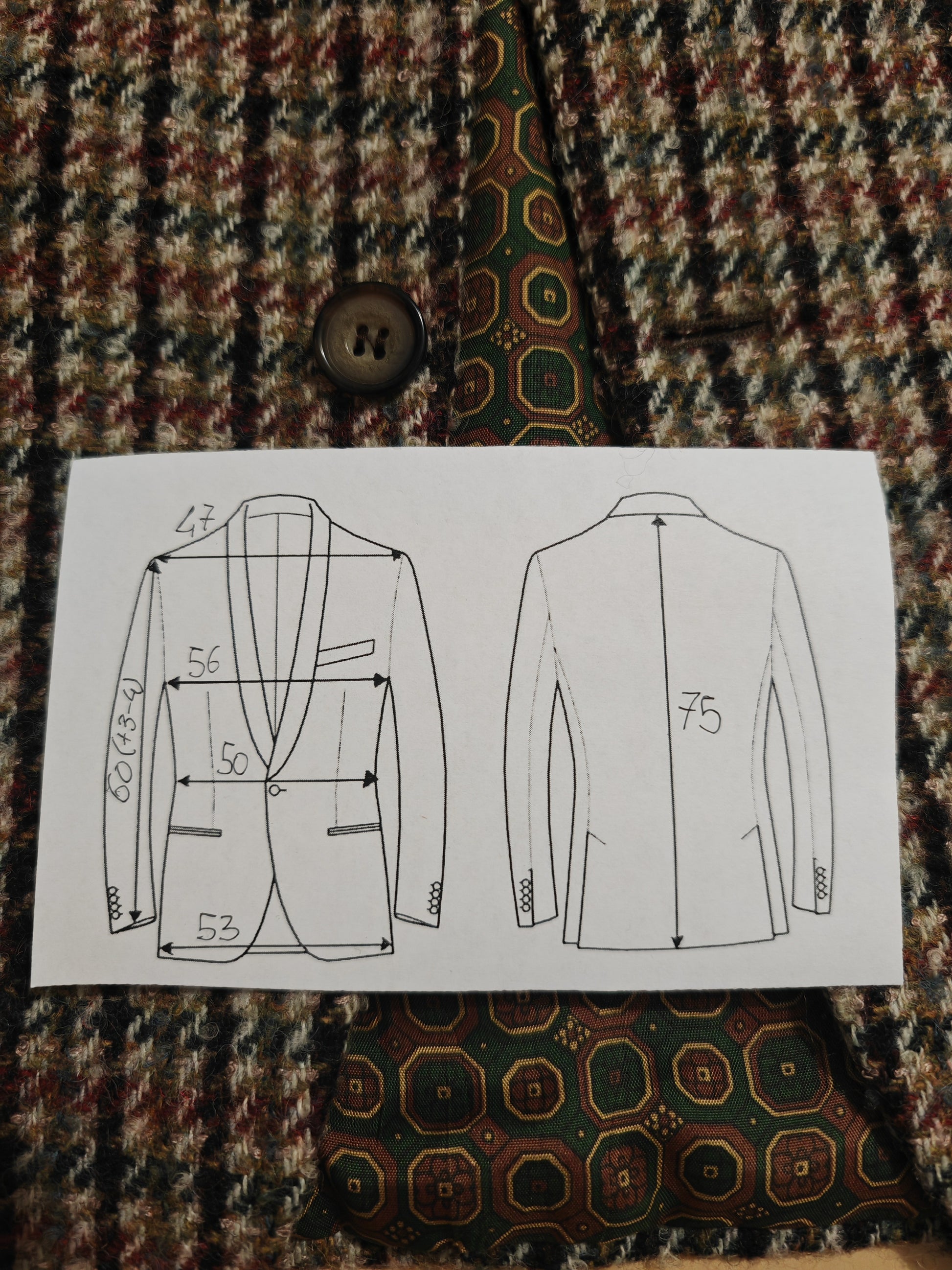 Taglio a 2 bottoni, tasche a pattina e doppio spacco con spacchi poco profondi, appena accennati.