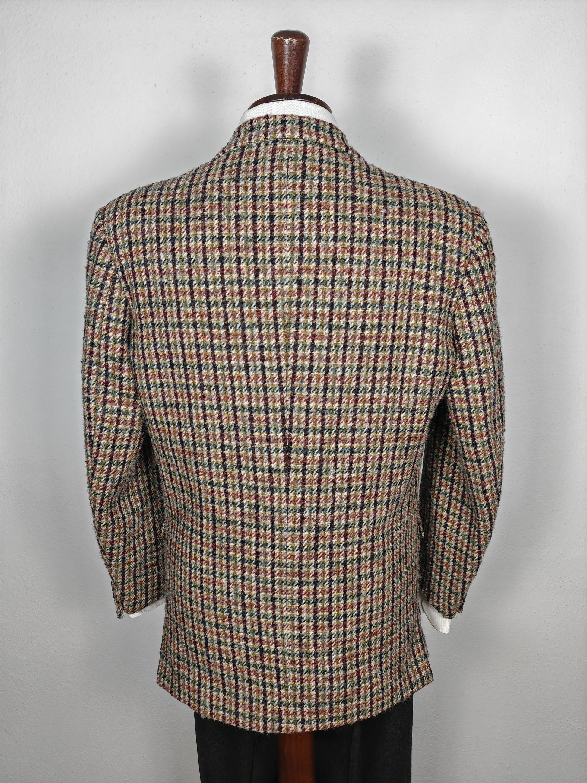 Giacca di confezione Lebole anni '80, in tweed con fantasia pied-de-poule nei colori verde, grigio, rosso ruggine.