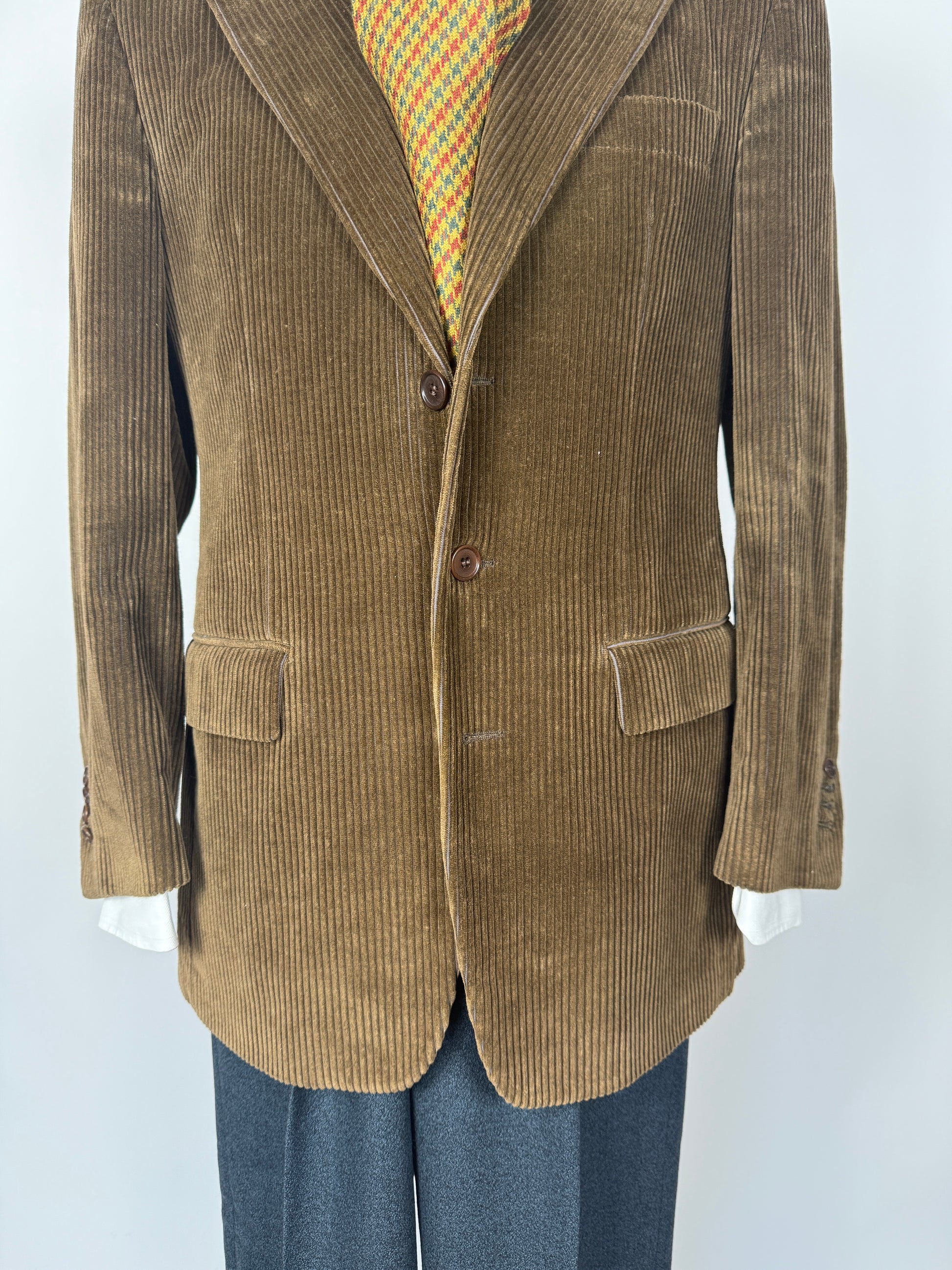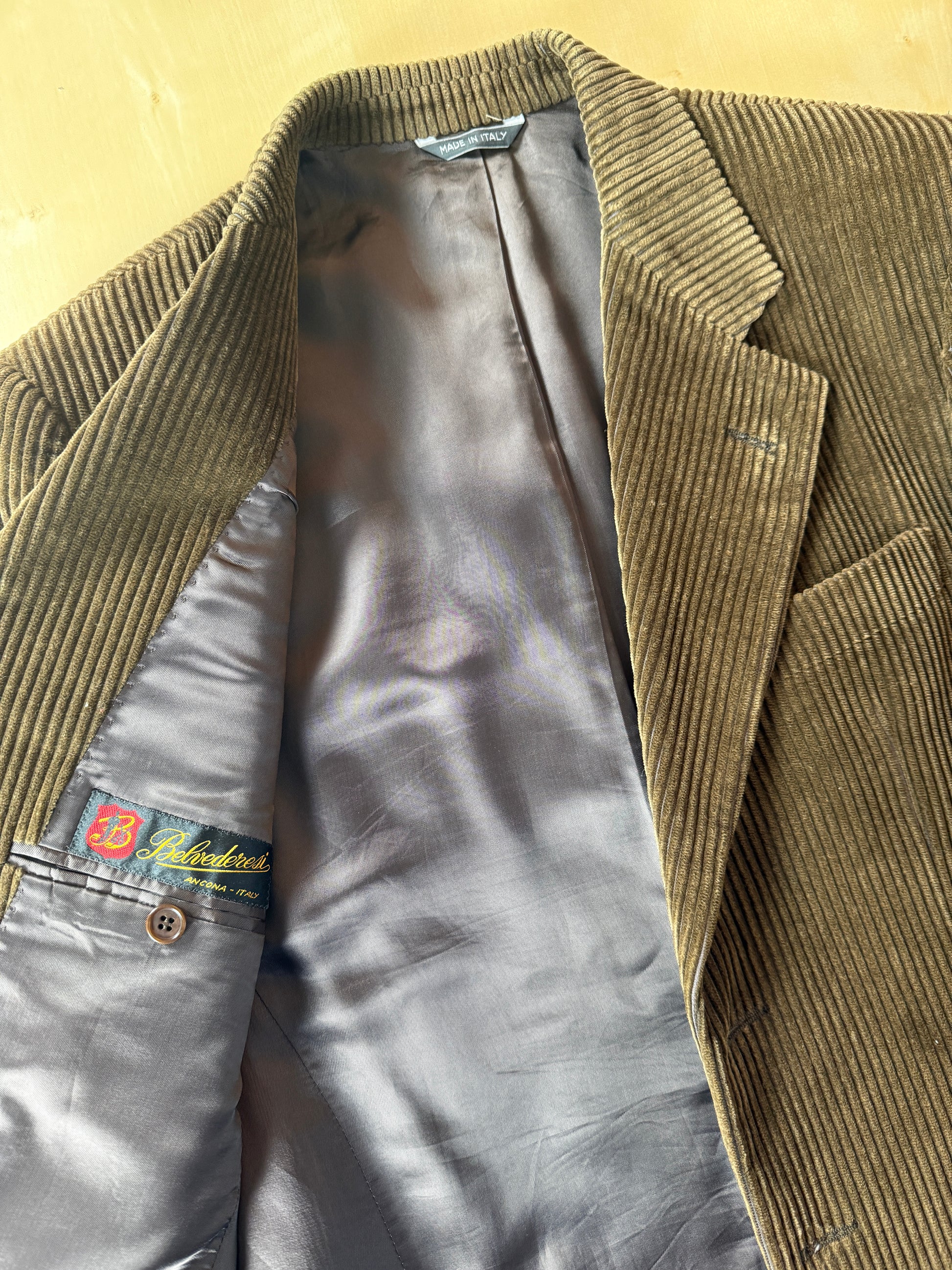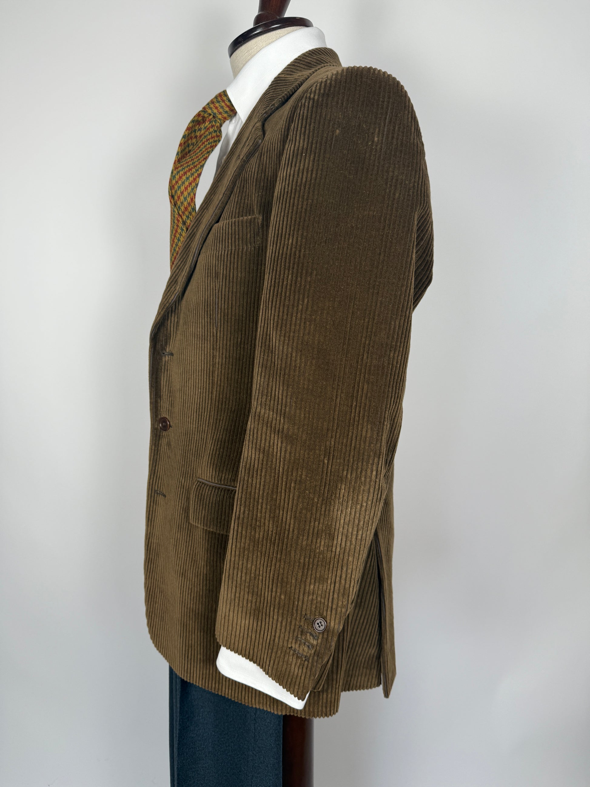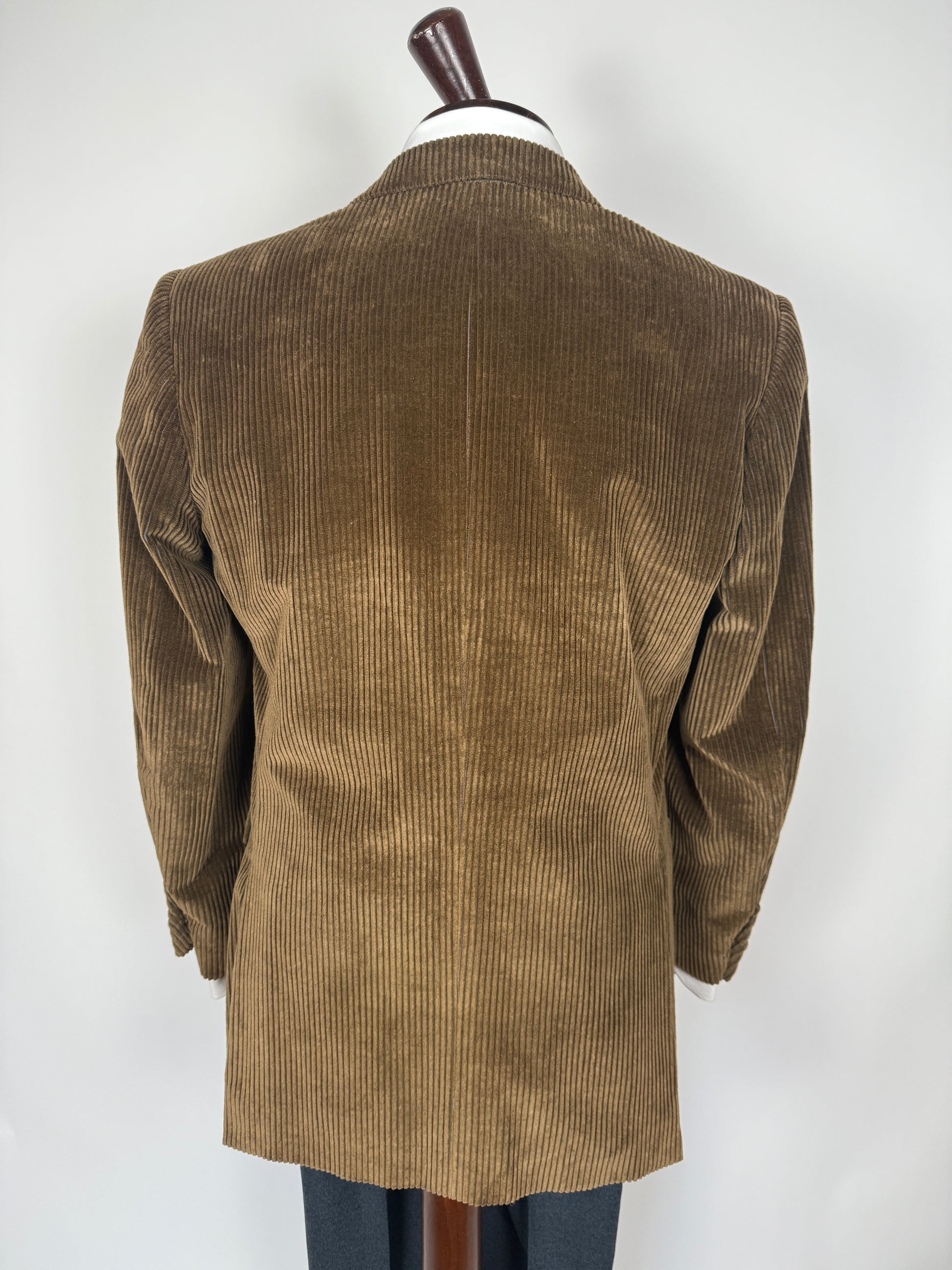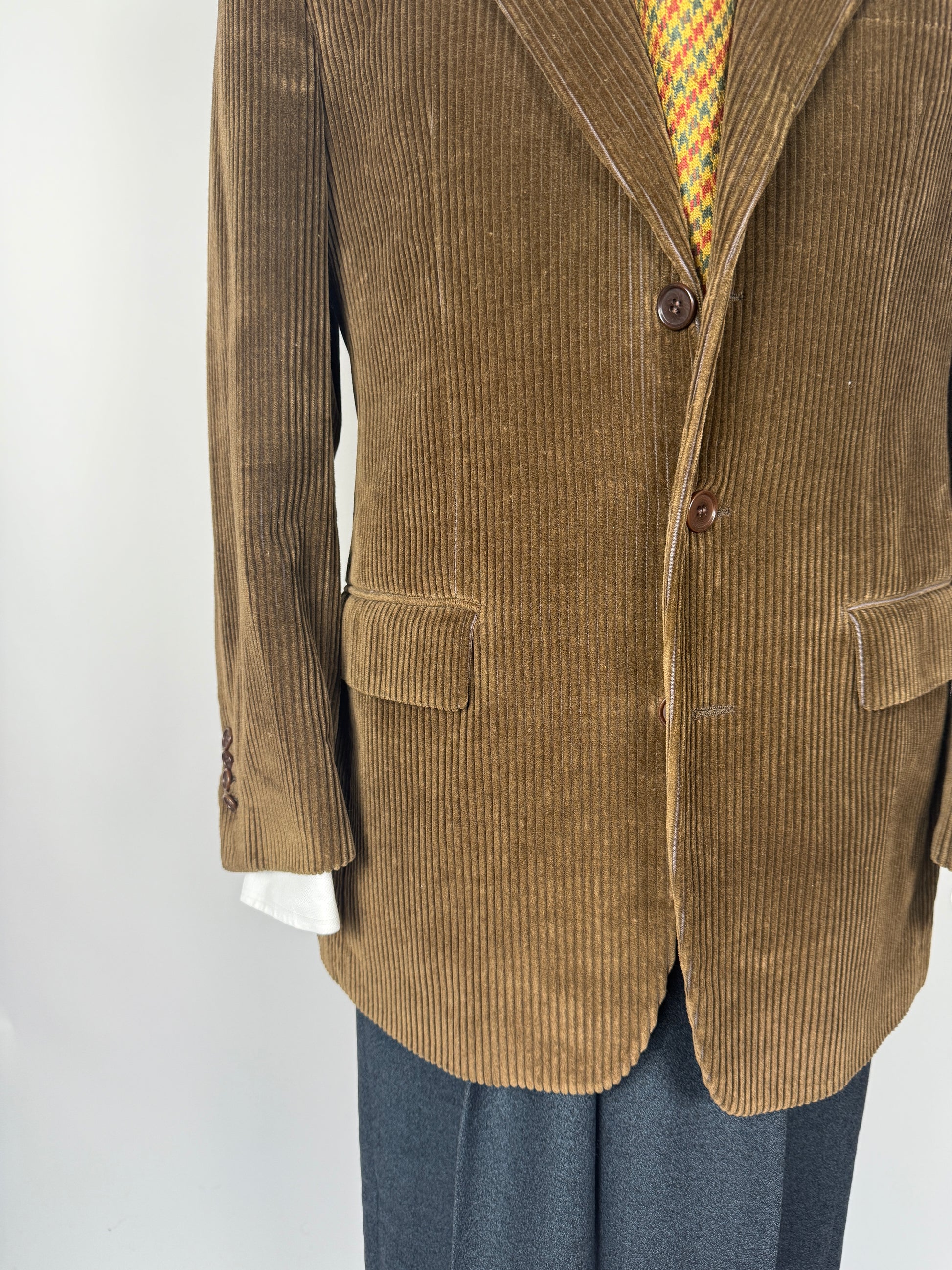 Giacca anni '80 in velluto a coste ampie, 100% cotone, colore a metà fra il marrone e il verde scuro/cachi.