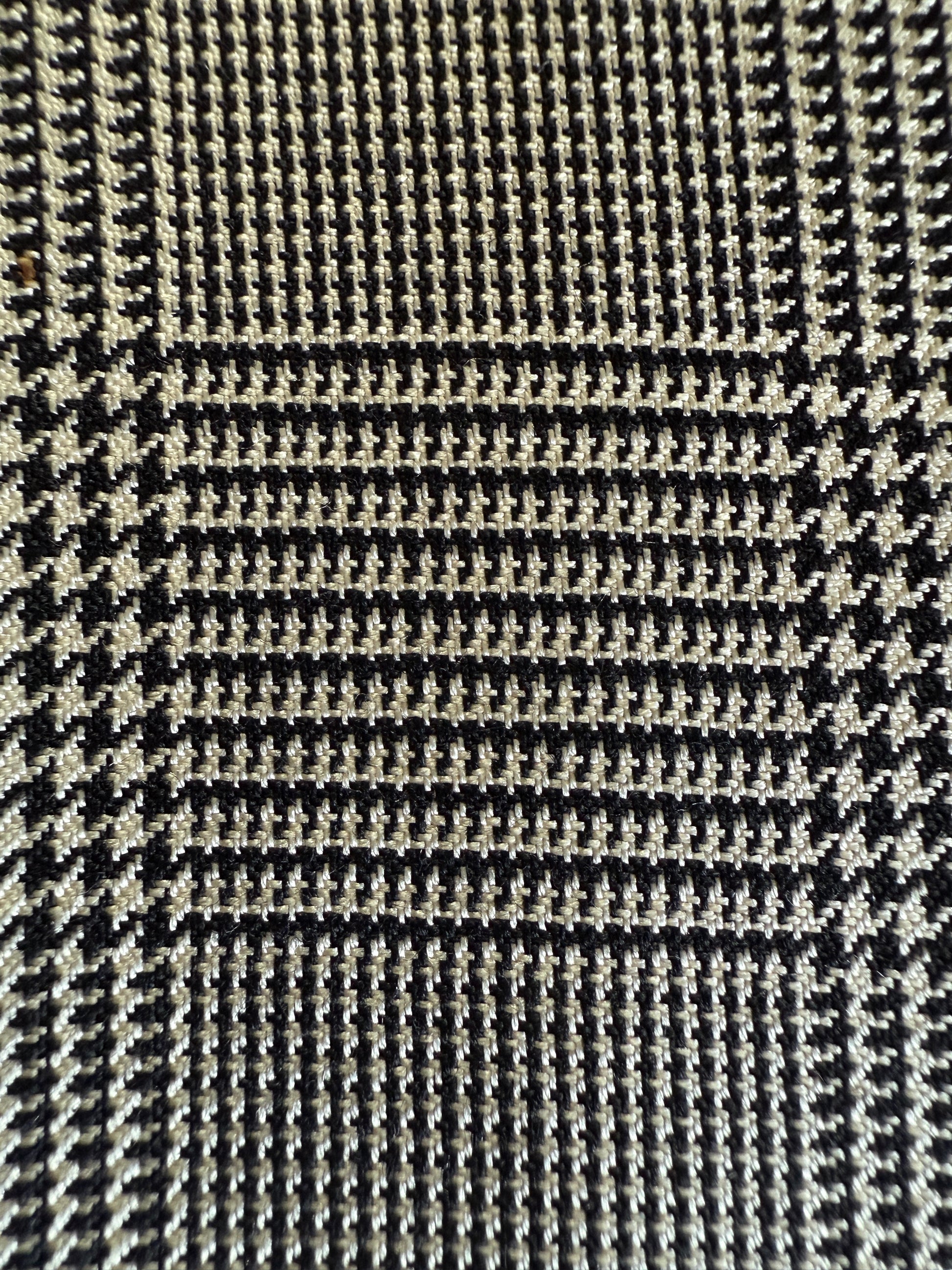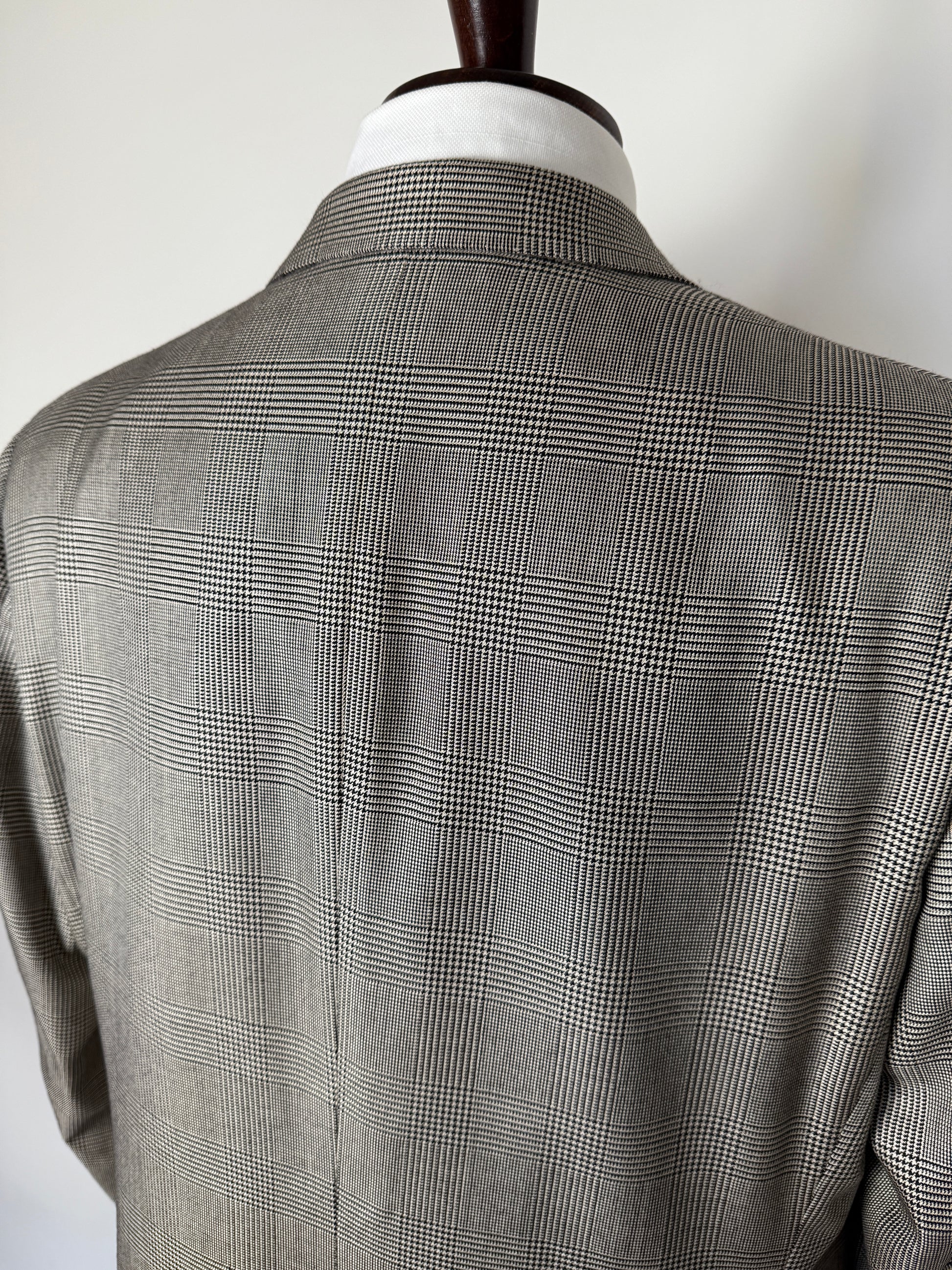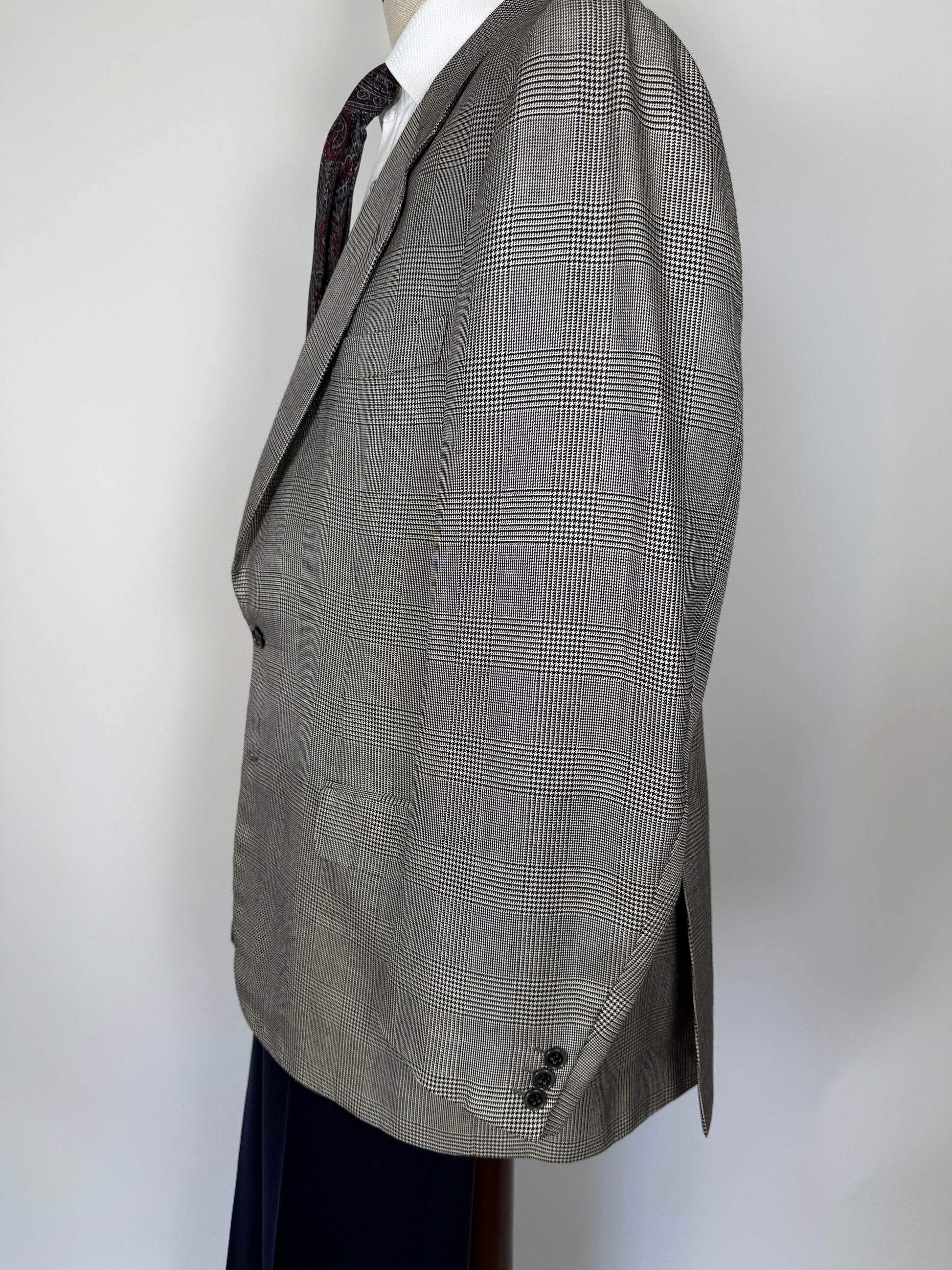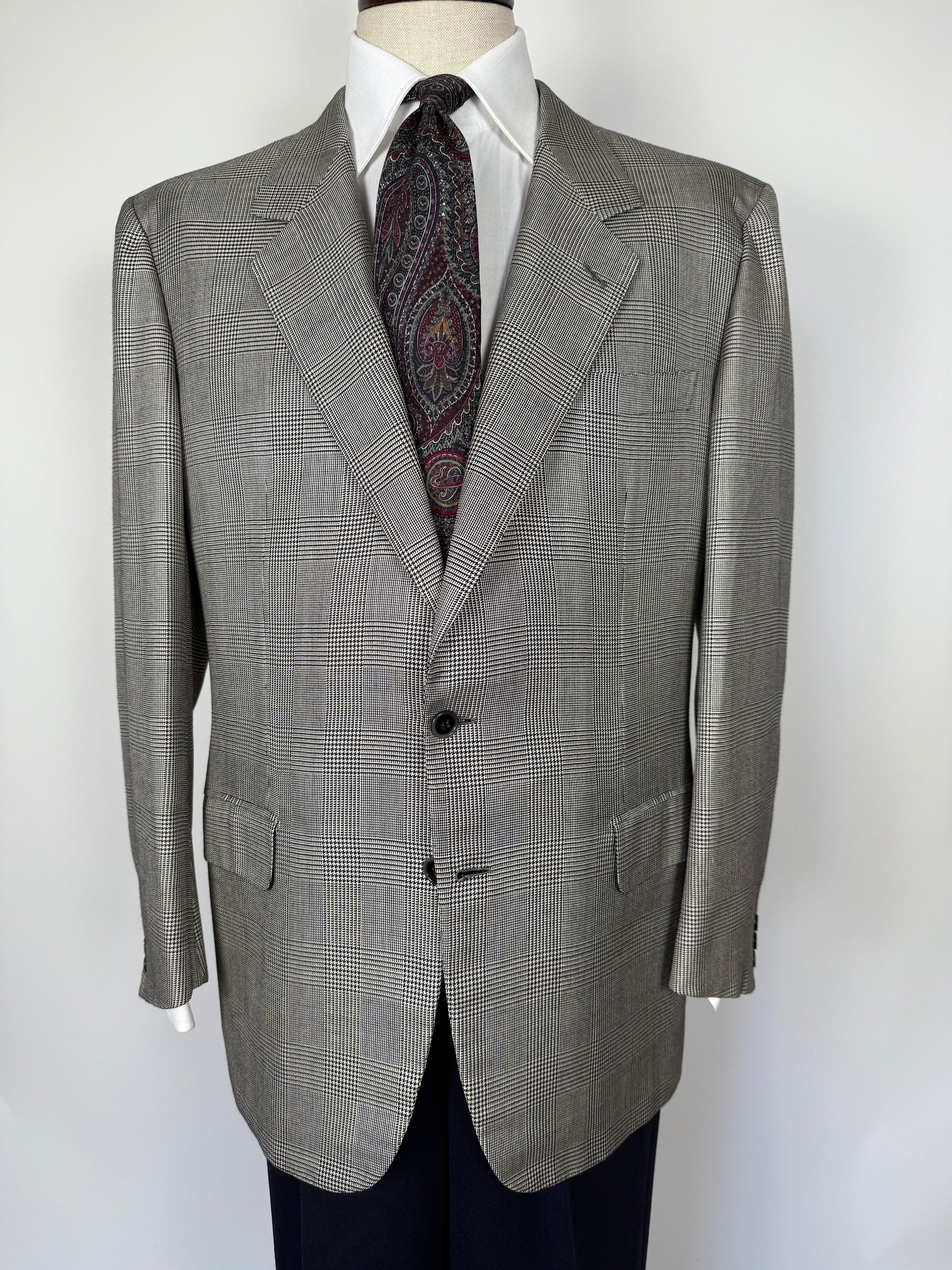 Splendida giacca Brioni anni ‘80 in tessuto principe di Galles pettinato, composizione 52% seta e 48% lana.