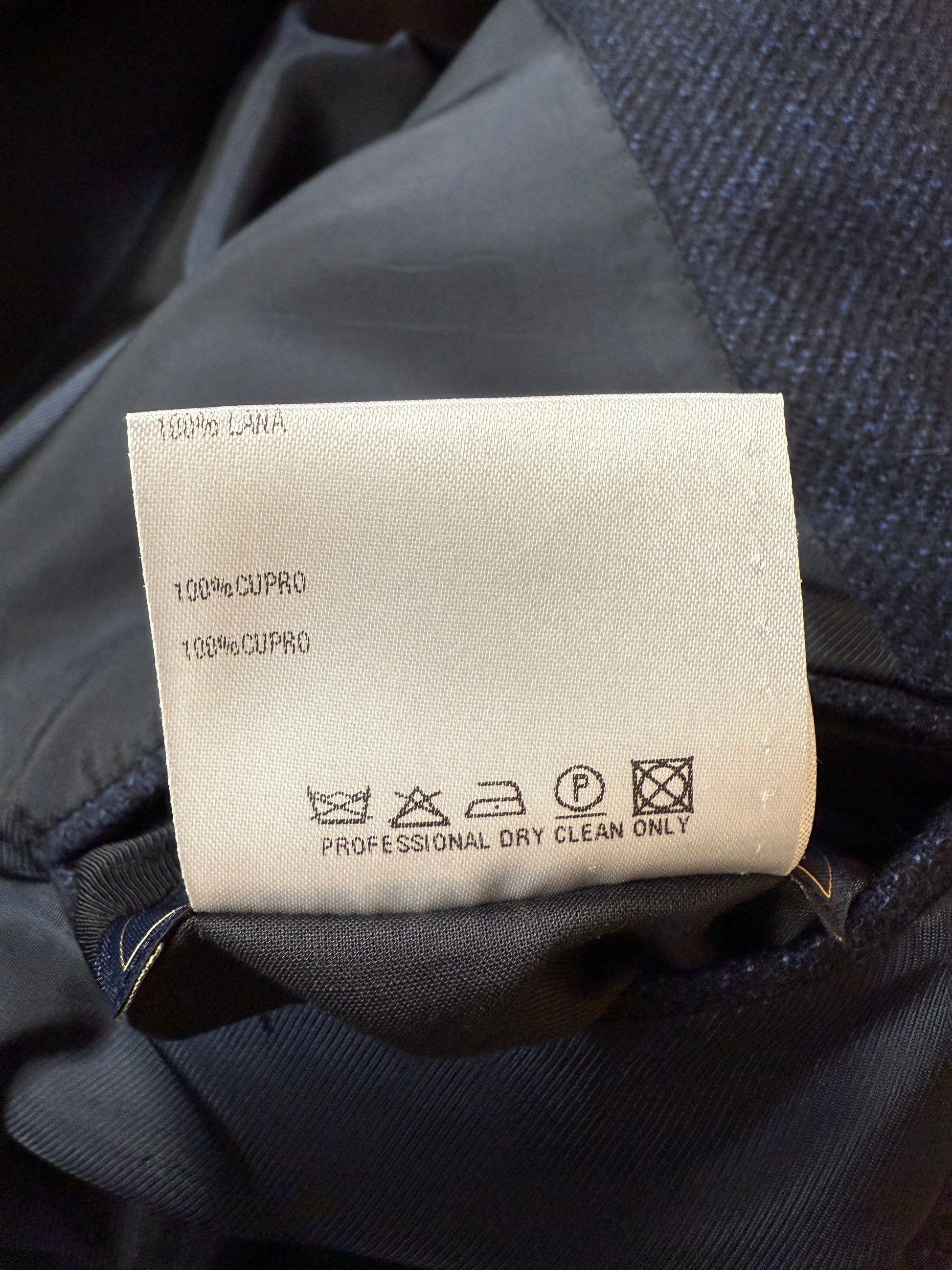 Moderna giacca Caruso in un bel panno invernale di Vitale Barberis Canonico, colore blu scuro. Tessuto pesante, dalla mano soffice e molto caldo.