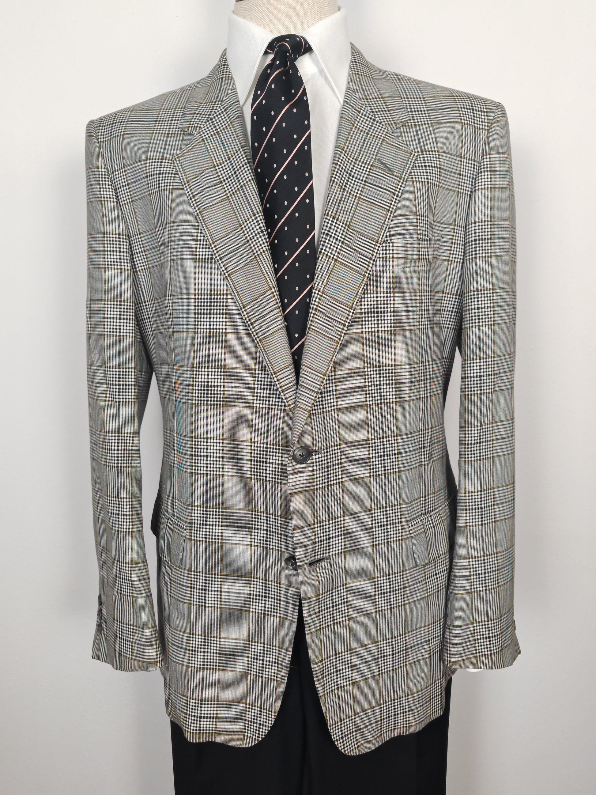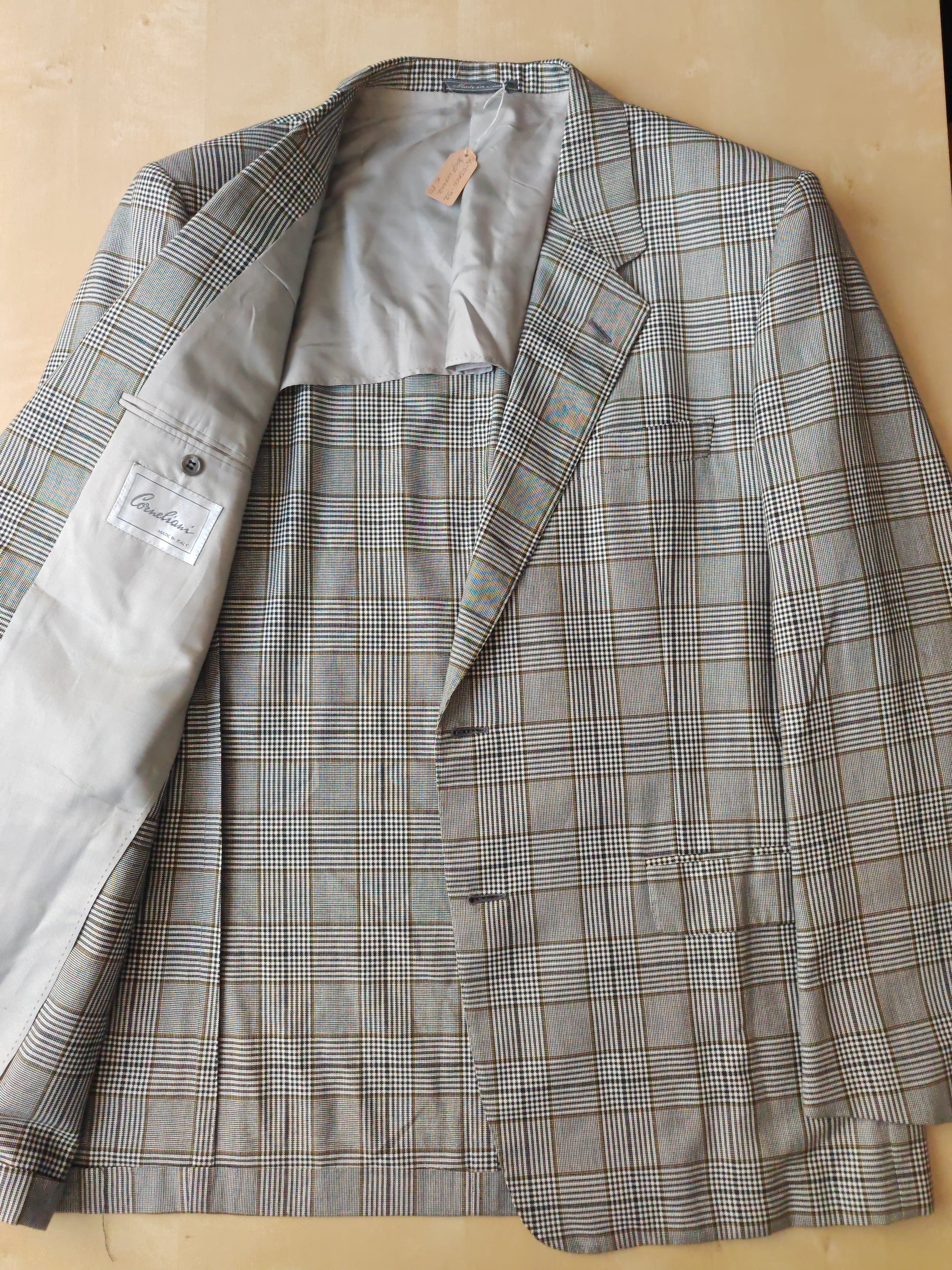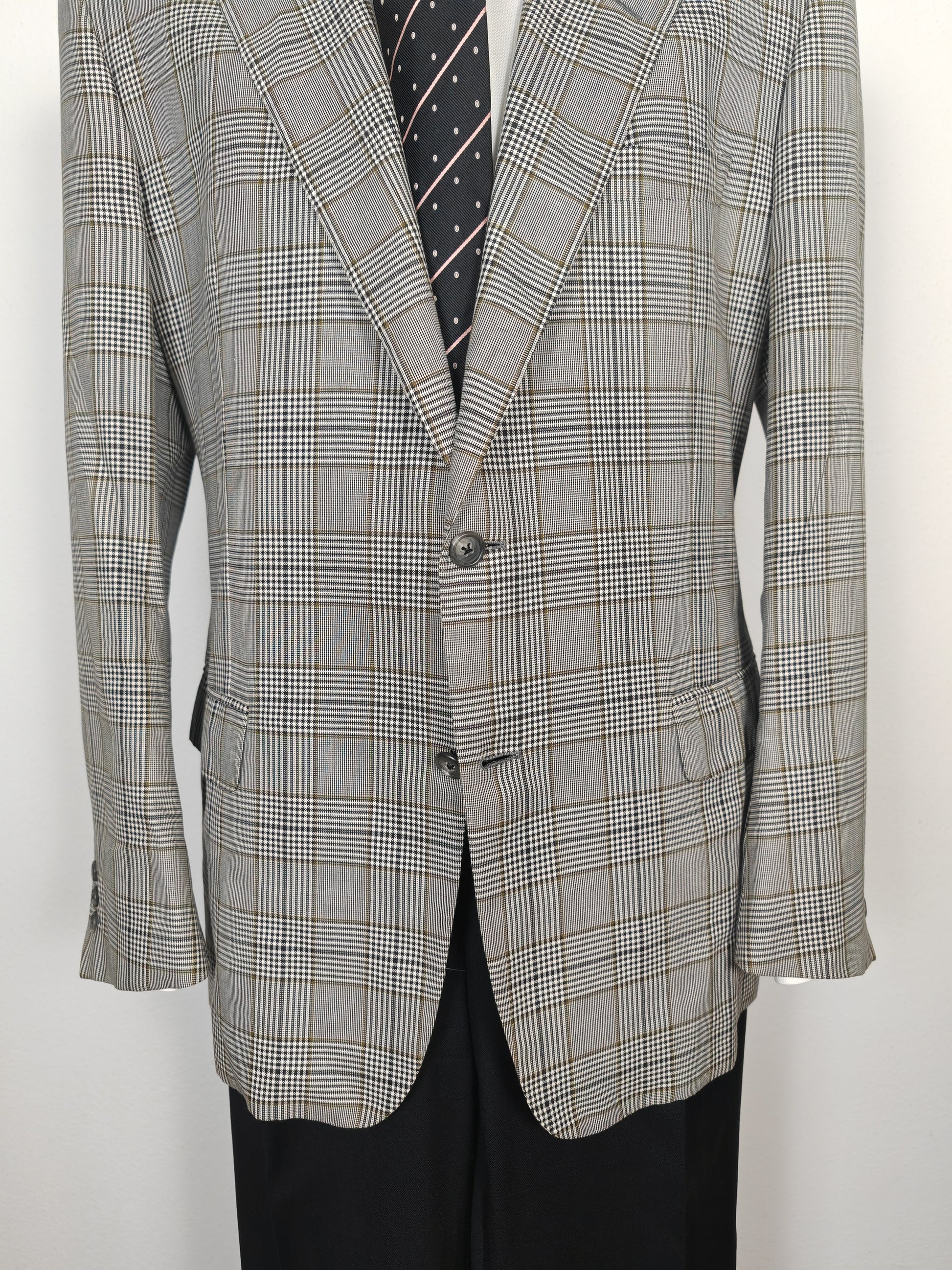 Giacca estiva Corneliani in 100% cotone molto leggero. Fantasia tipo principe di Galles in grigio e nero.