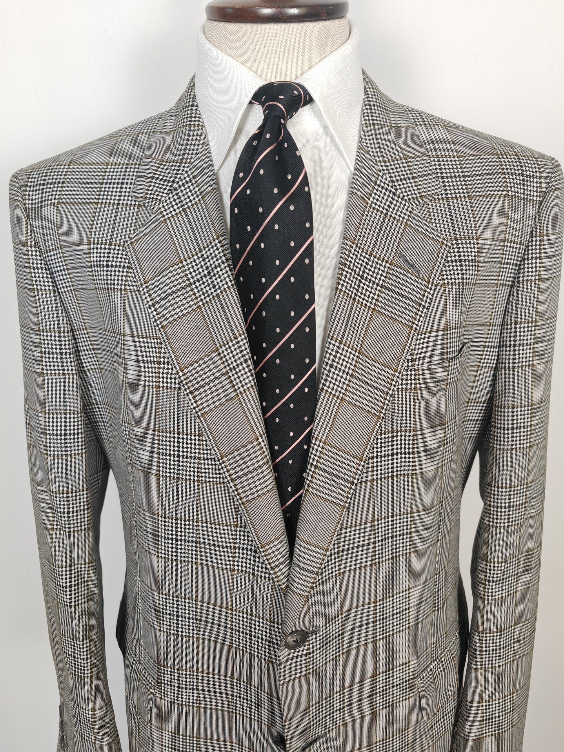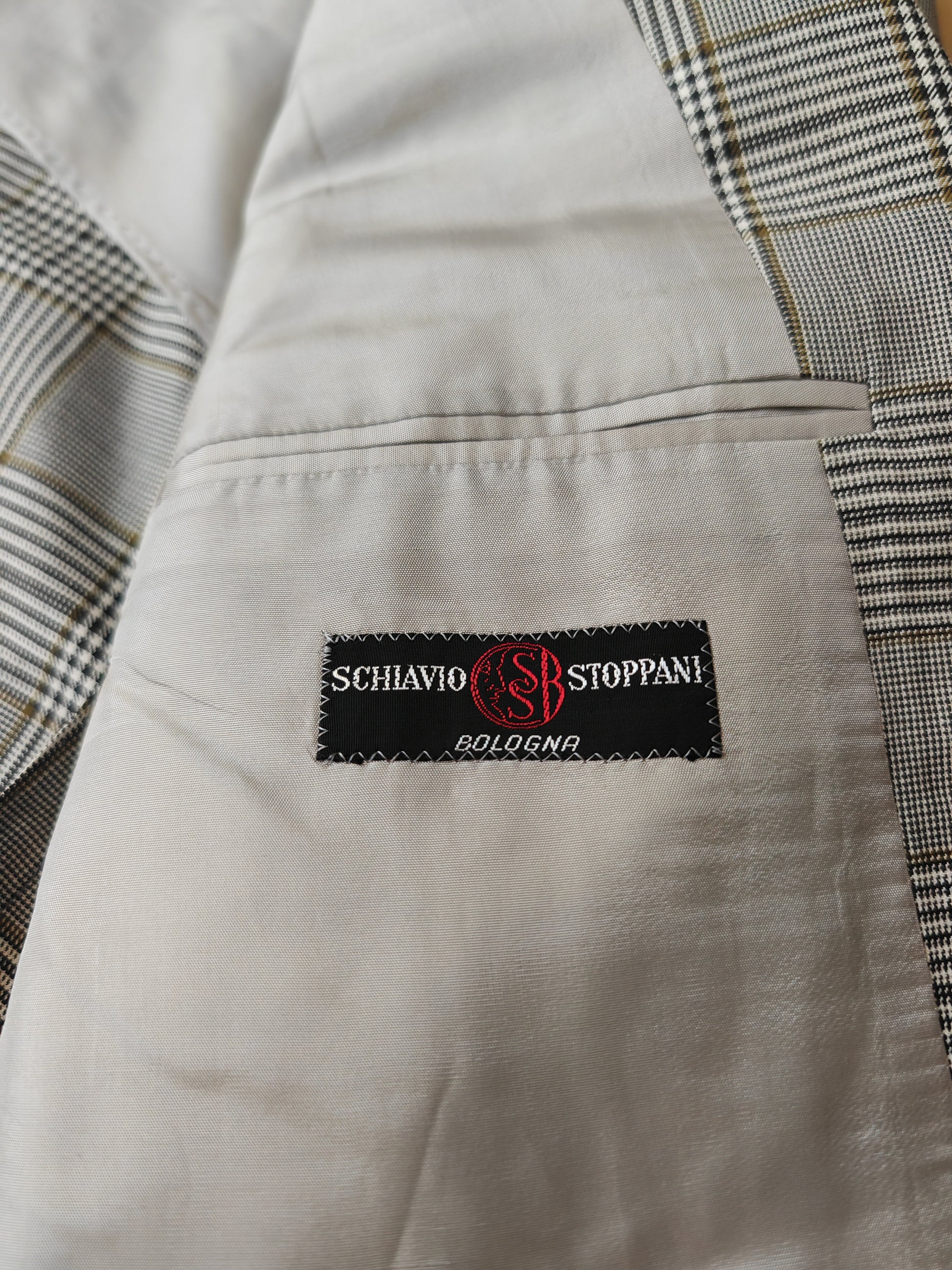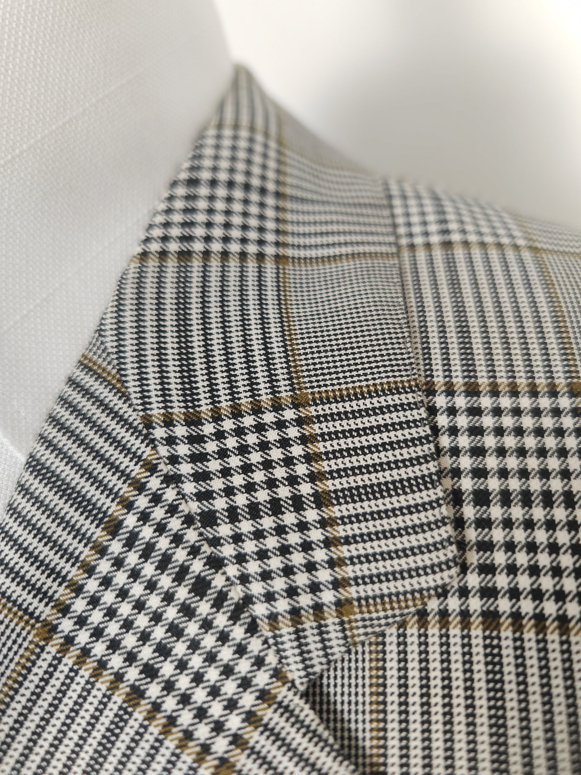 Giacca estiva Corneliani in 100% cotone molto leggero. Fantasia tipo principe di Galles in grigio e nero.