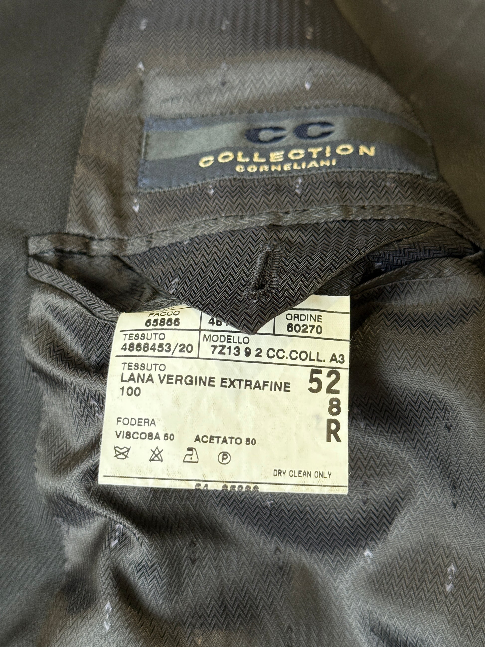Moderna giacca Corneliani linea CC Collection, in twill tipo cavalry 100% lana leggera super 110S. Colore nero.