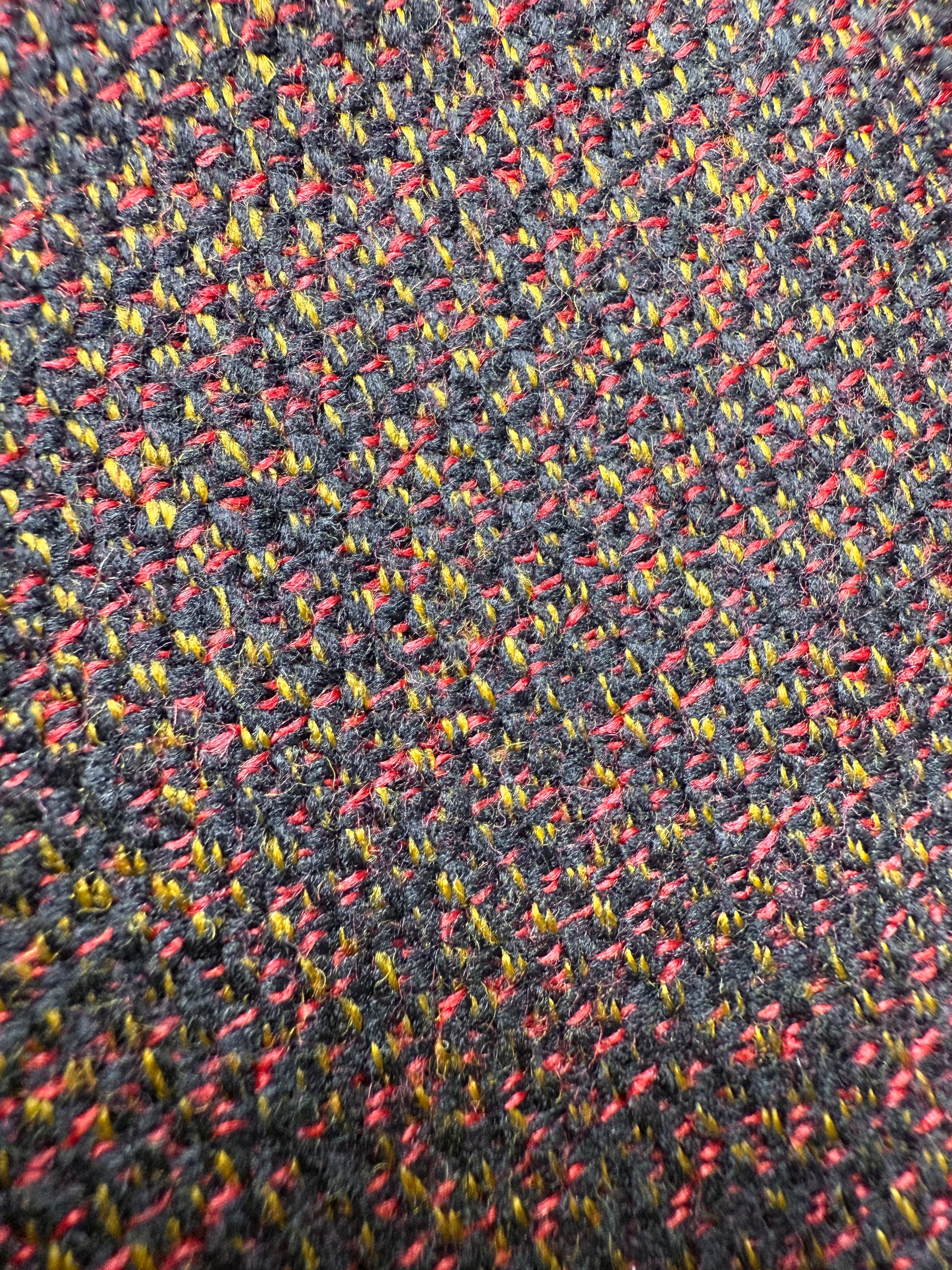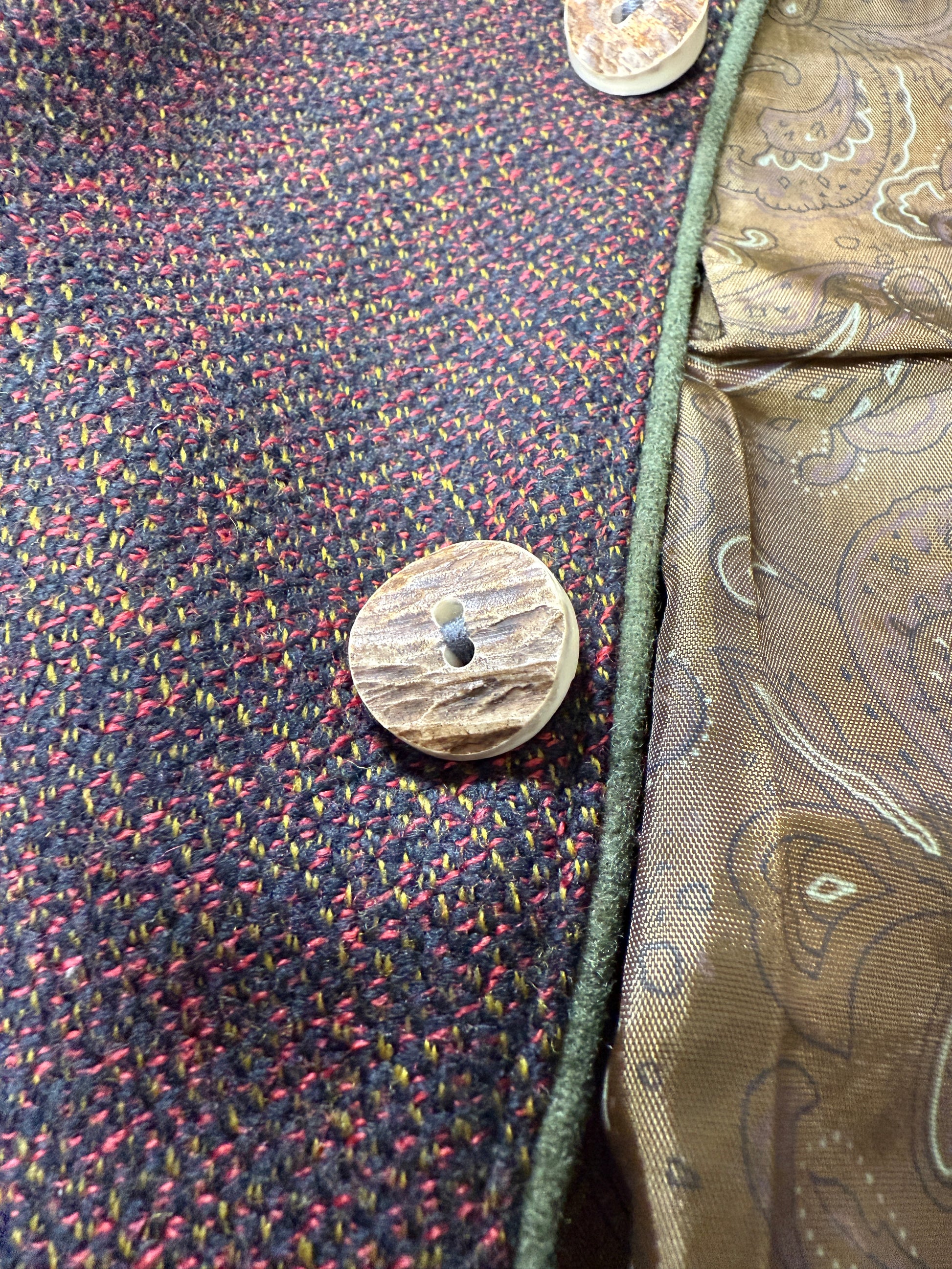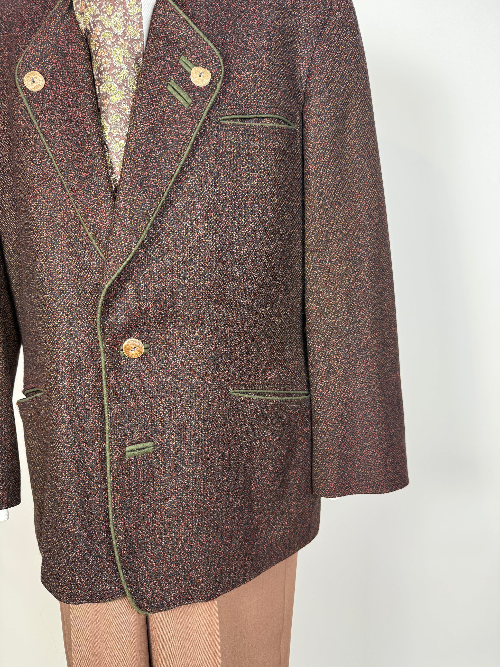 Giacca da tipico Tracht (costume tradizionale) tirolese, in un bel tessuto 90% lana e 10% cashmere colore blu, rosso e giallo in mélange.