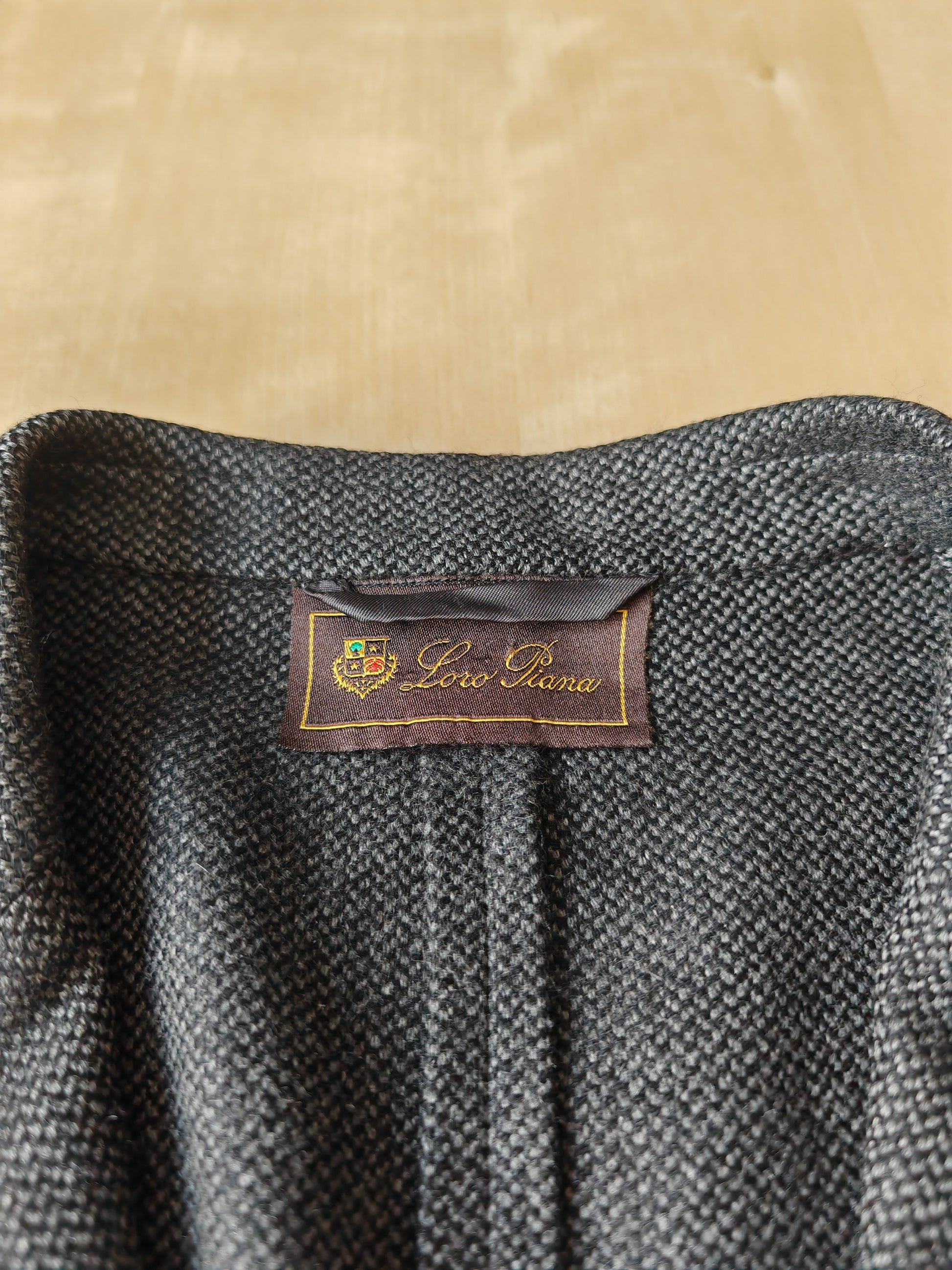 Loro Piana jacket in 100% cashmere cloth, patterned dark grey.