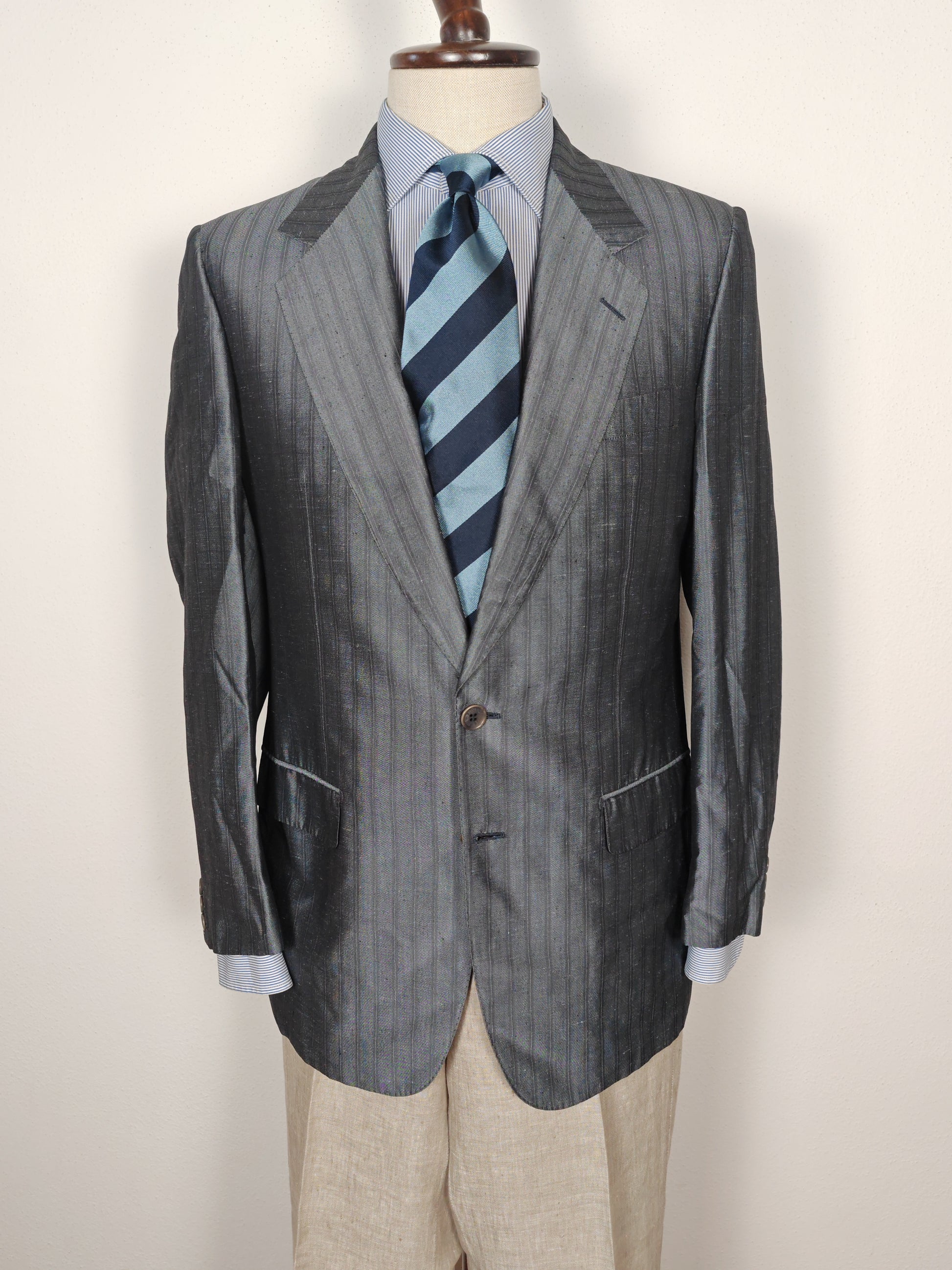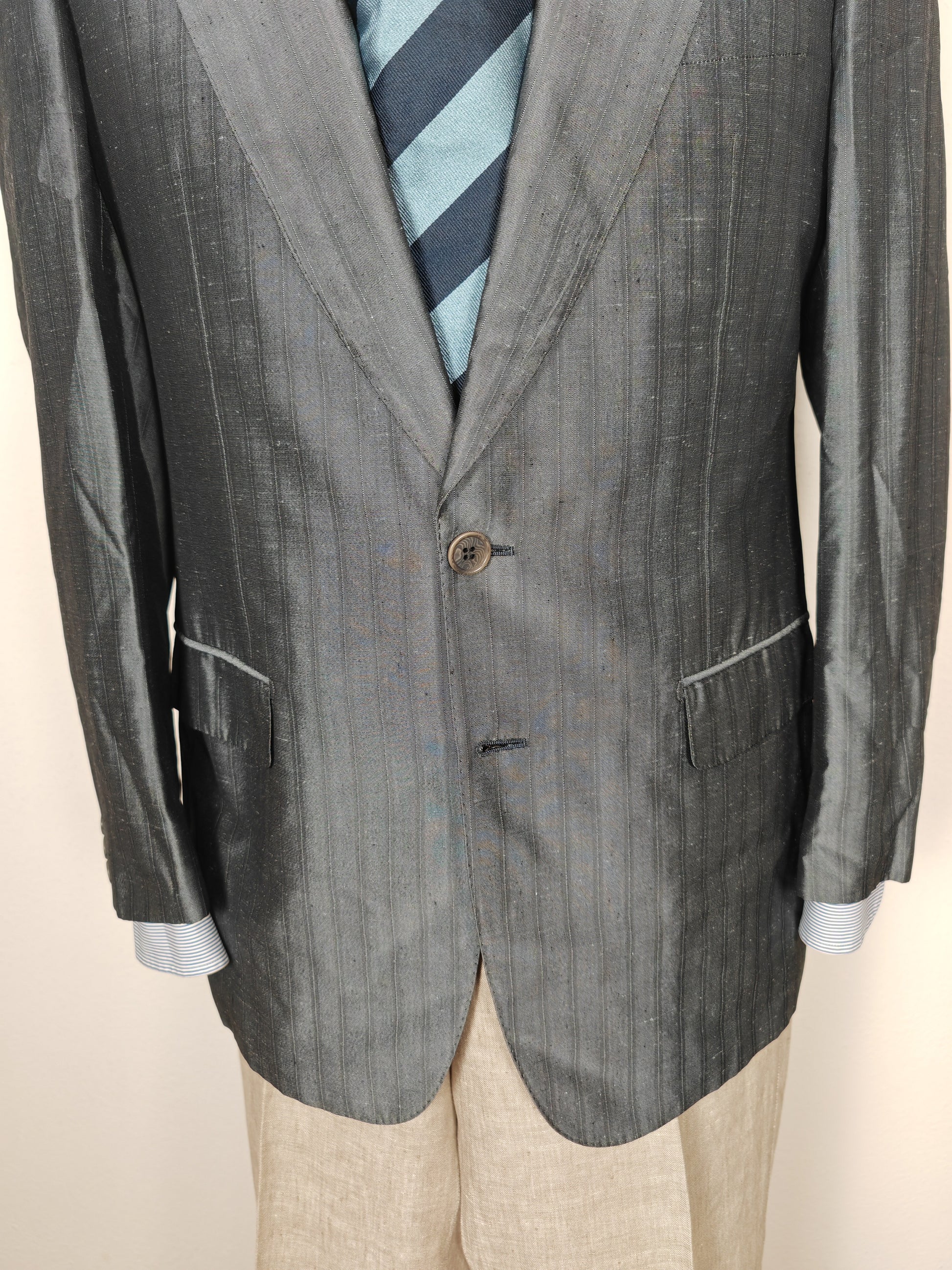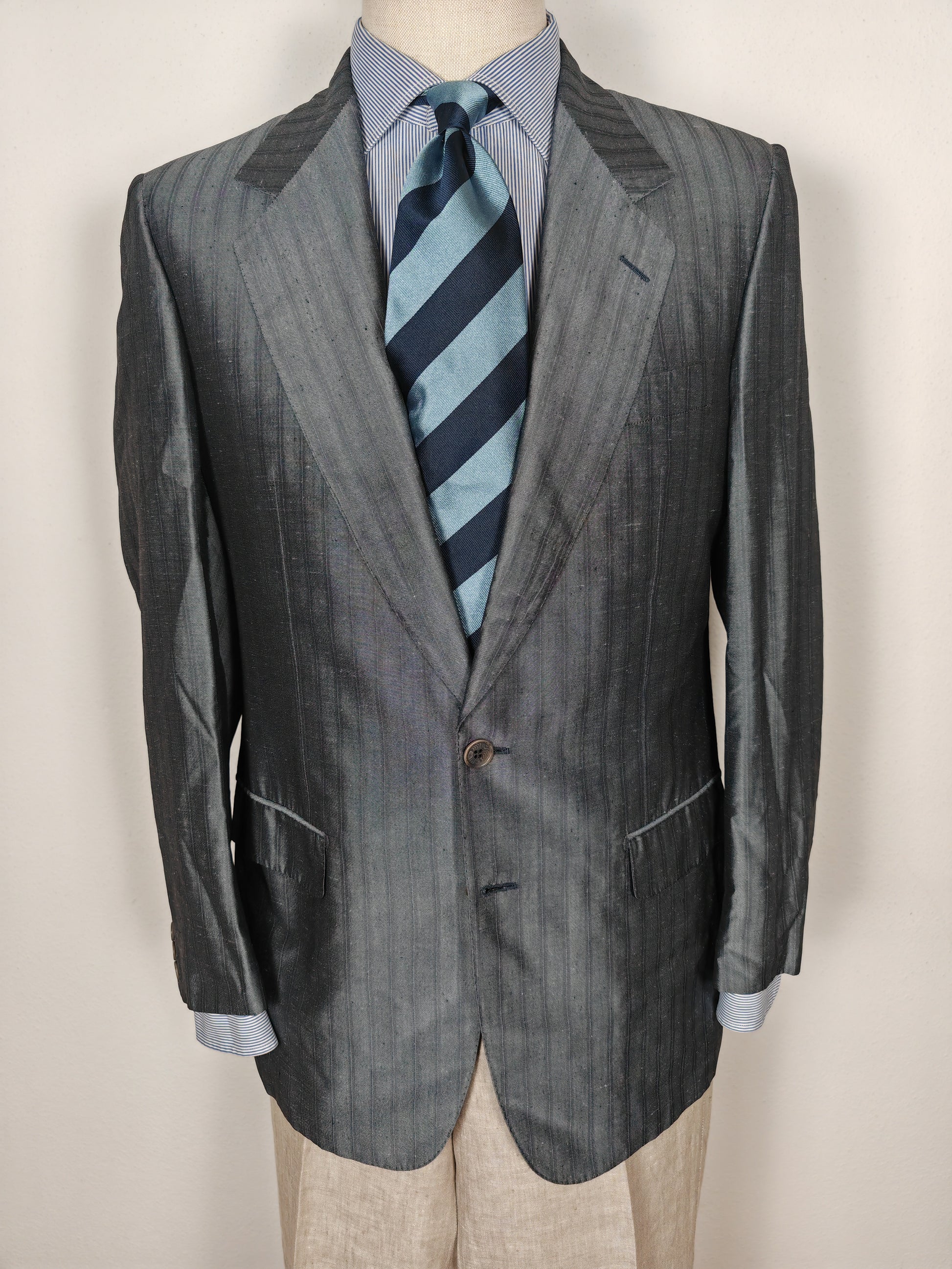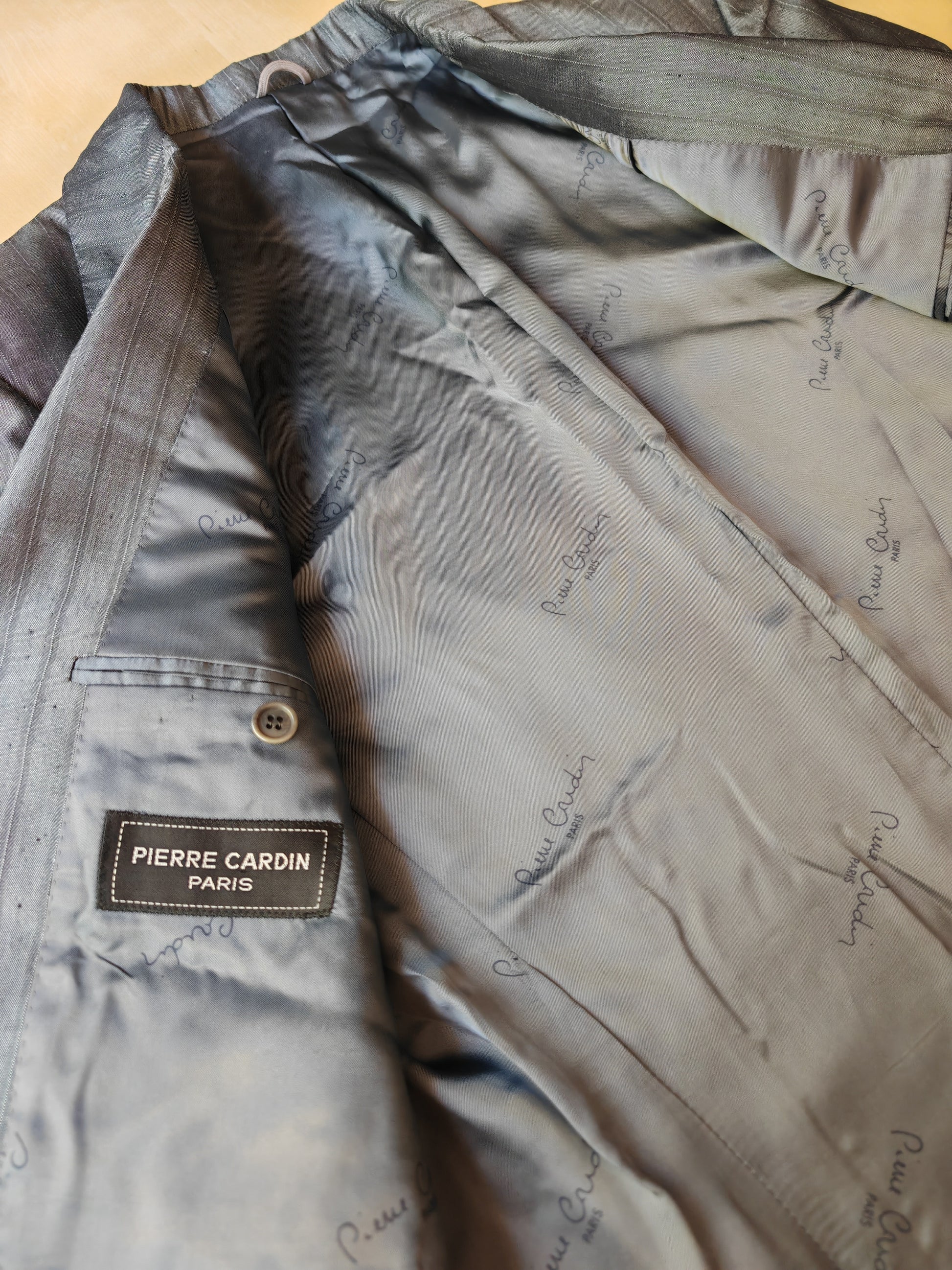Giacca Pierre Cardin di ottima confezione anni '80, in tessuto 100% seta shantung grigio gessato.