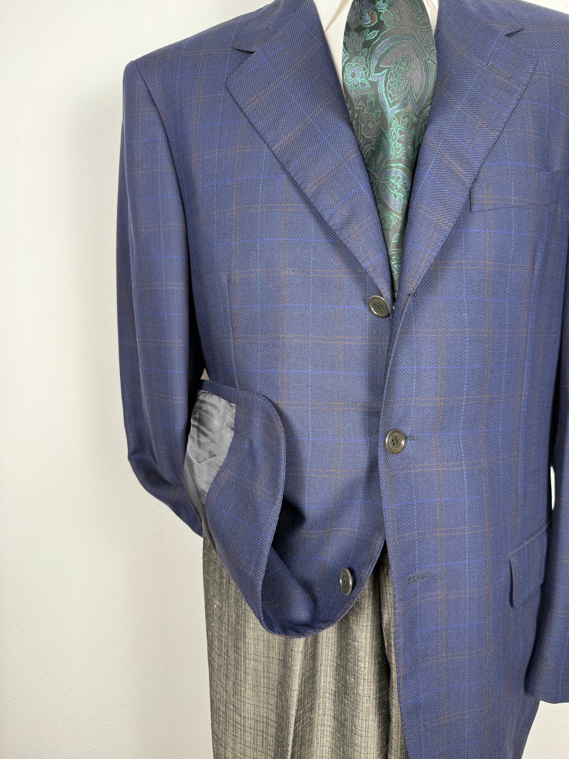 Giacca Pierre Cardin anni '90 in lana super twist blu a quadri - tg. 52/54
