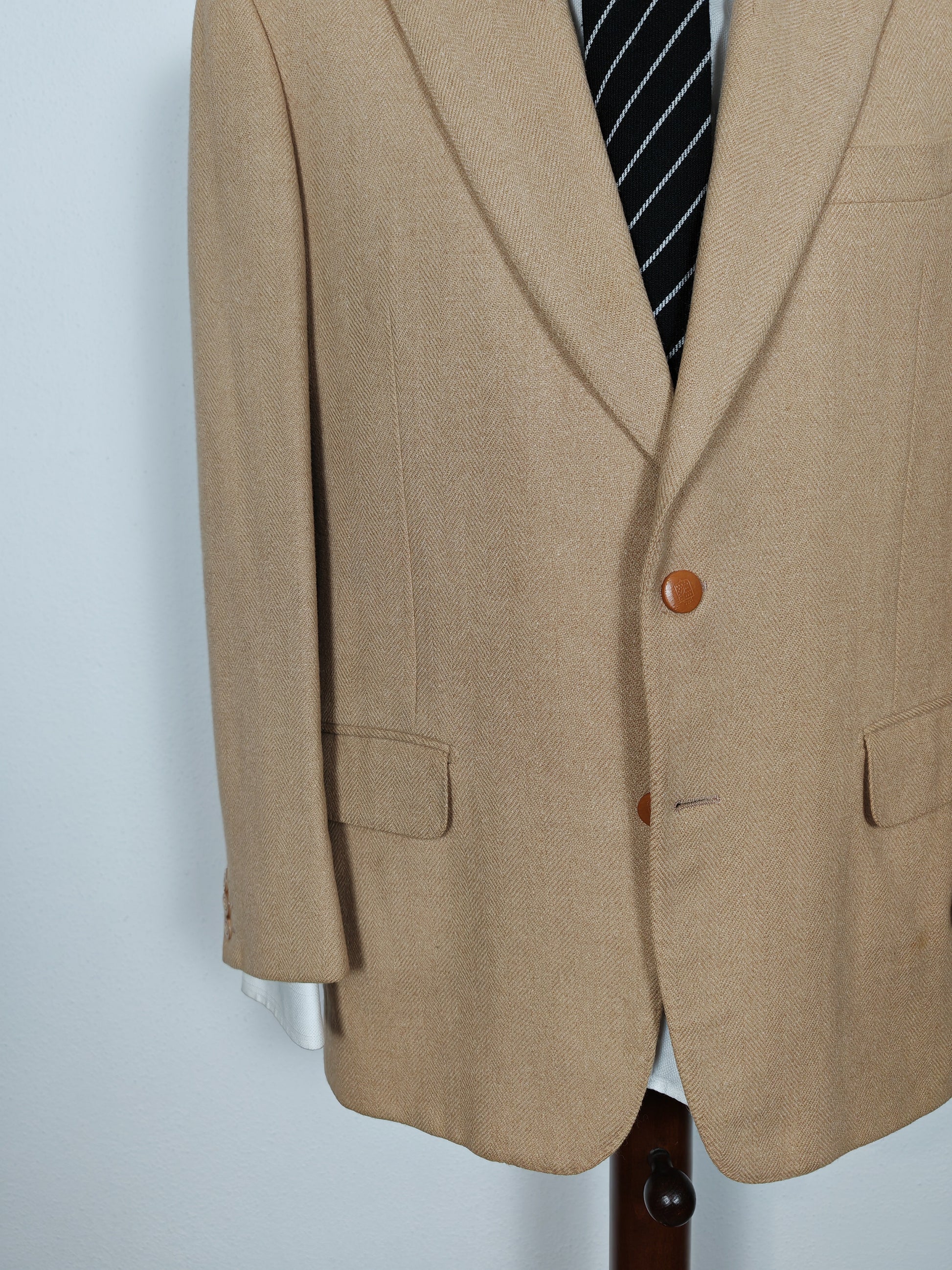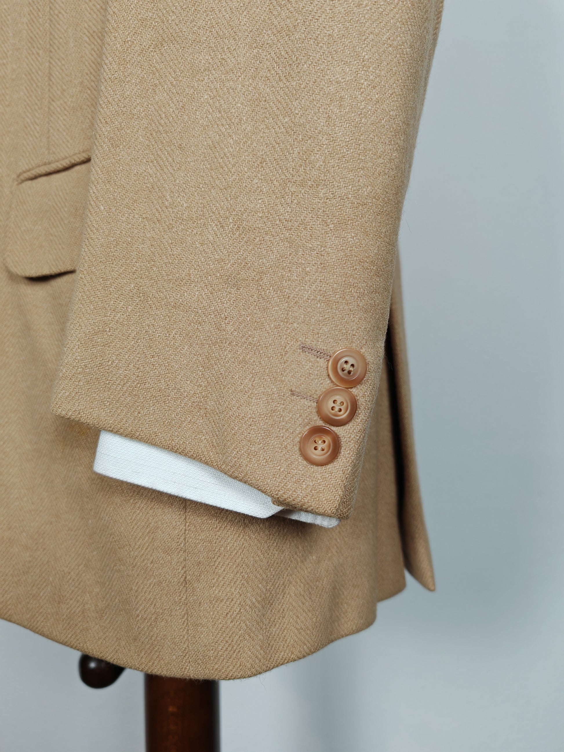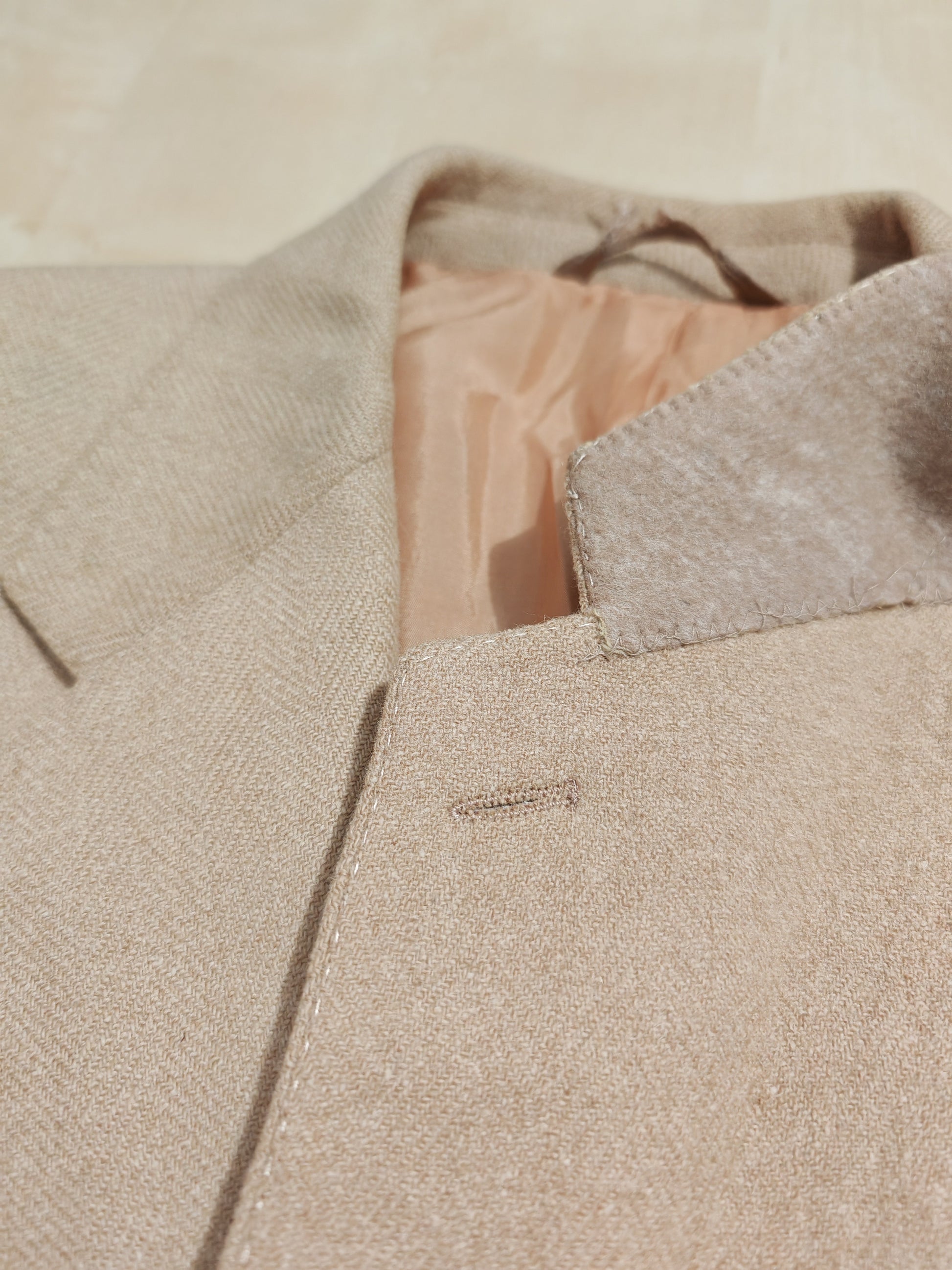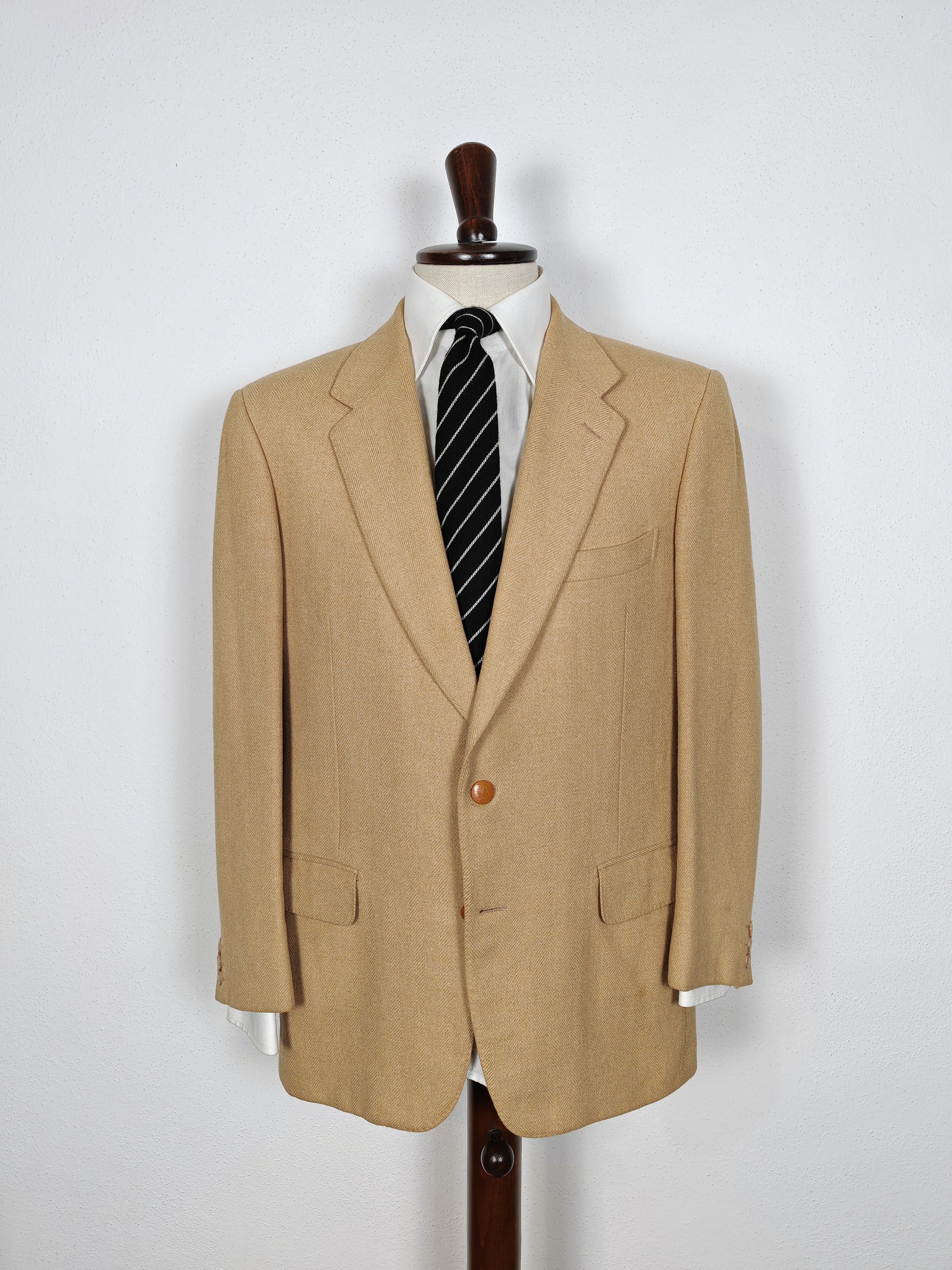 Giacca anni '80 in panno con trama spigata, composizione 100% lana di cammello in bellissimo colore naturale.