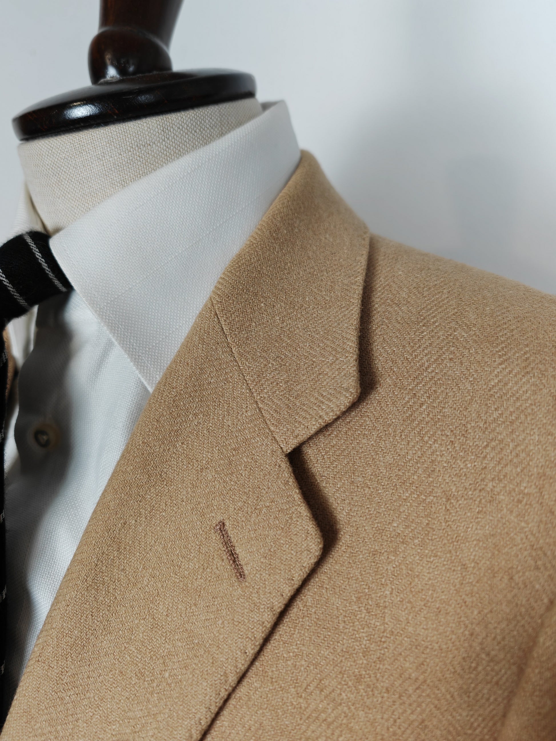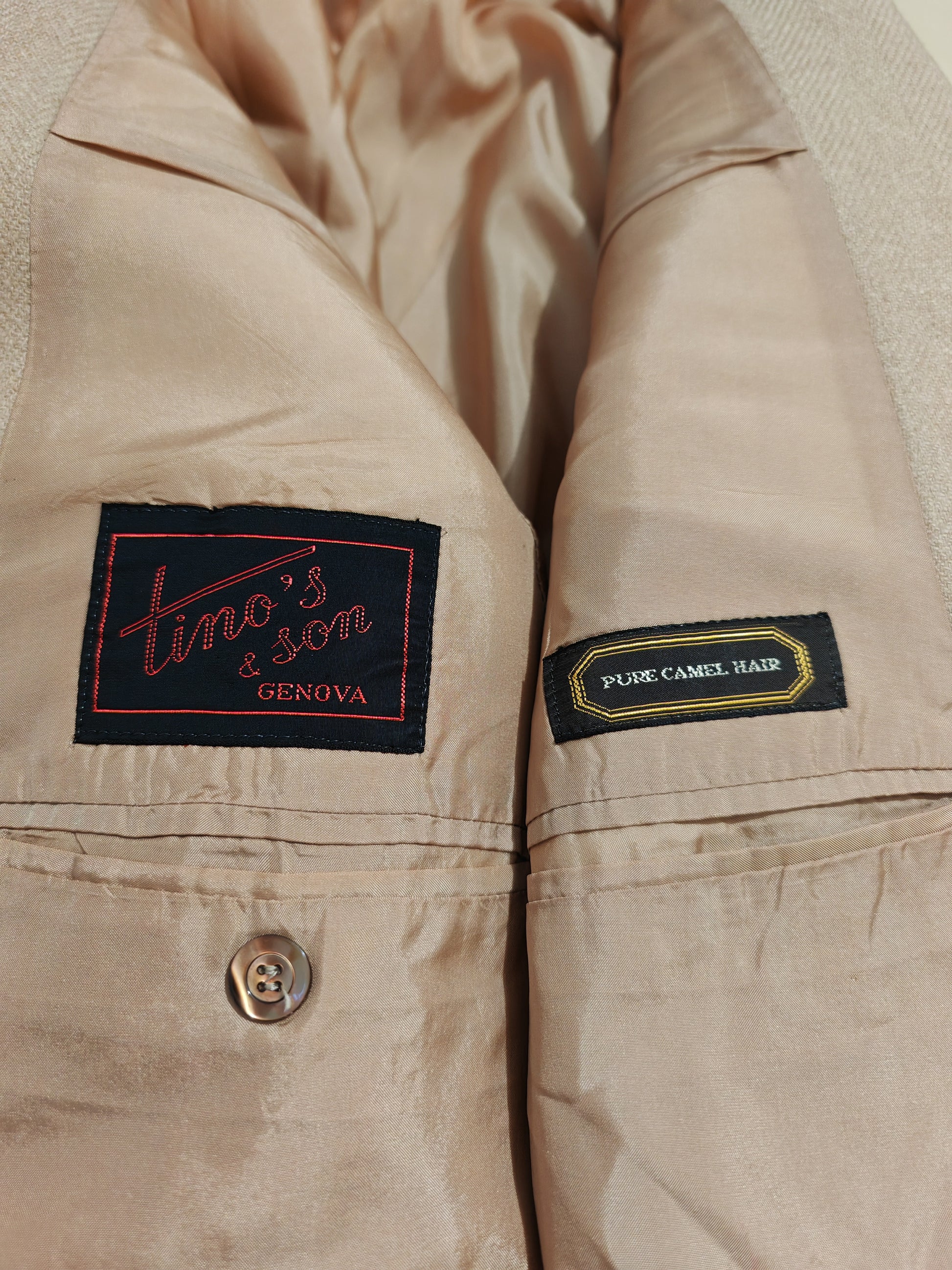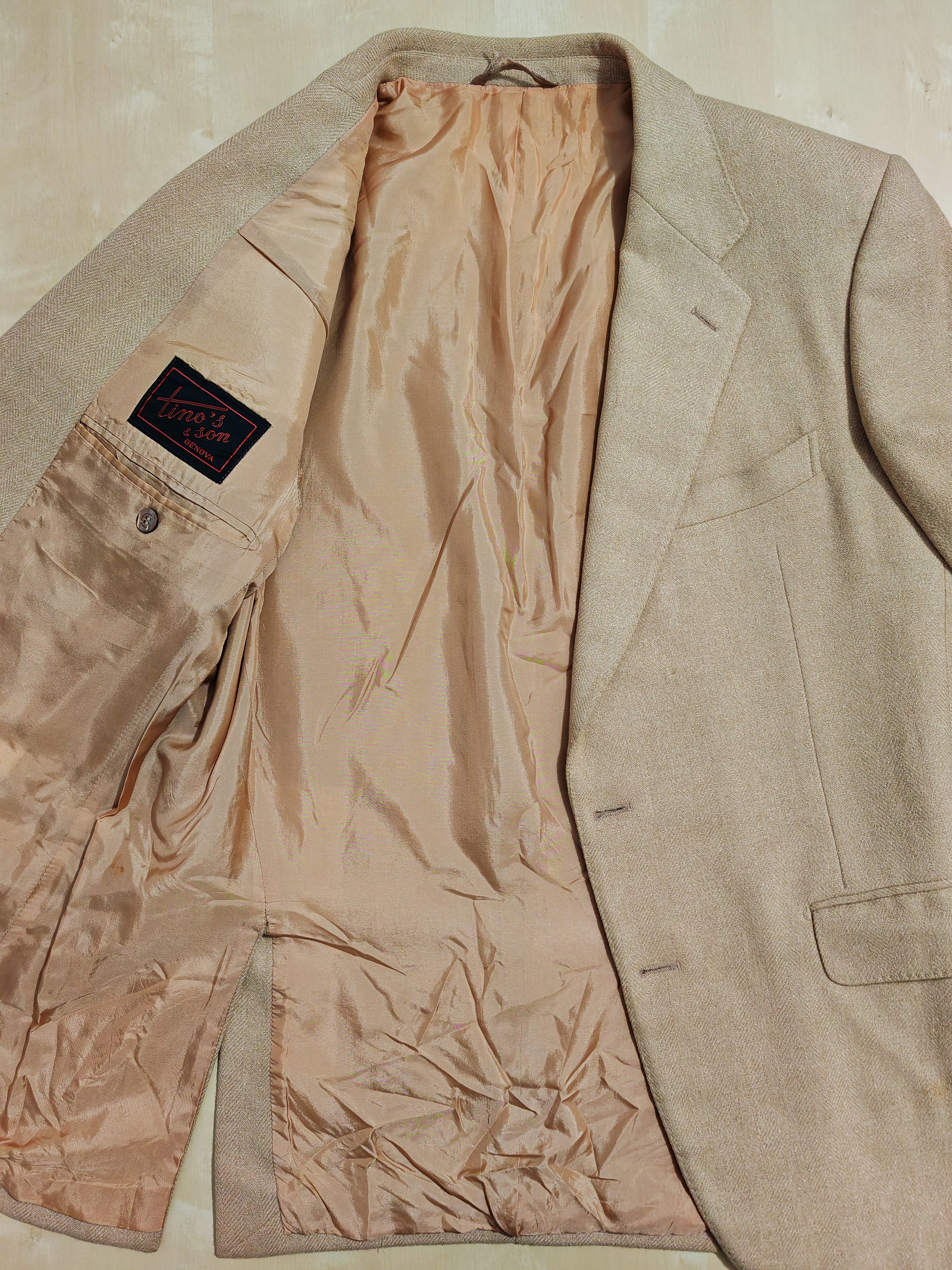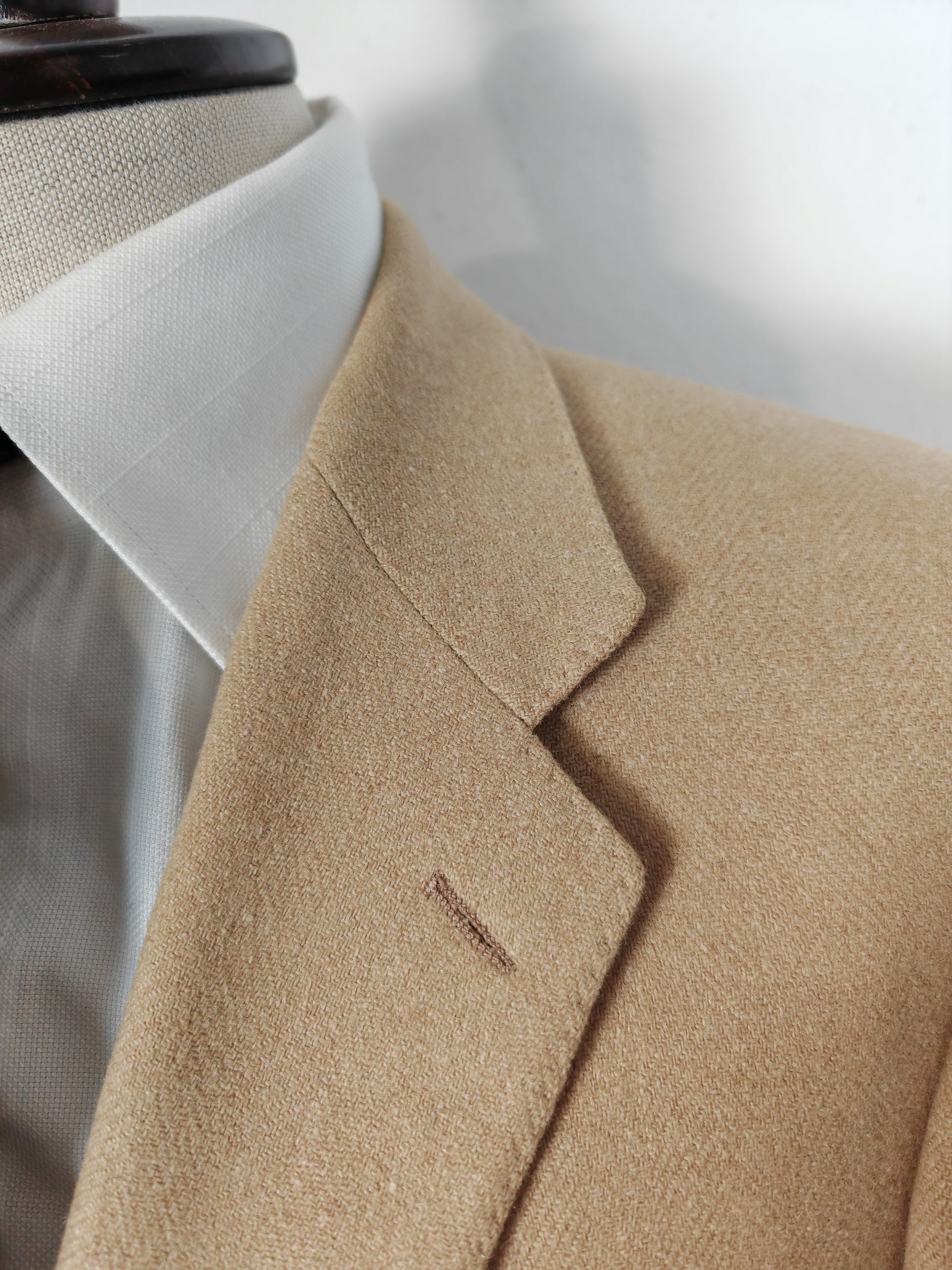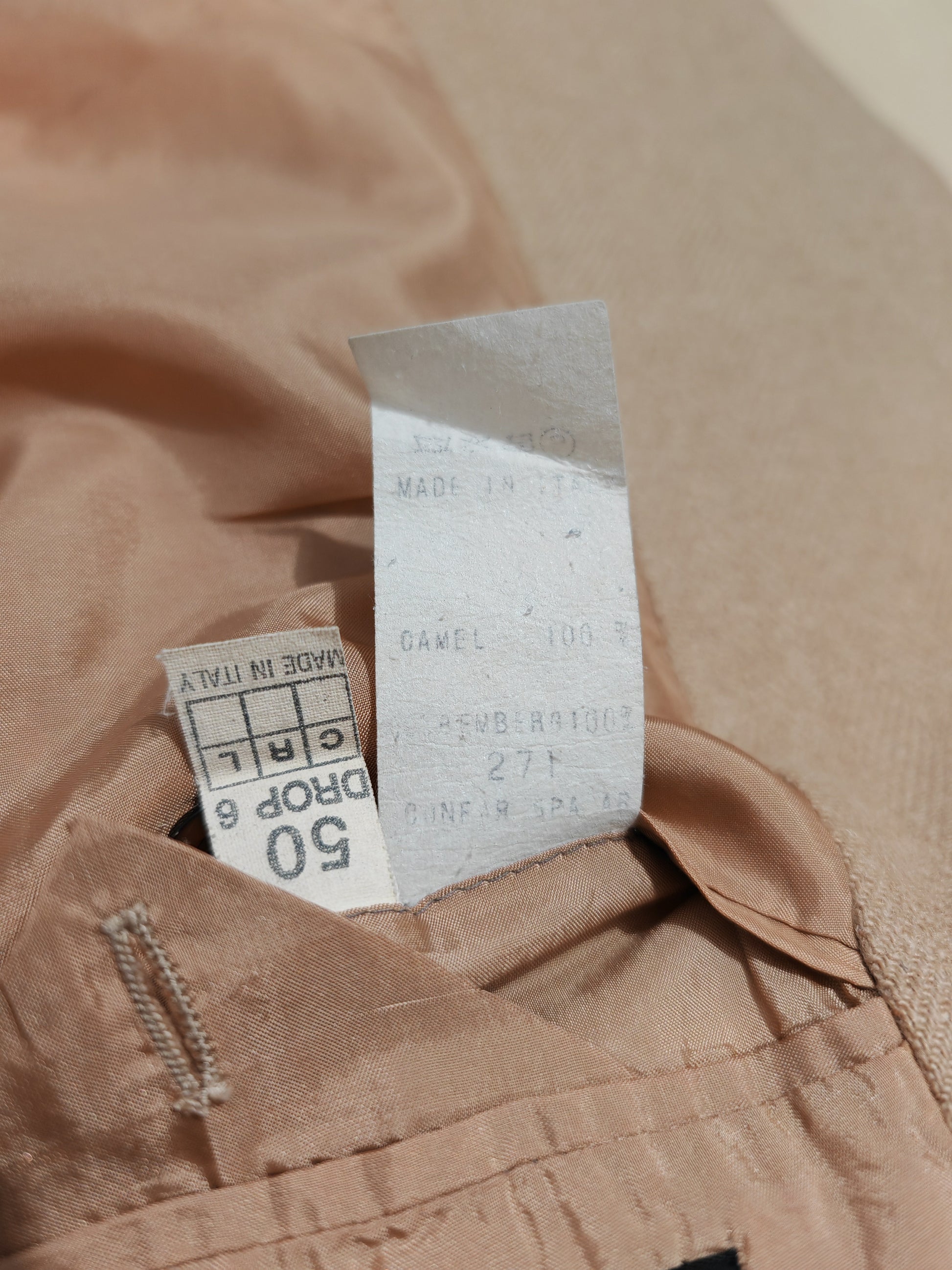 Giacca anni '80 in panno con trama spigata, composizione 100% lana di cammello in bellissimo colore naturale.