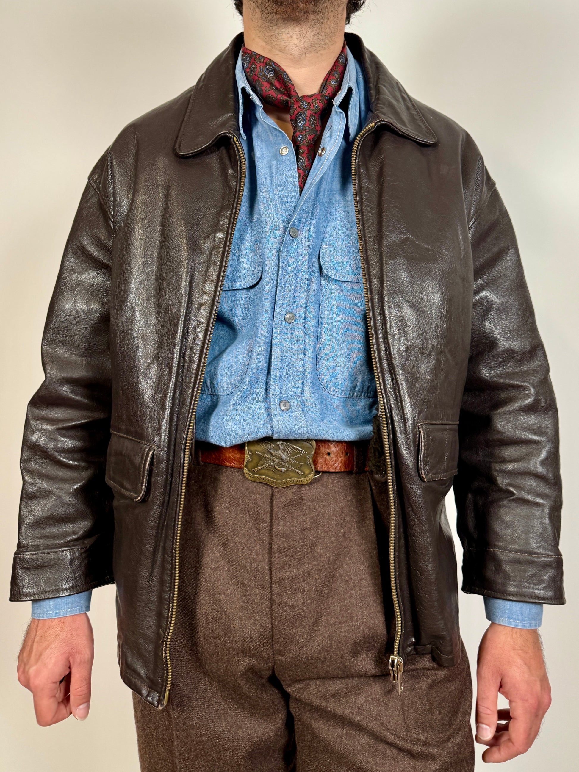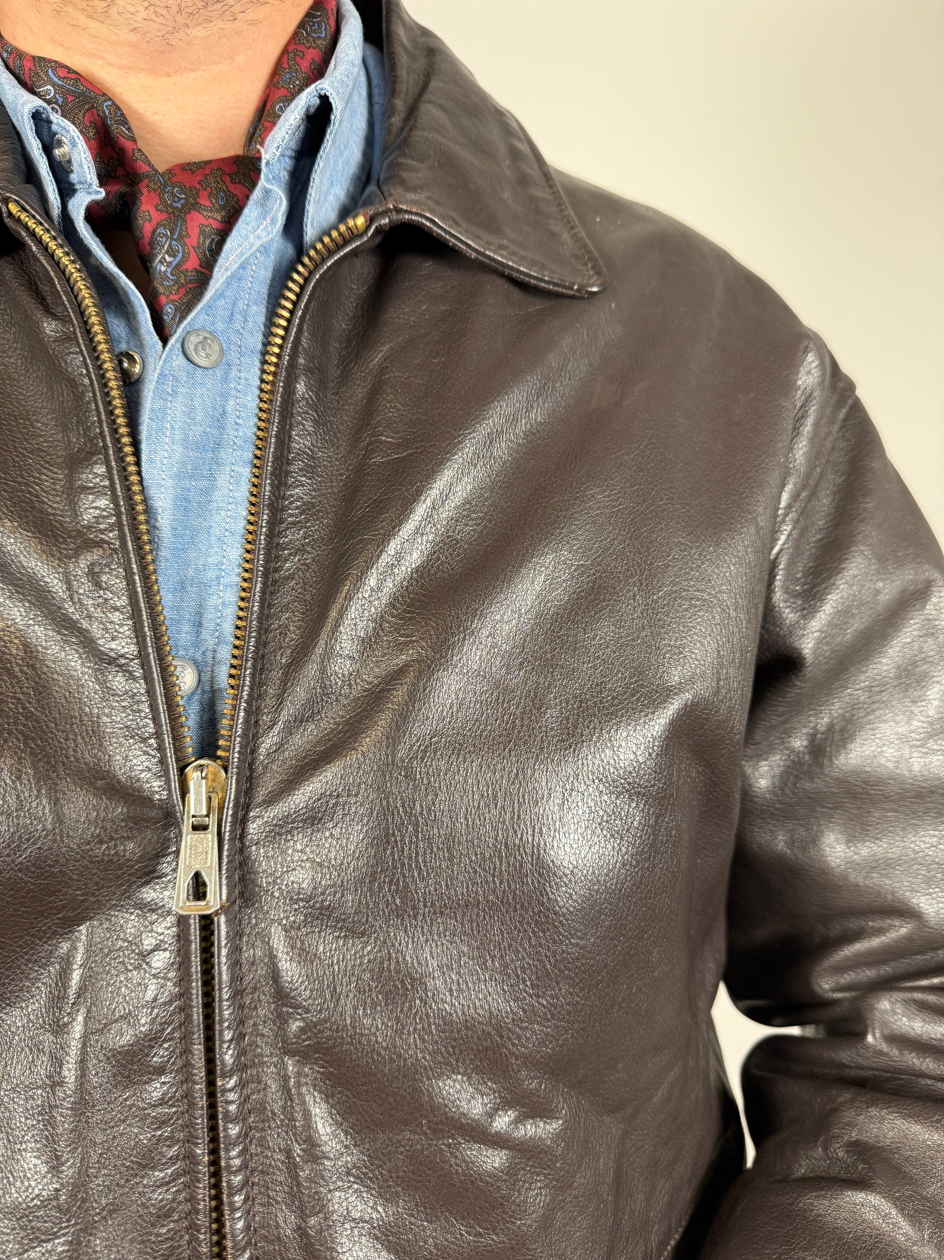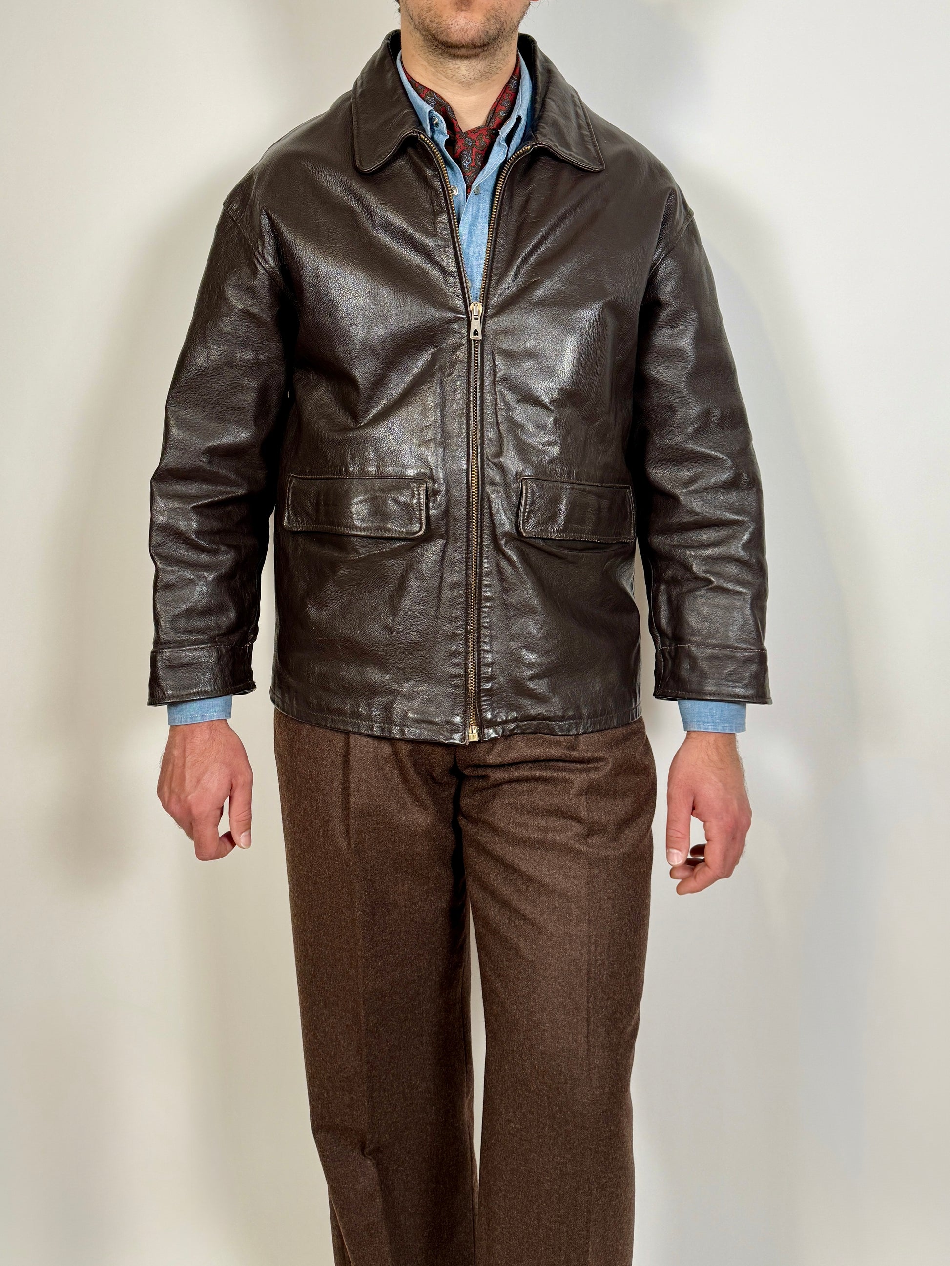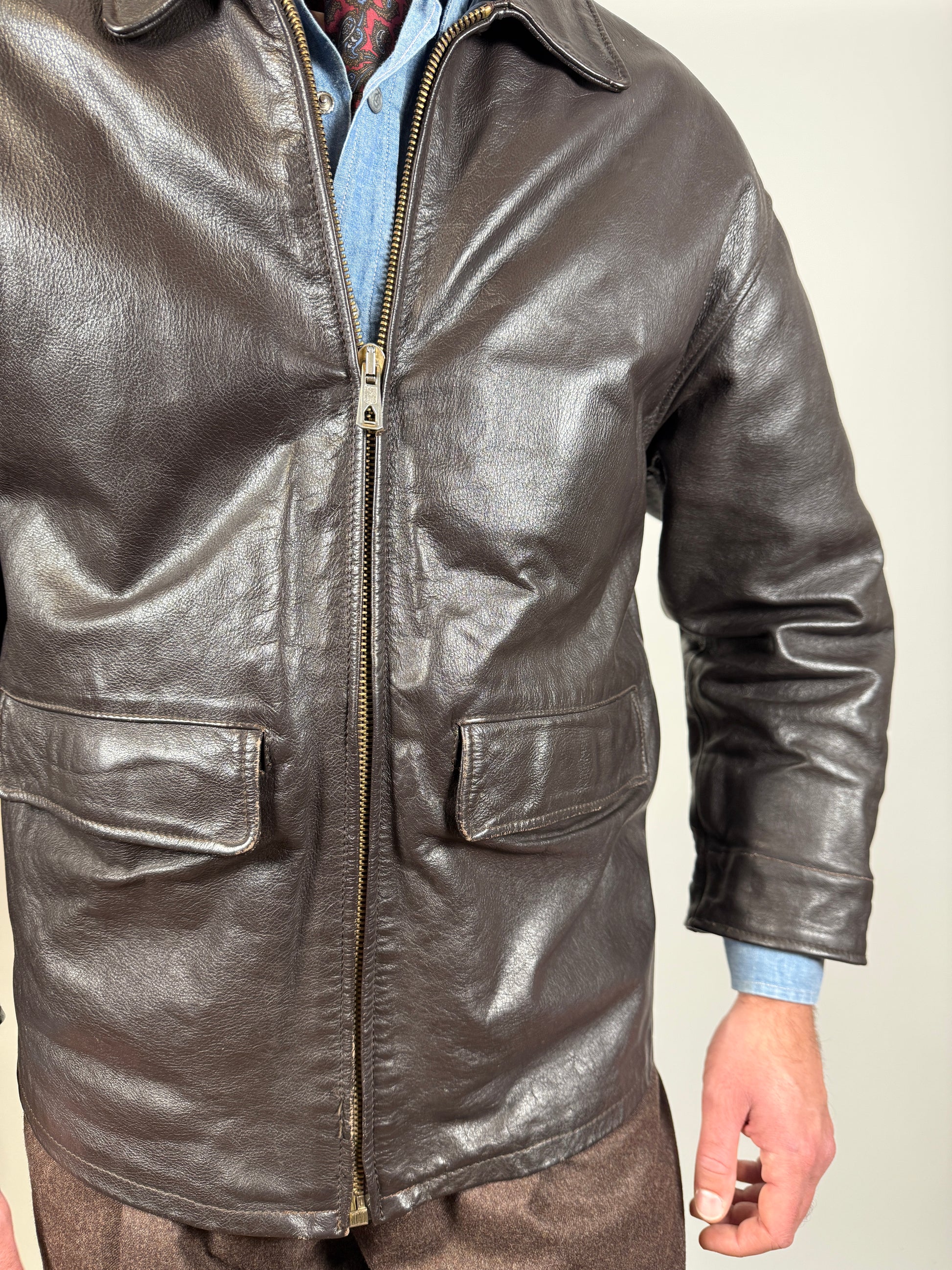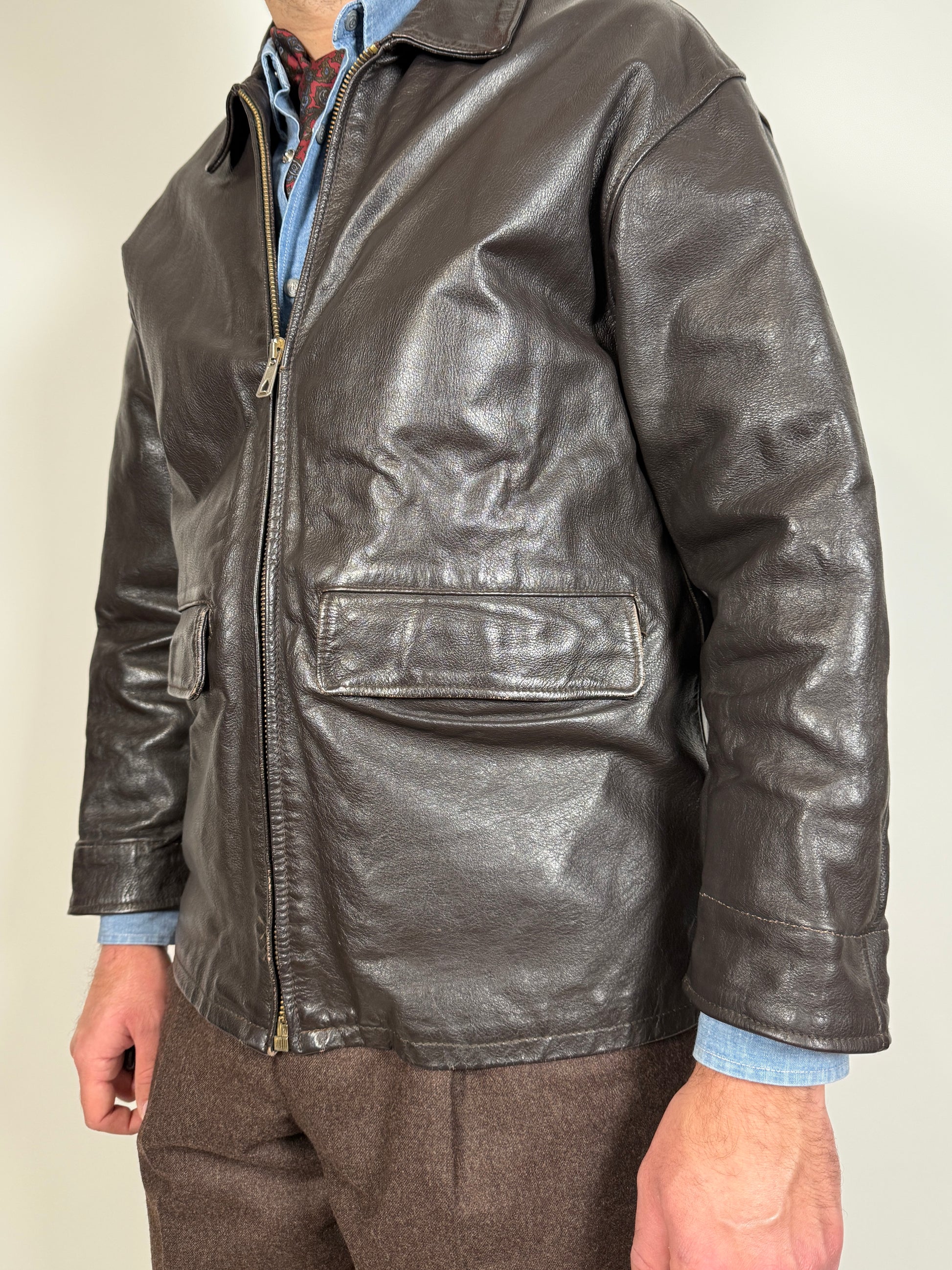 Giubbotto in pelle anni ‘80 color testa di moro - tg. S-M