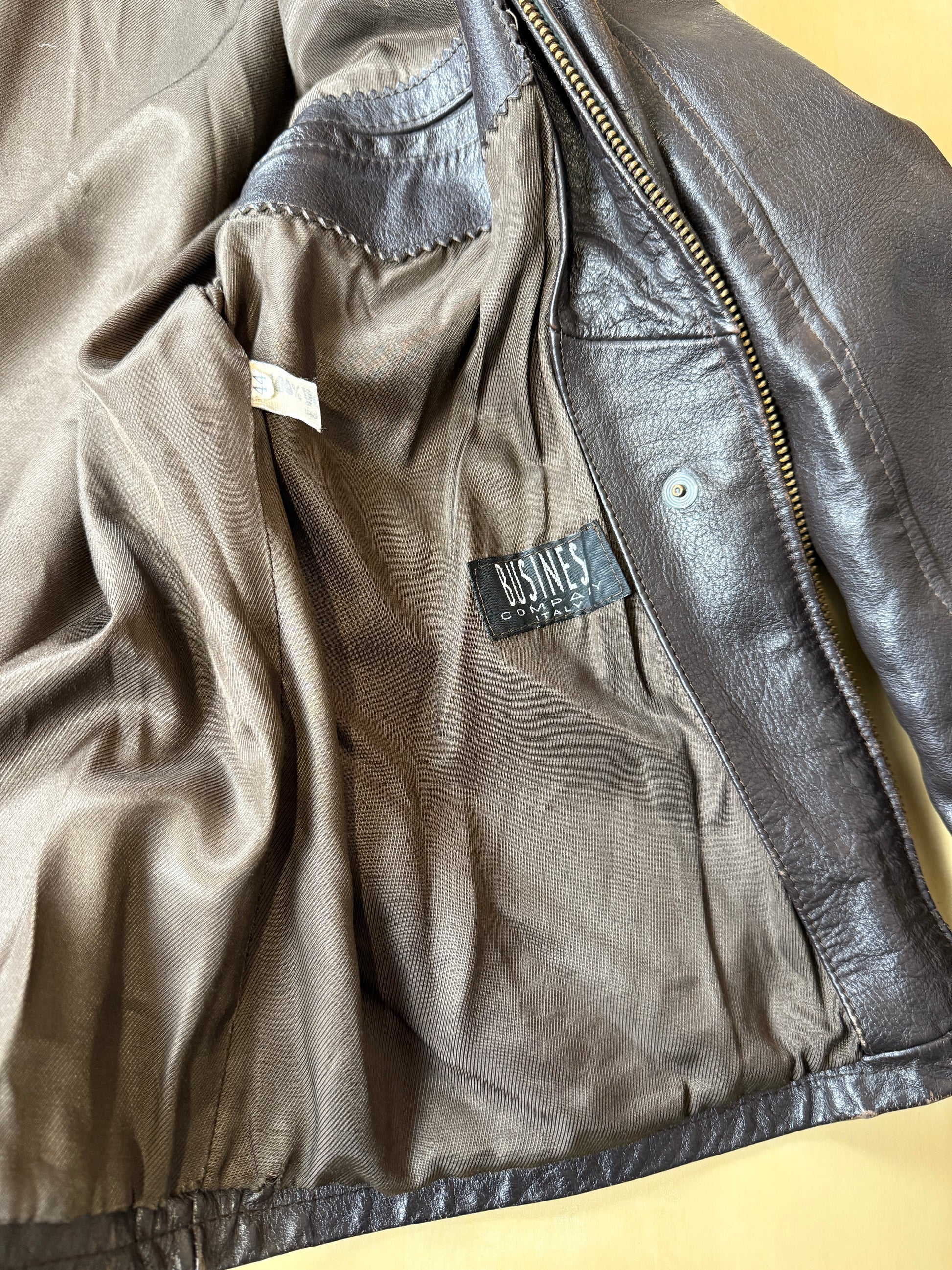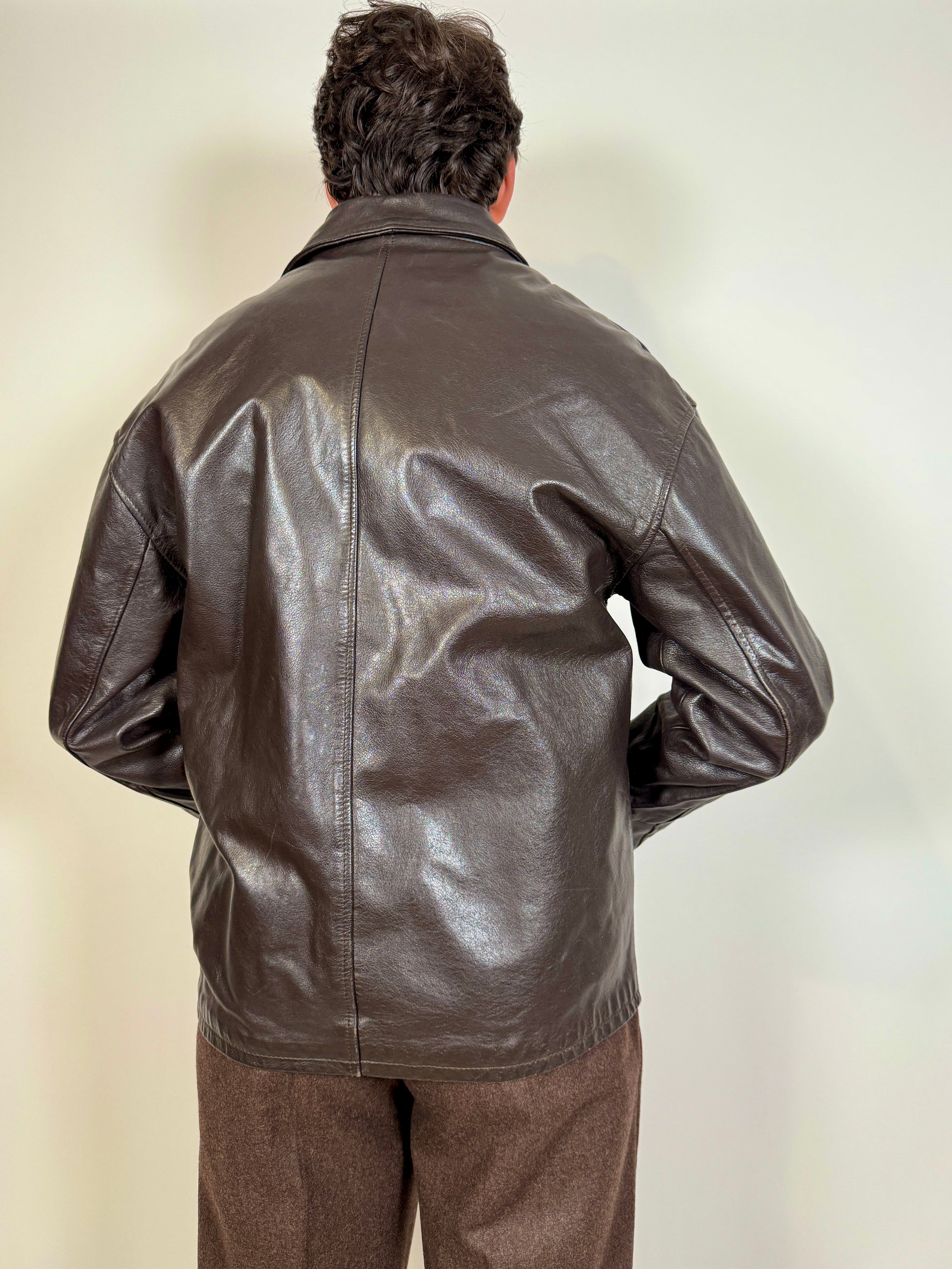 Giacca in vera pelle di ottima confezione italiana anni '80, colore marrone molto scuro (testa di moro).