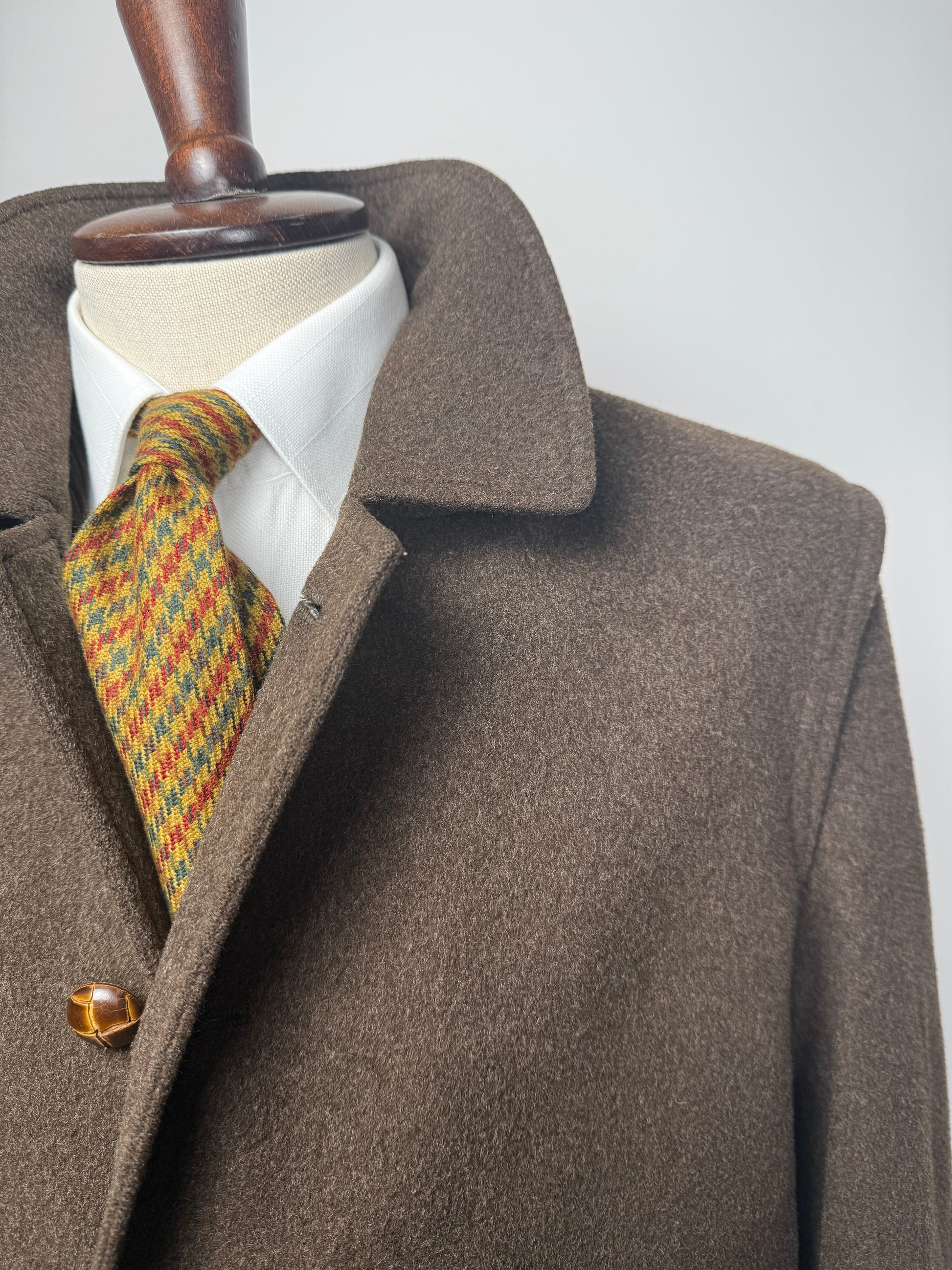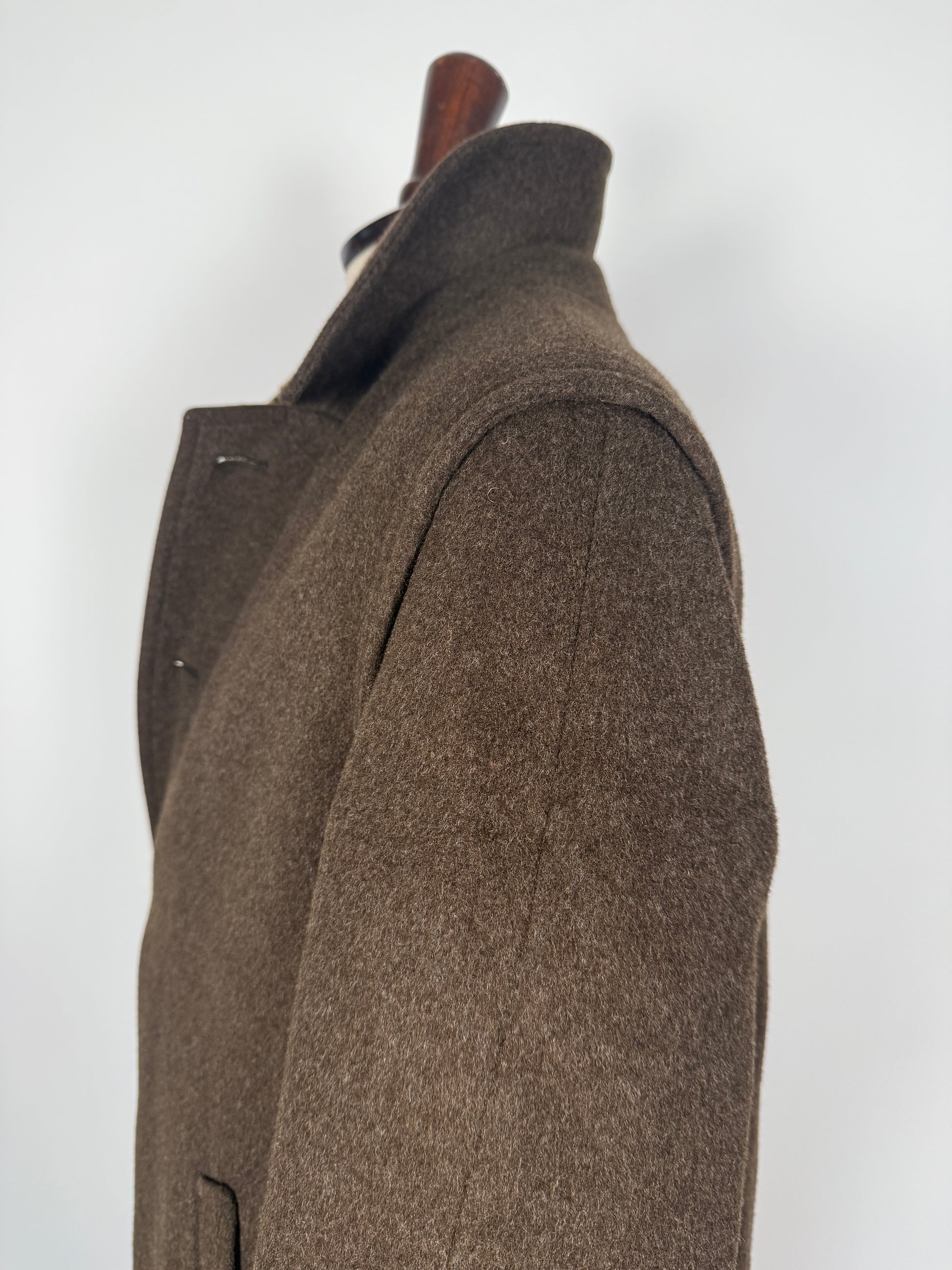 La taglia indicata in etichetta è 52, ma si consiglia piuttosto a una 48/50 per un uso come soprabito sopra alla giacca.
