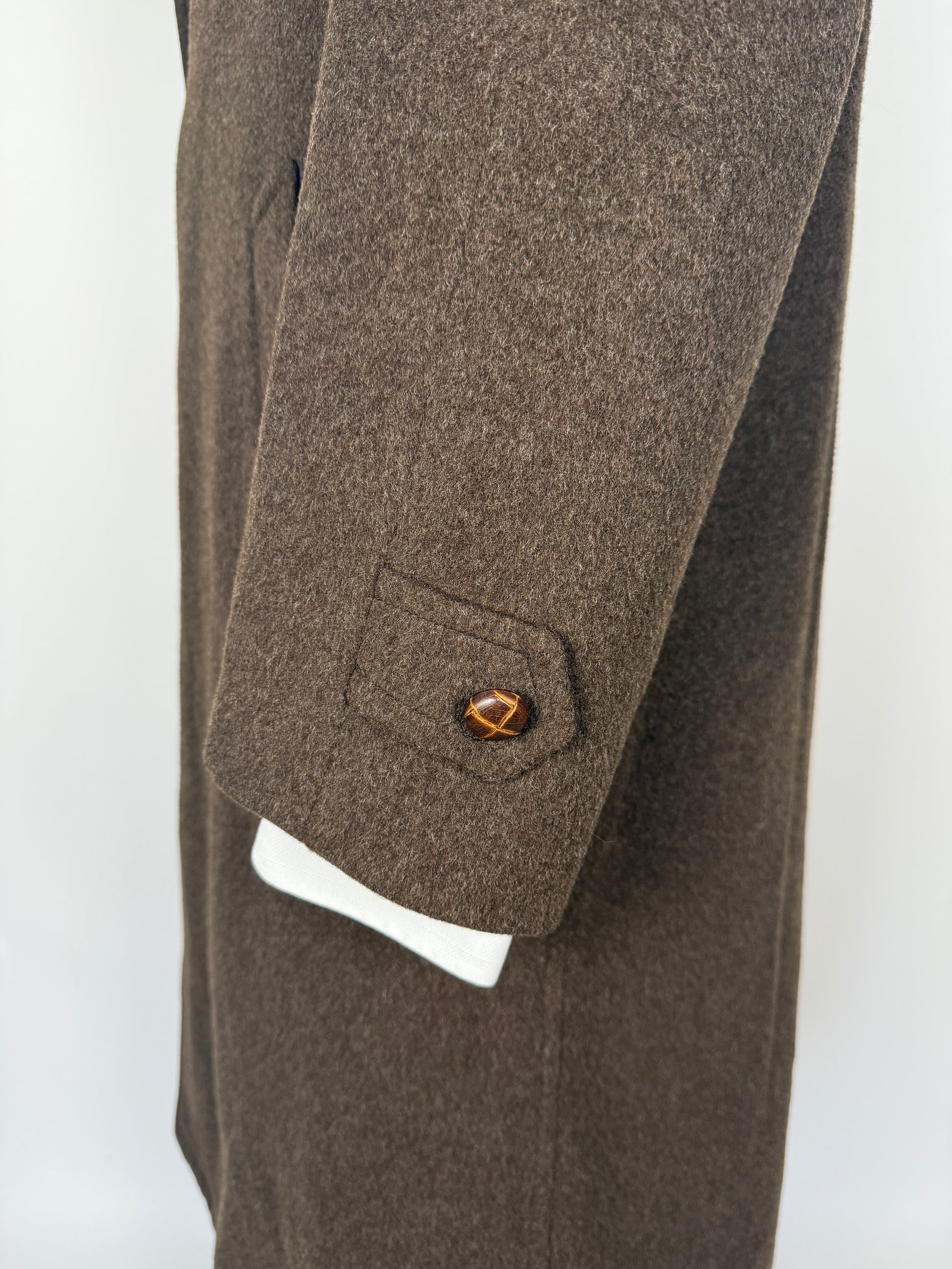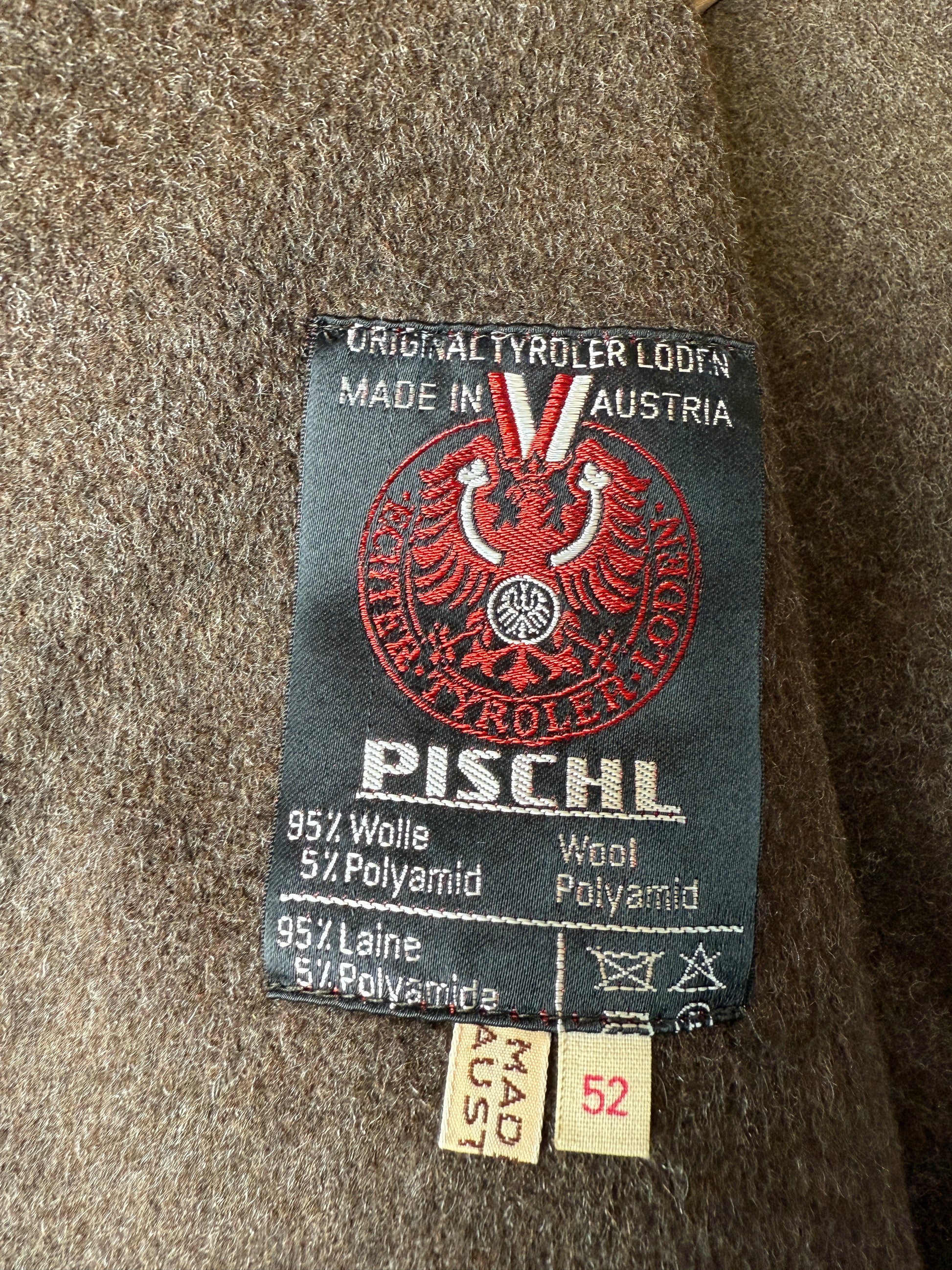 Cappotto loden Pischl originale tirolese, anni '80 circa prodotto in Austria, in tipico panno loden qui nella più rara ma bellissima colorazione marrone scuro.