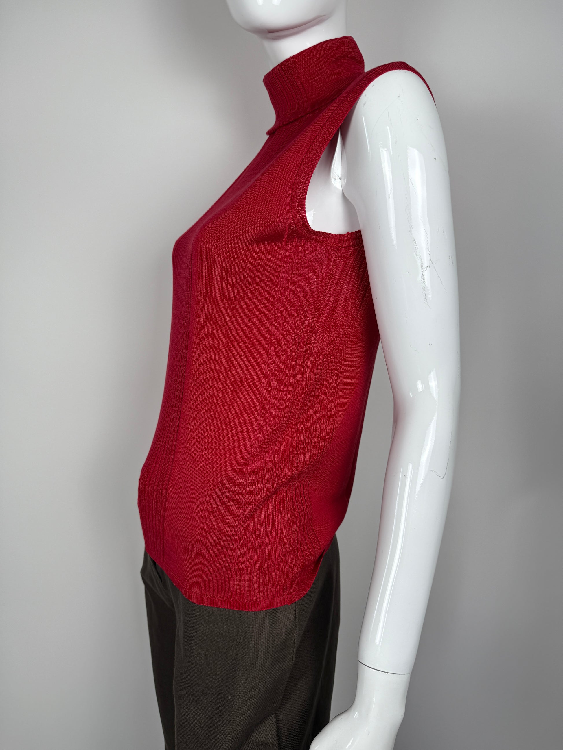Top a collo alto linea Malizia by La Perla, in maglia leggera 100% seta. Bellissimo colore rosso fragola.