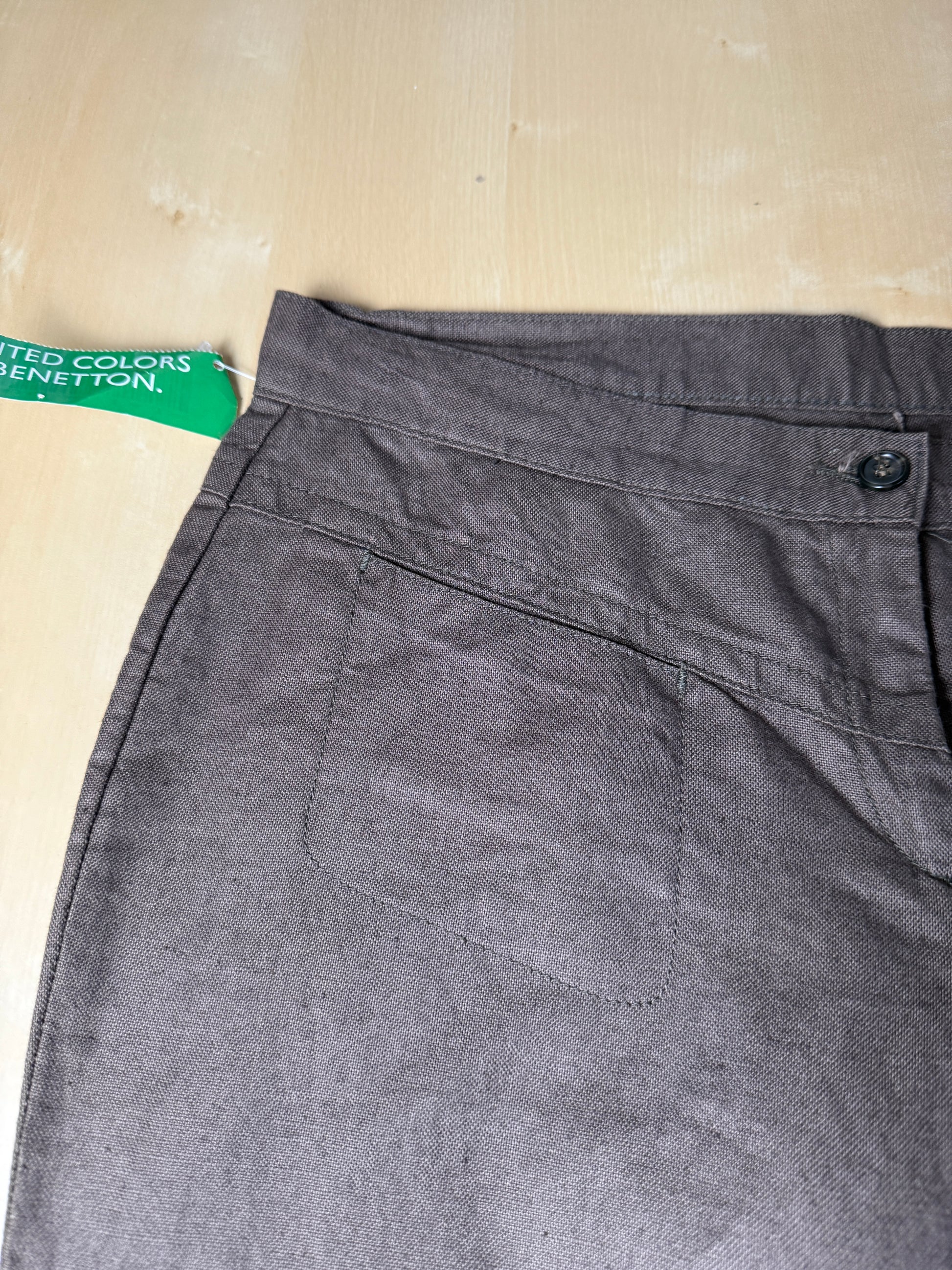 Pantalone Benetton deadstock primi anni 2000, in misto lino e cotone colore marrone.