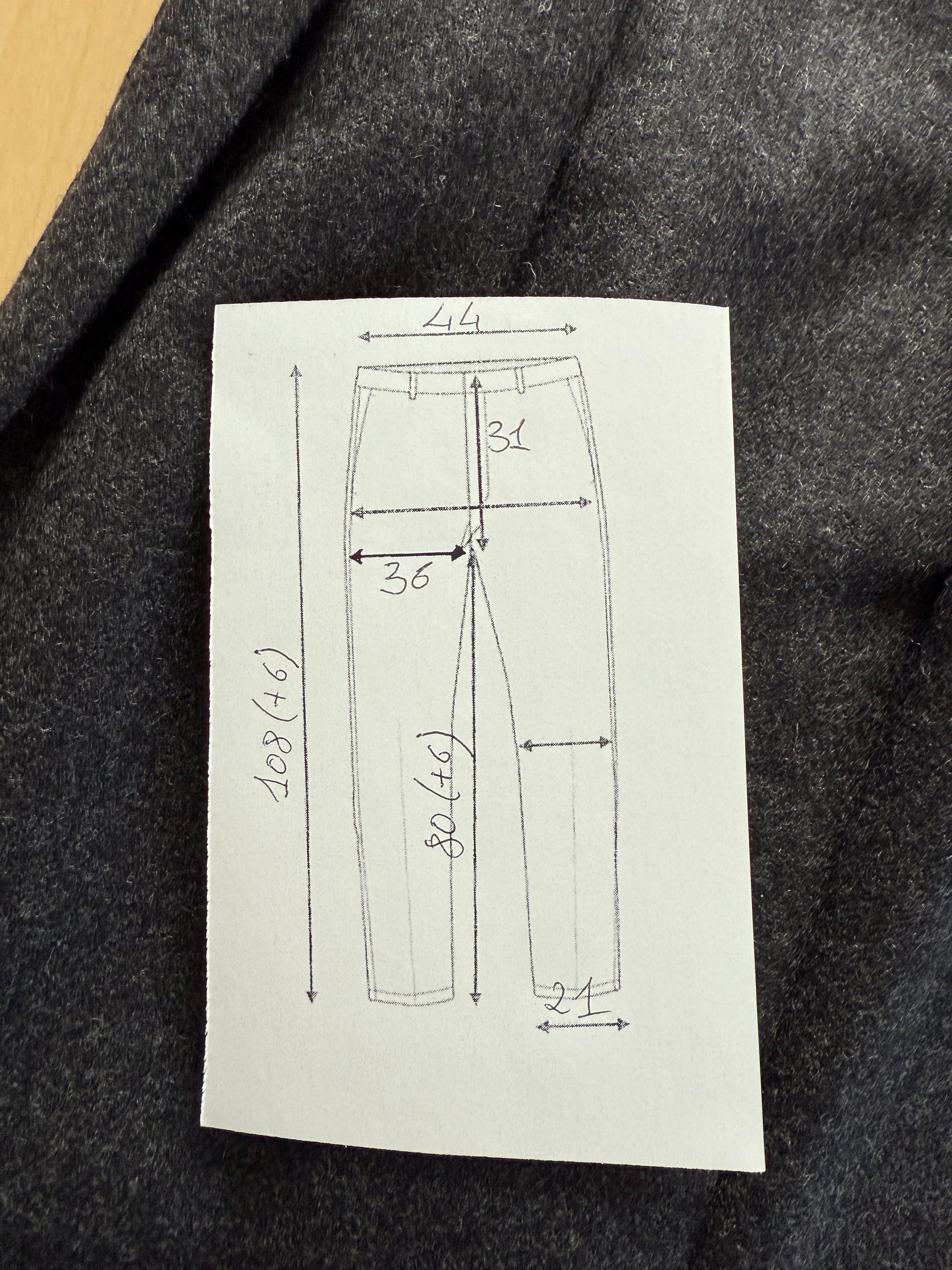 L’etichetta riporta taglia 52, ma vestono piuttosto una taglia 50: misure complete in cm nello schema in ultima foto.
