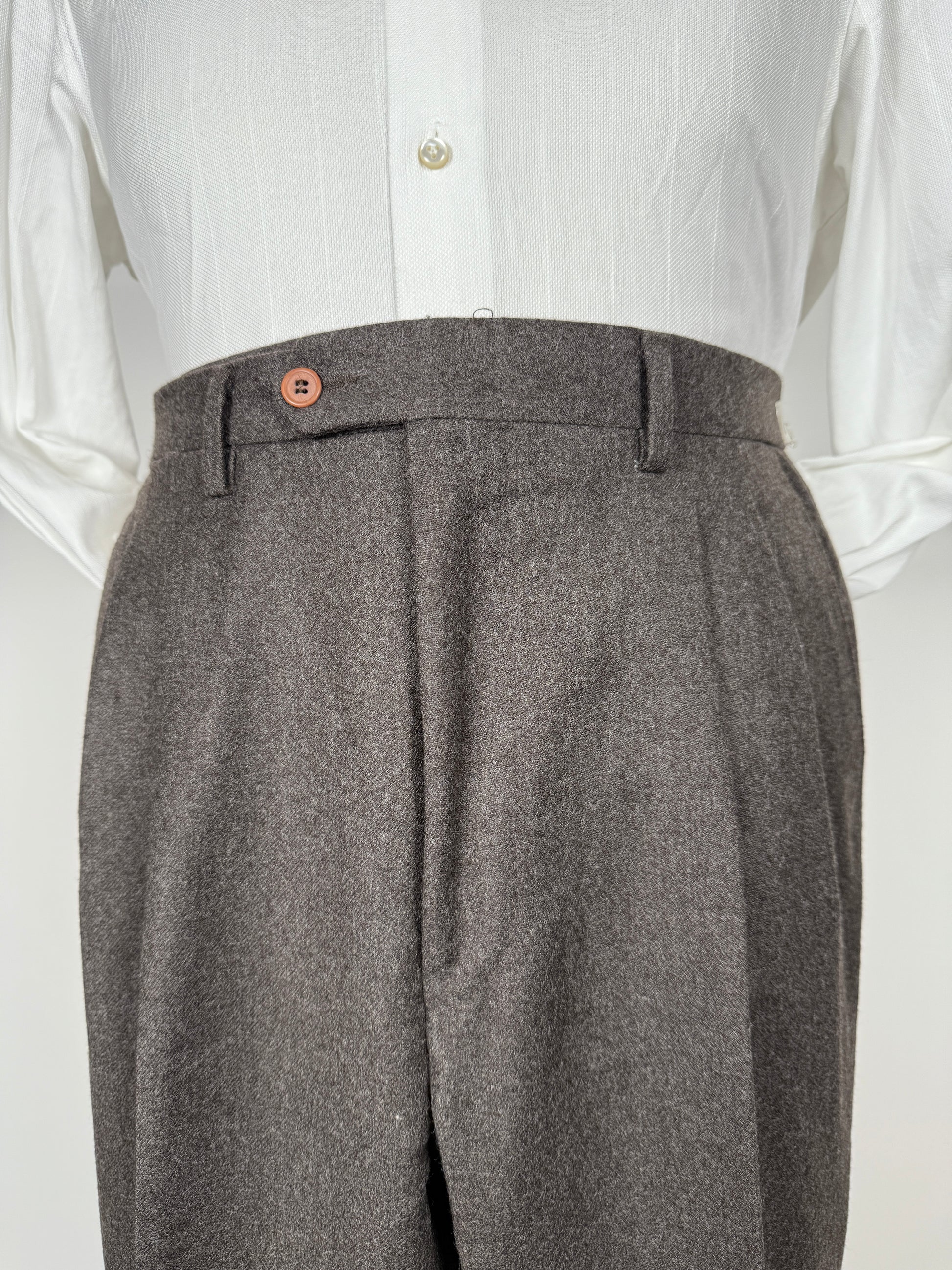 Pantaloni anni ‘80 in flanella 100% lana colore marrone.