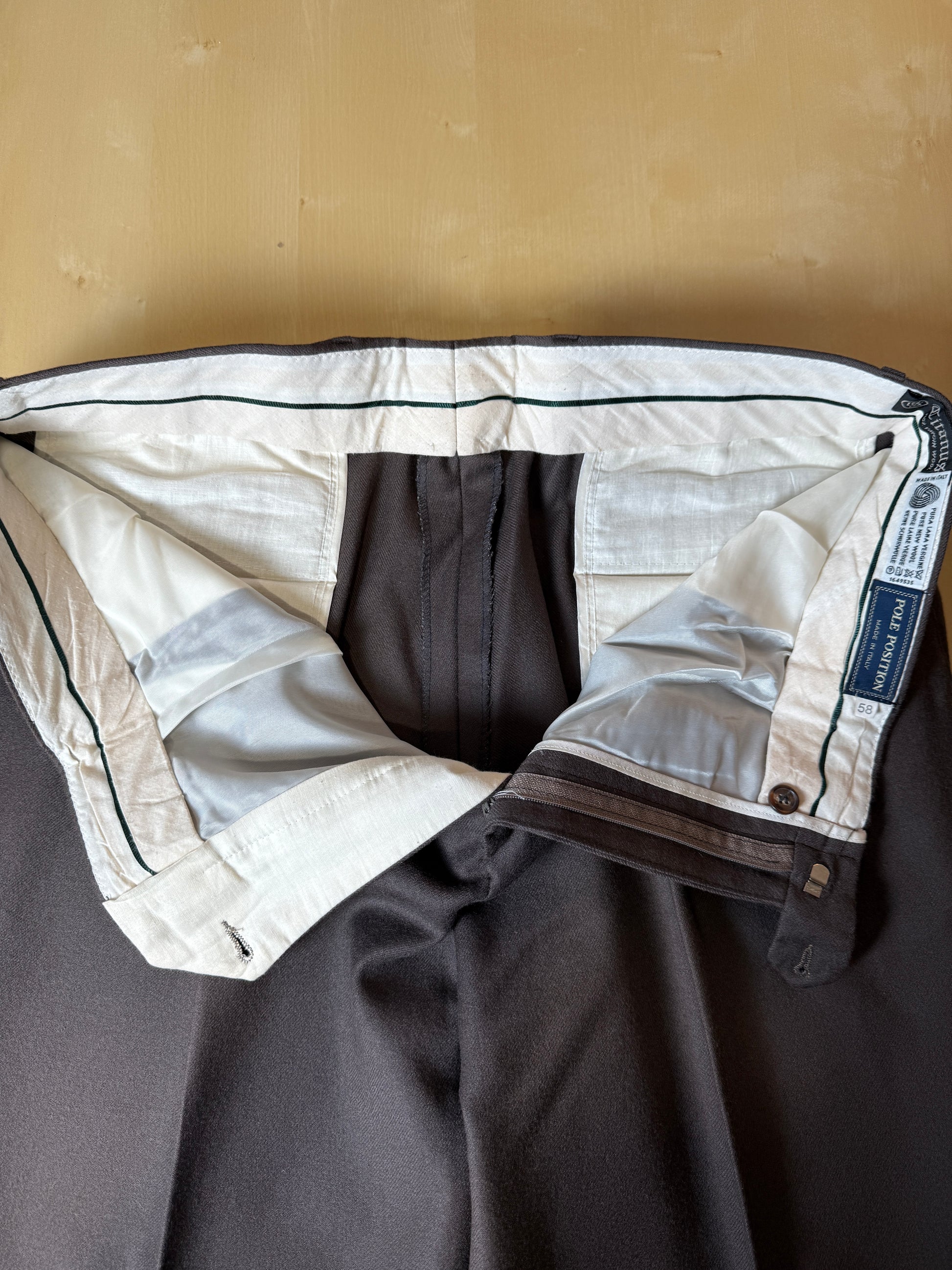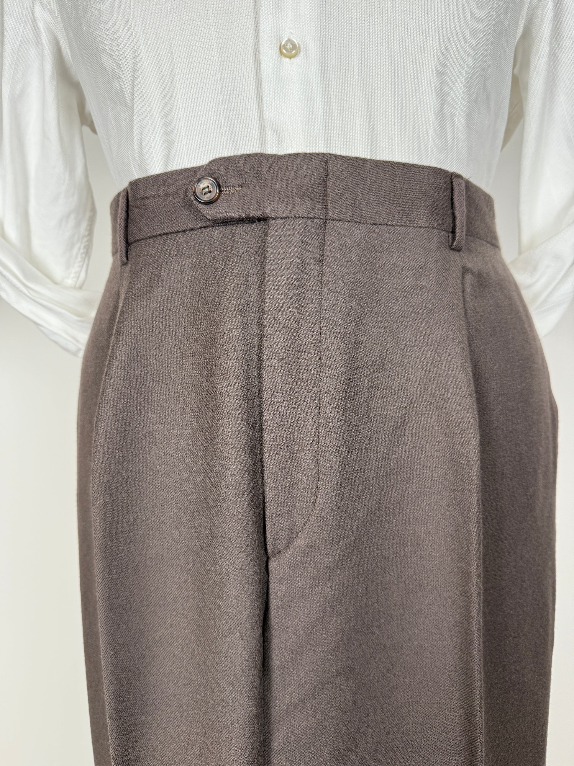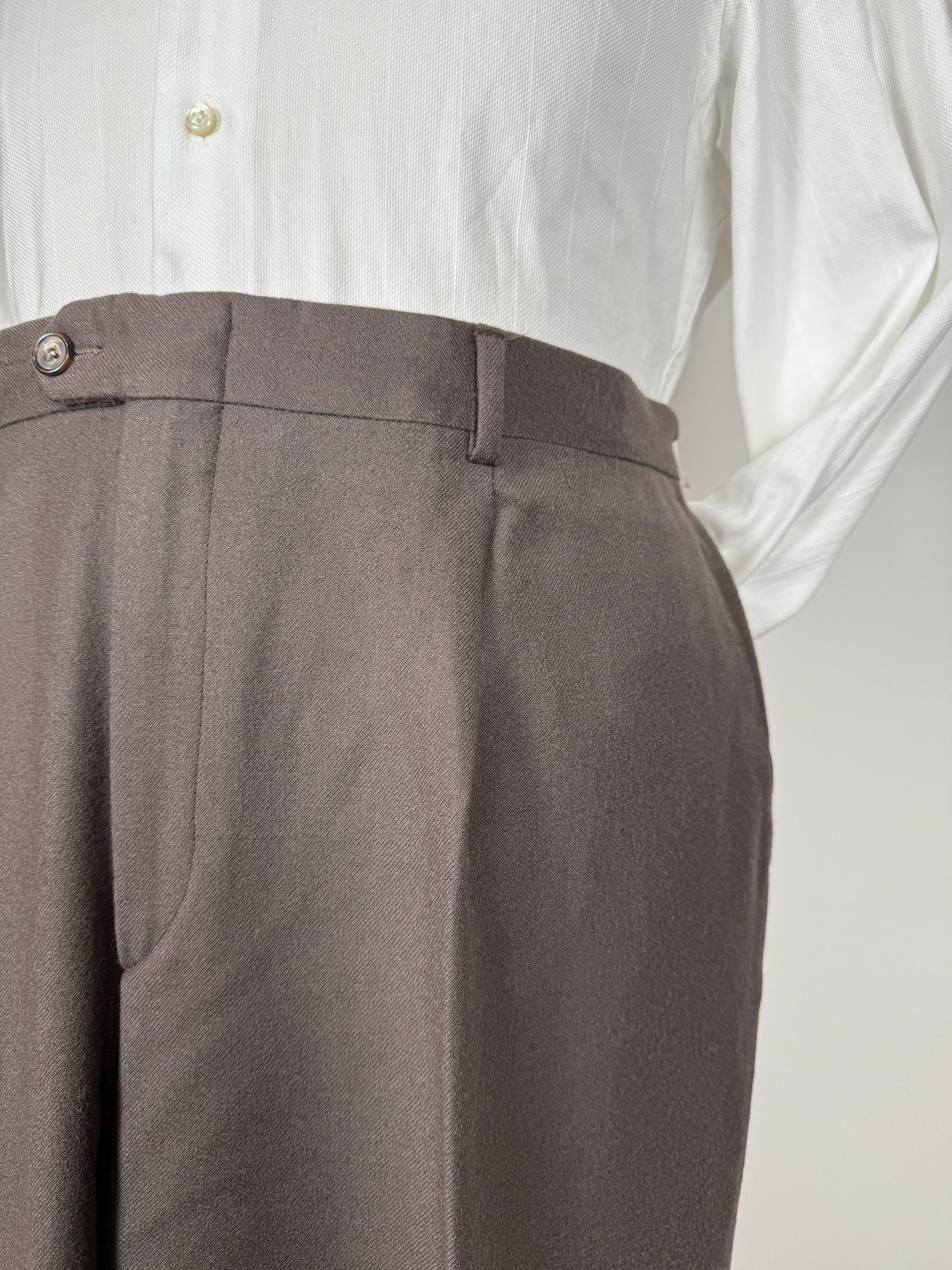 Pantaloni anni ‘80 in flanella 100% lana, colore a metà fra il cachi e il marrone.