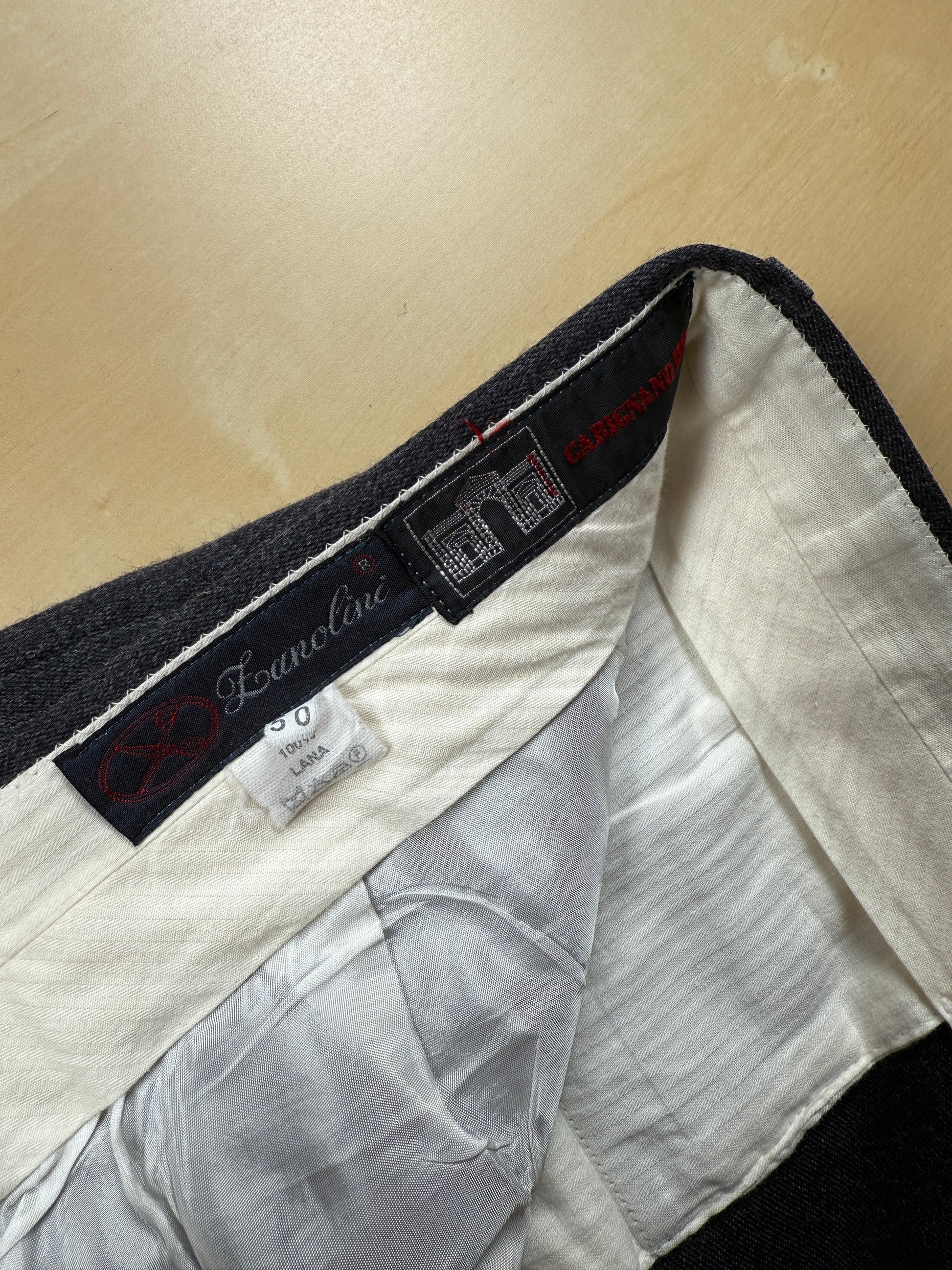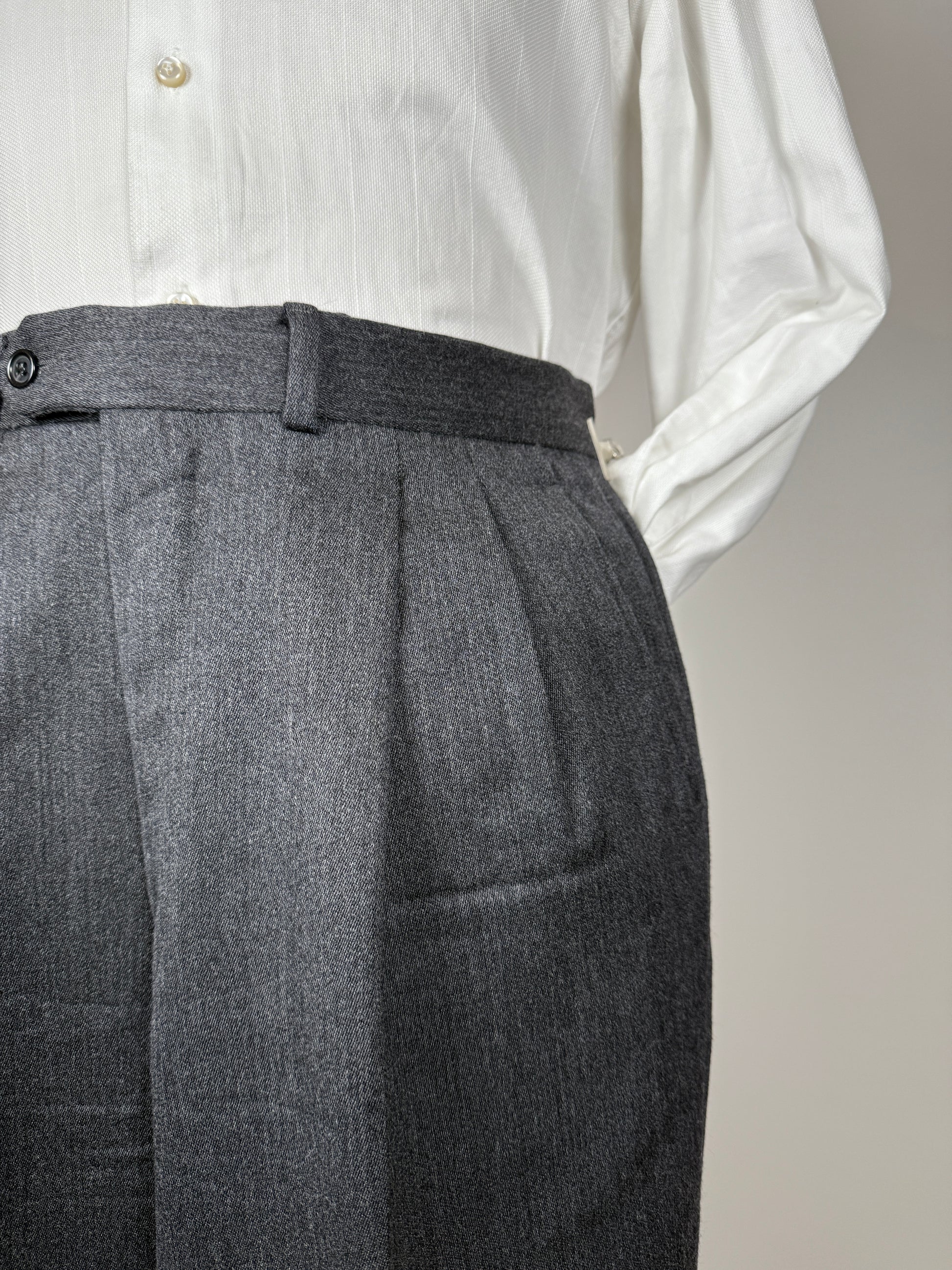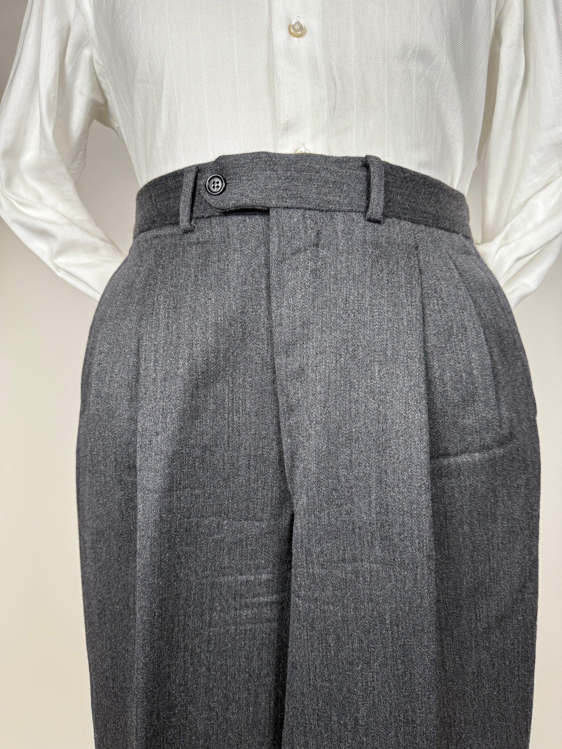 Pantaloni di confezione anni ‘90 in flanella 100% lana colore grigio antracite.