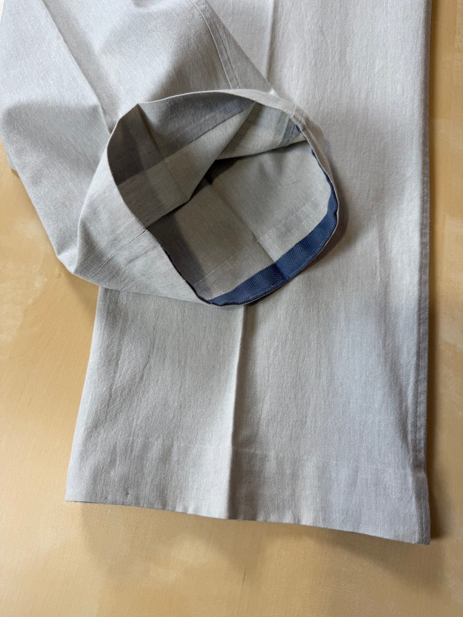 Il tessuto è un leggero e fresco misto cotone e lino, color panna-avorio.