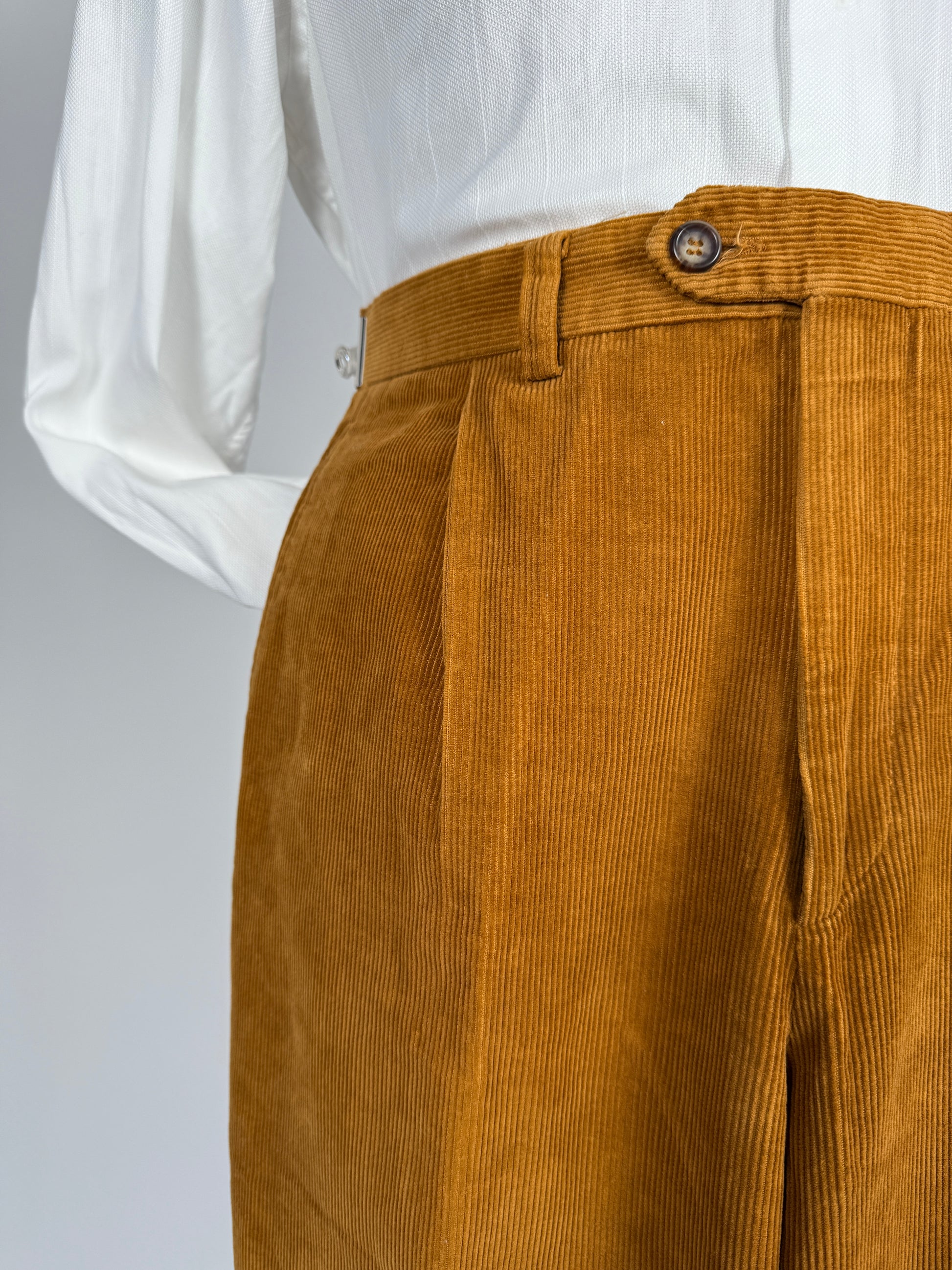 Pantaloni anni ‘90 in velluto a coste millerighe 100% cotone, in un bel color ruggine.