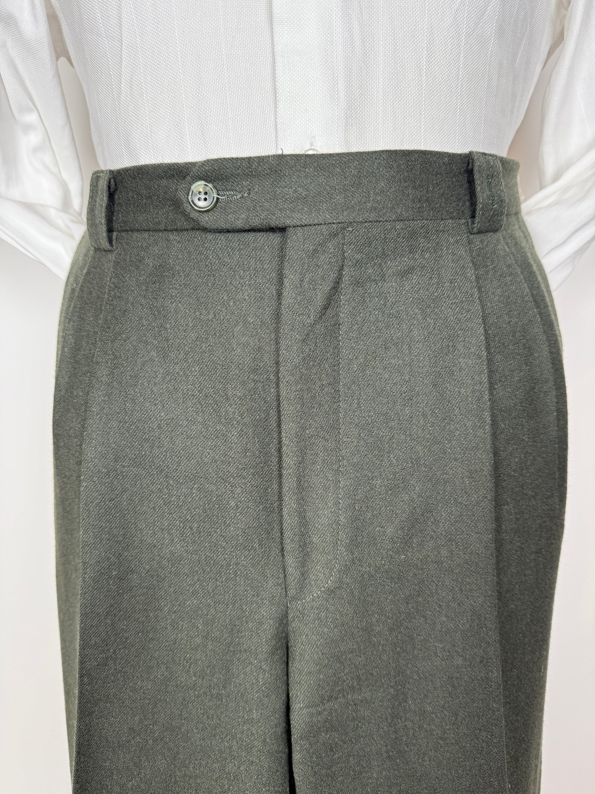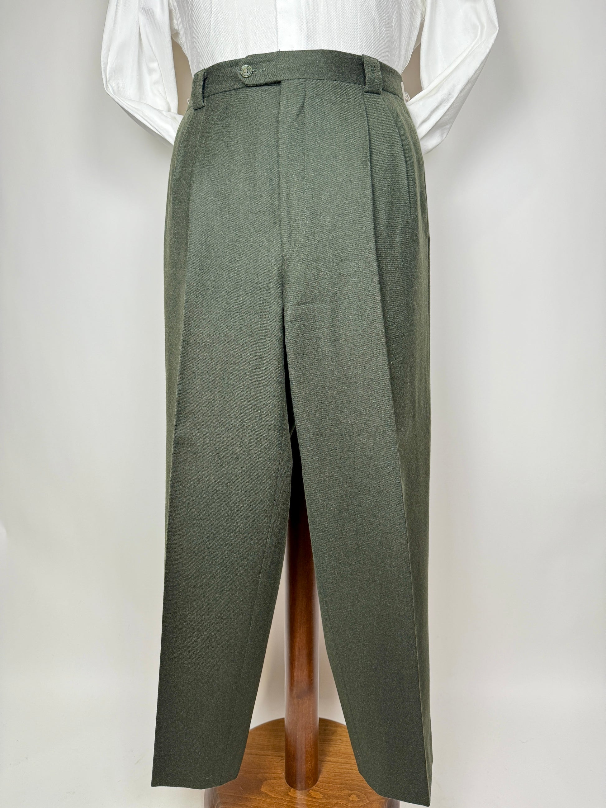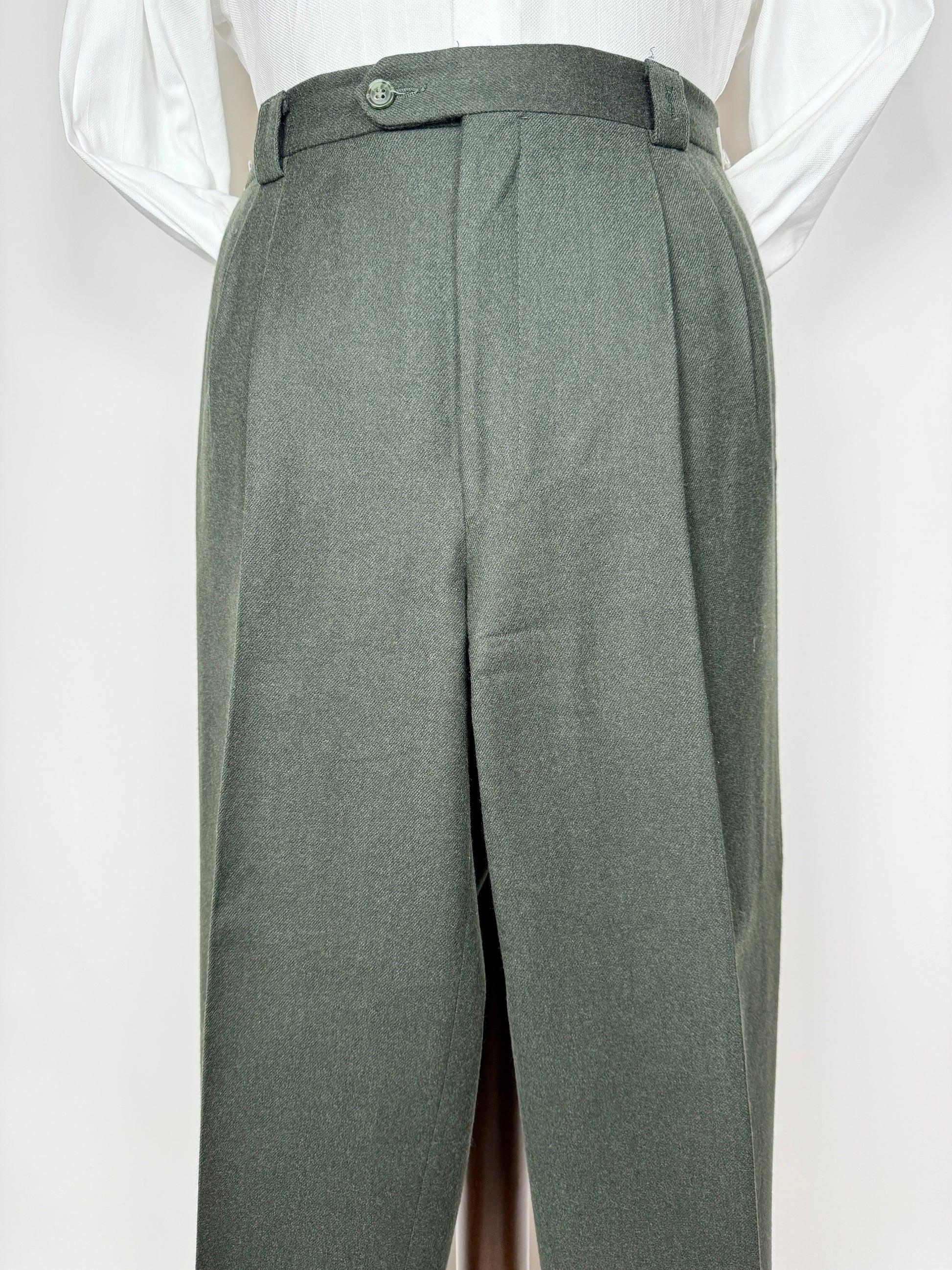 Pantaloni Yves Saint Laurent anni ‘80 in flanella verde scuro - tg. 50