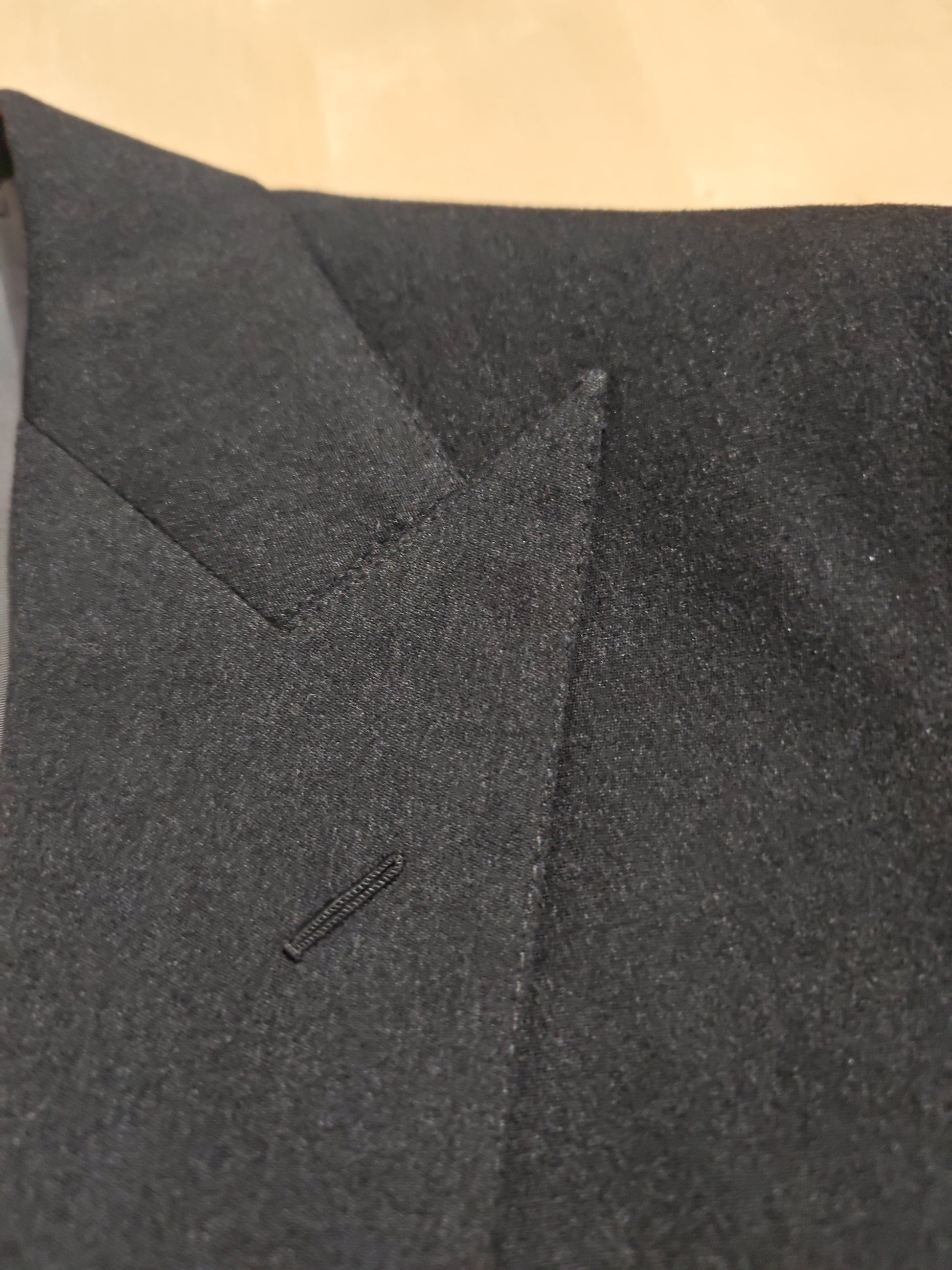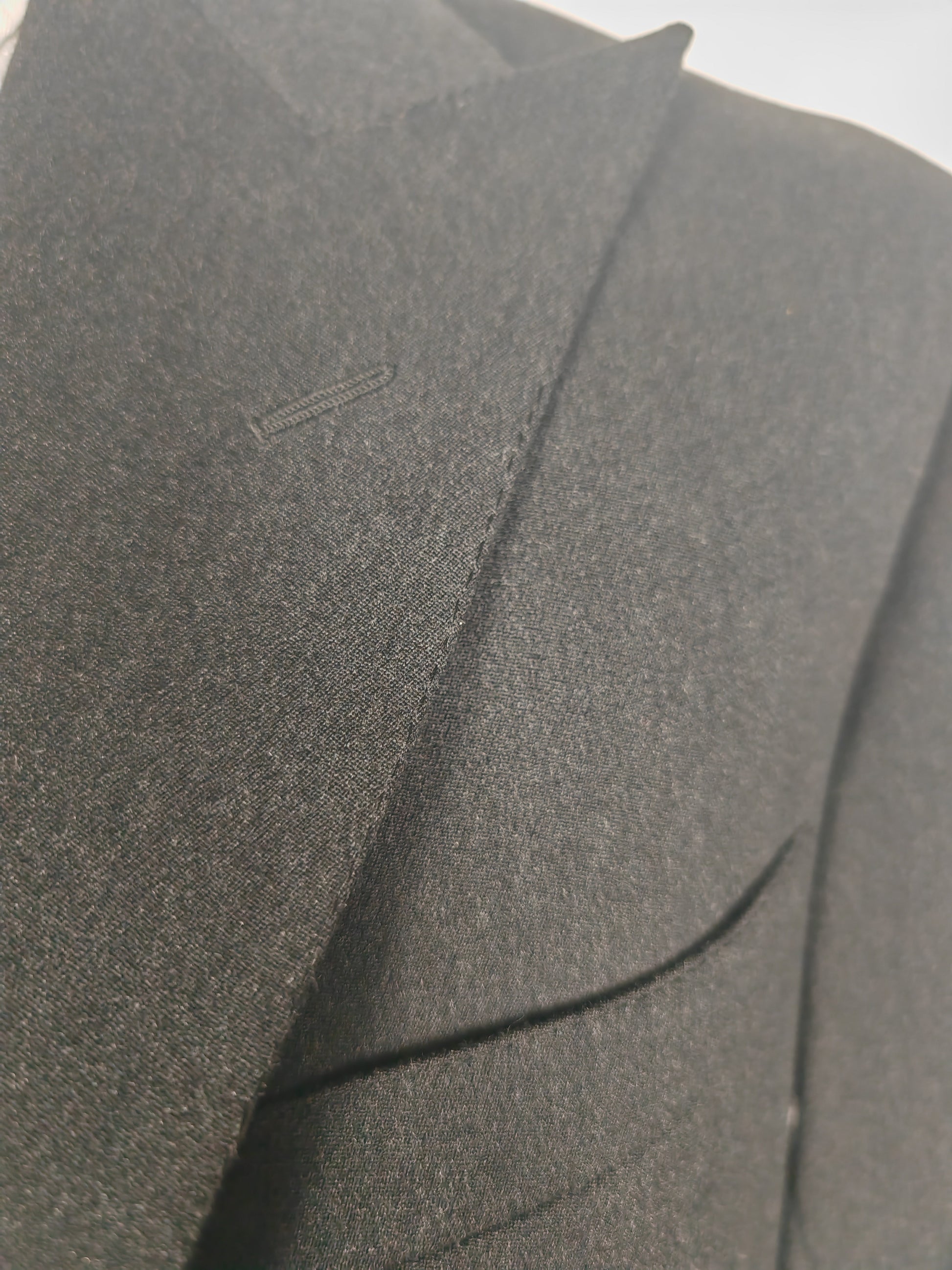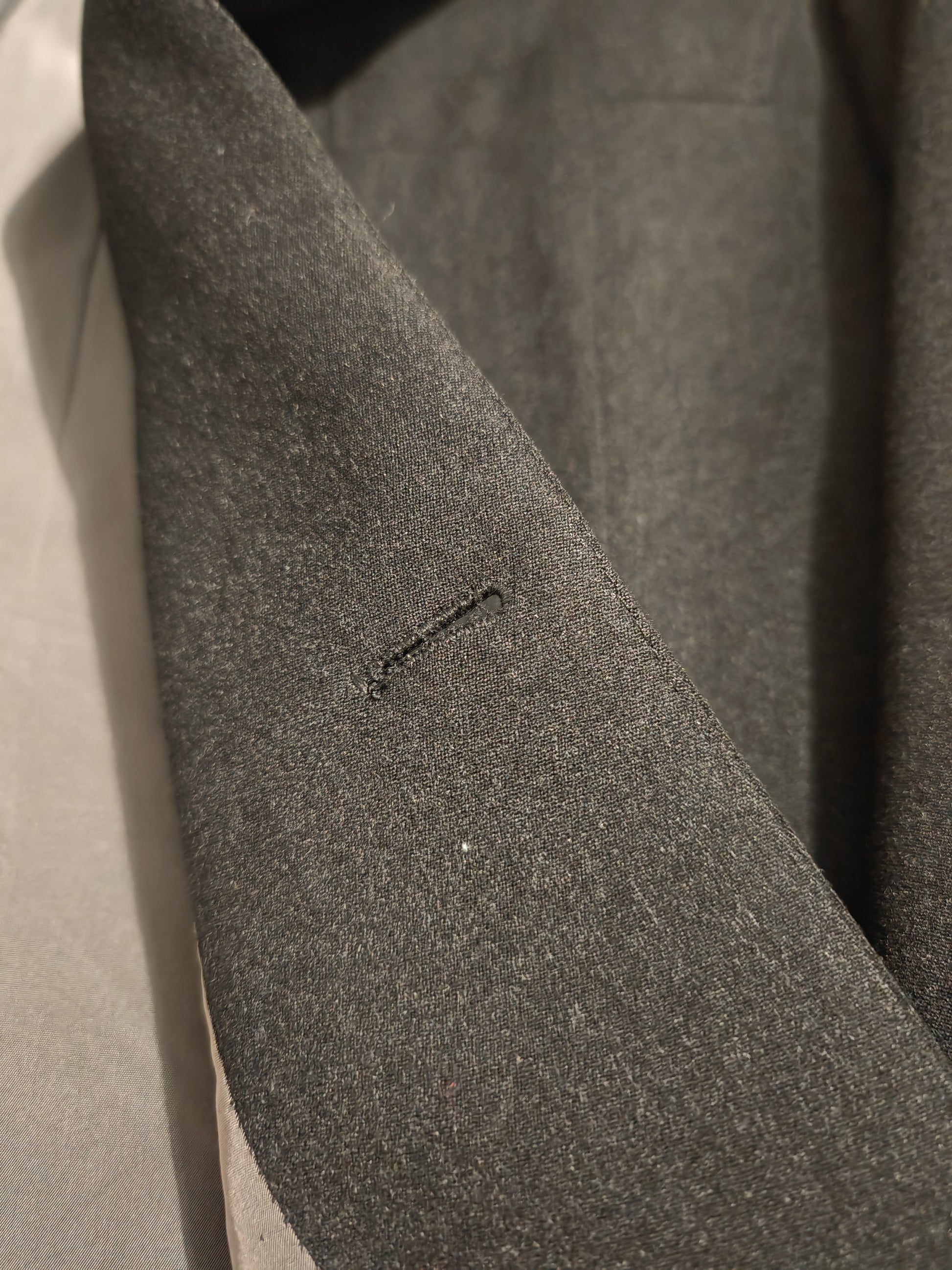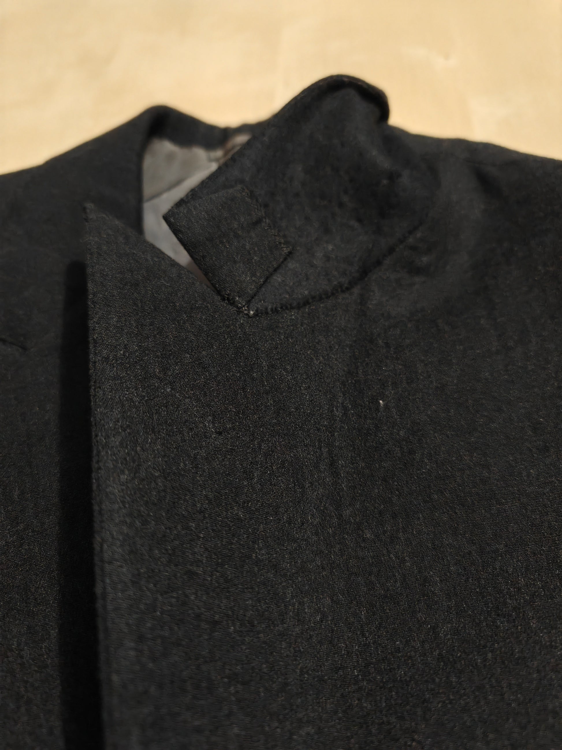 La giacca è completamente intelata a mano, con una struttura interna della tela anch'essa molto pesante e rigida, secondo la consuetudine dell'epoca. Asole realizzate a mano.