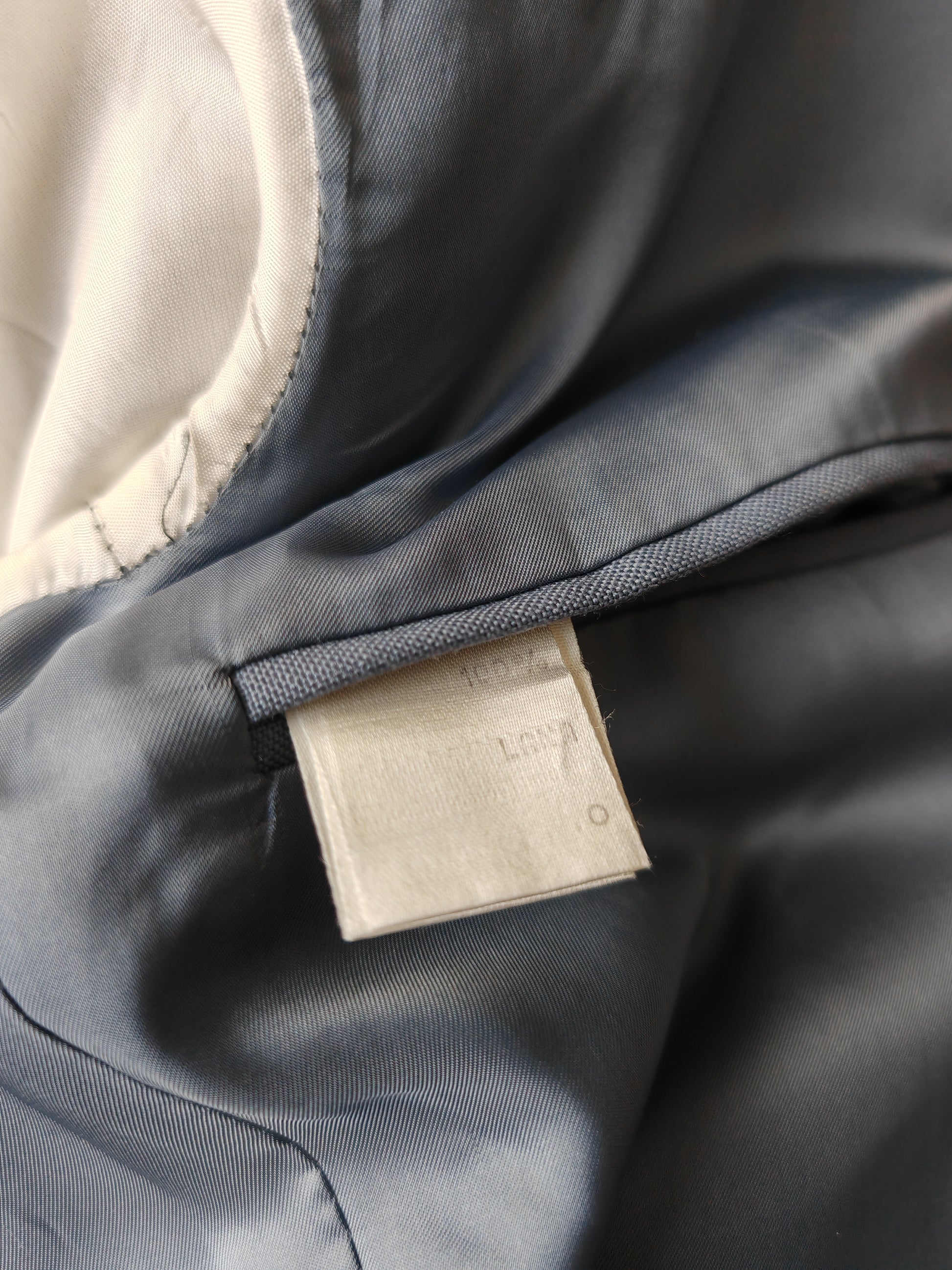Giacca dal taglio tipico a 2 bottoni, tasche a filetto e senza spacchi.