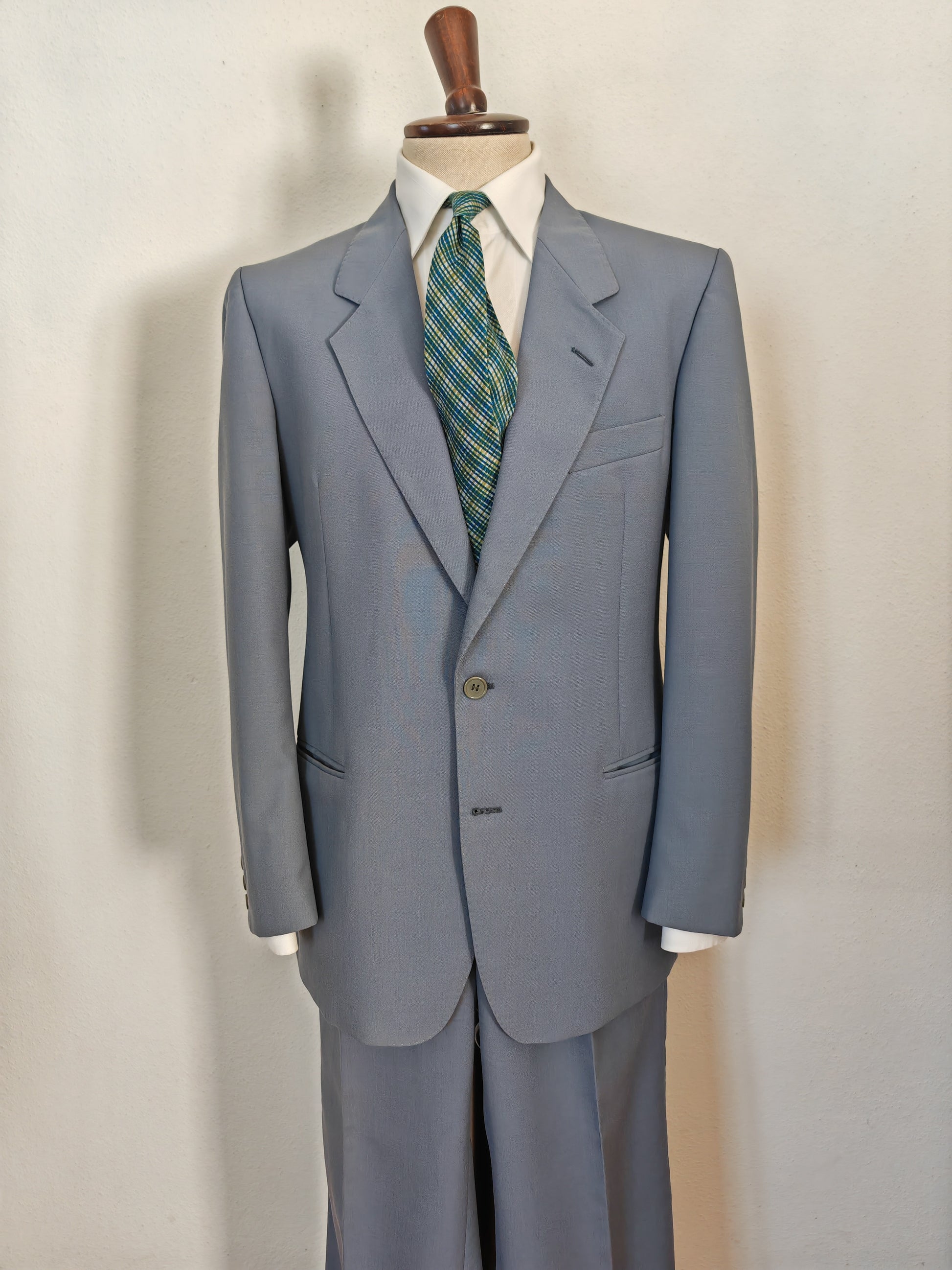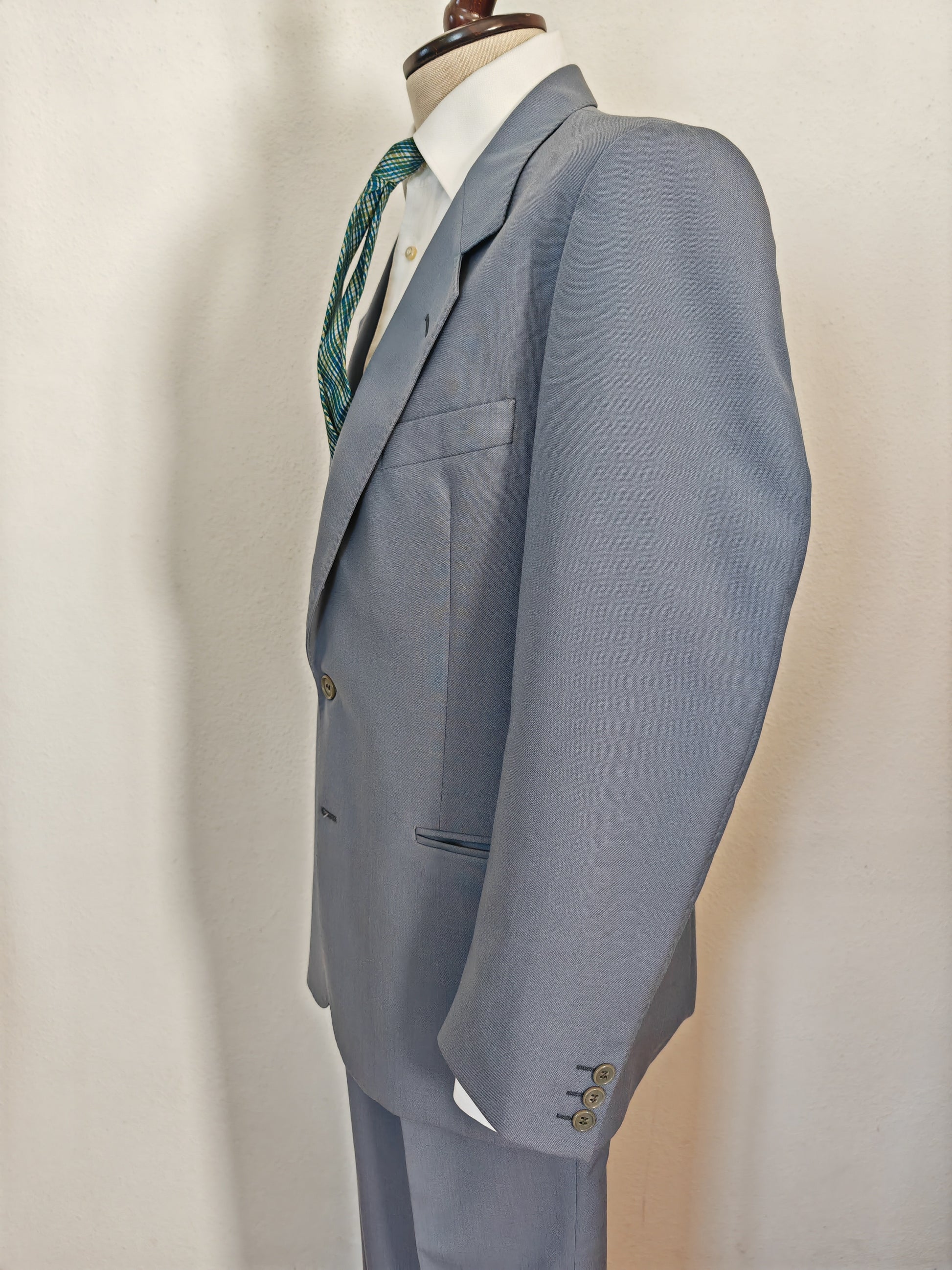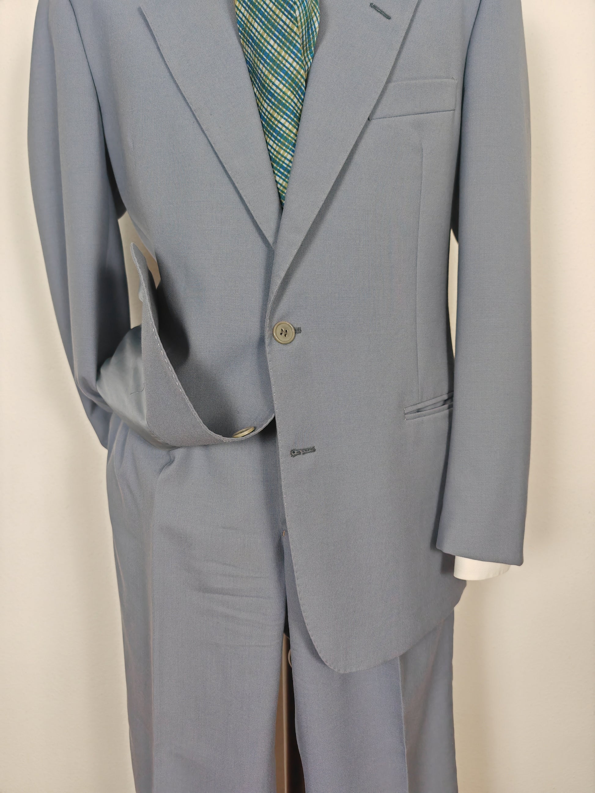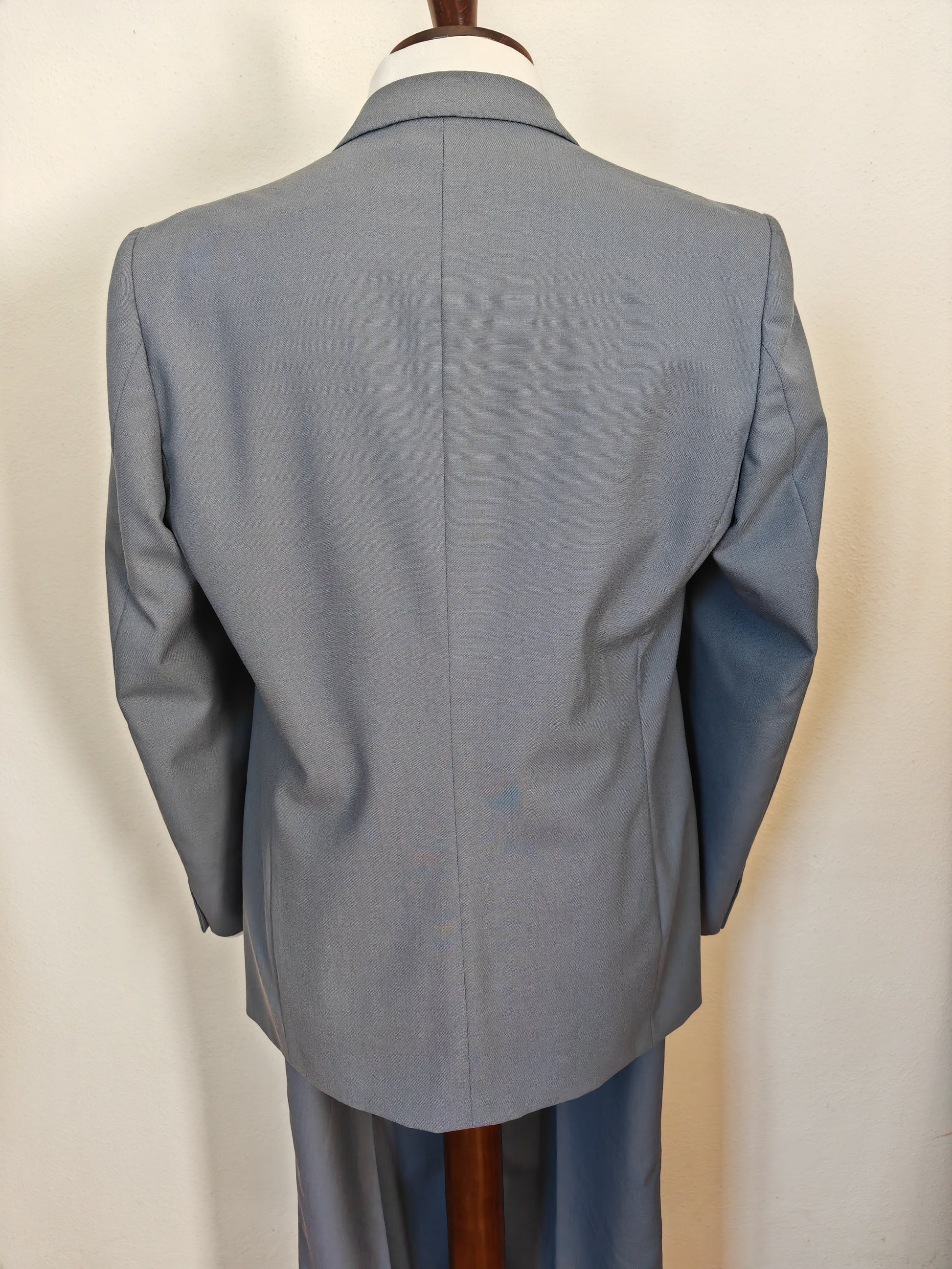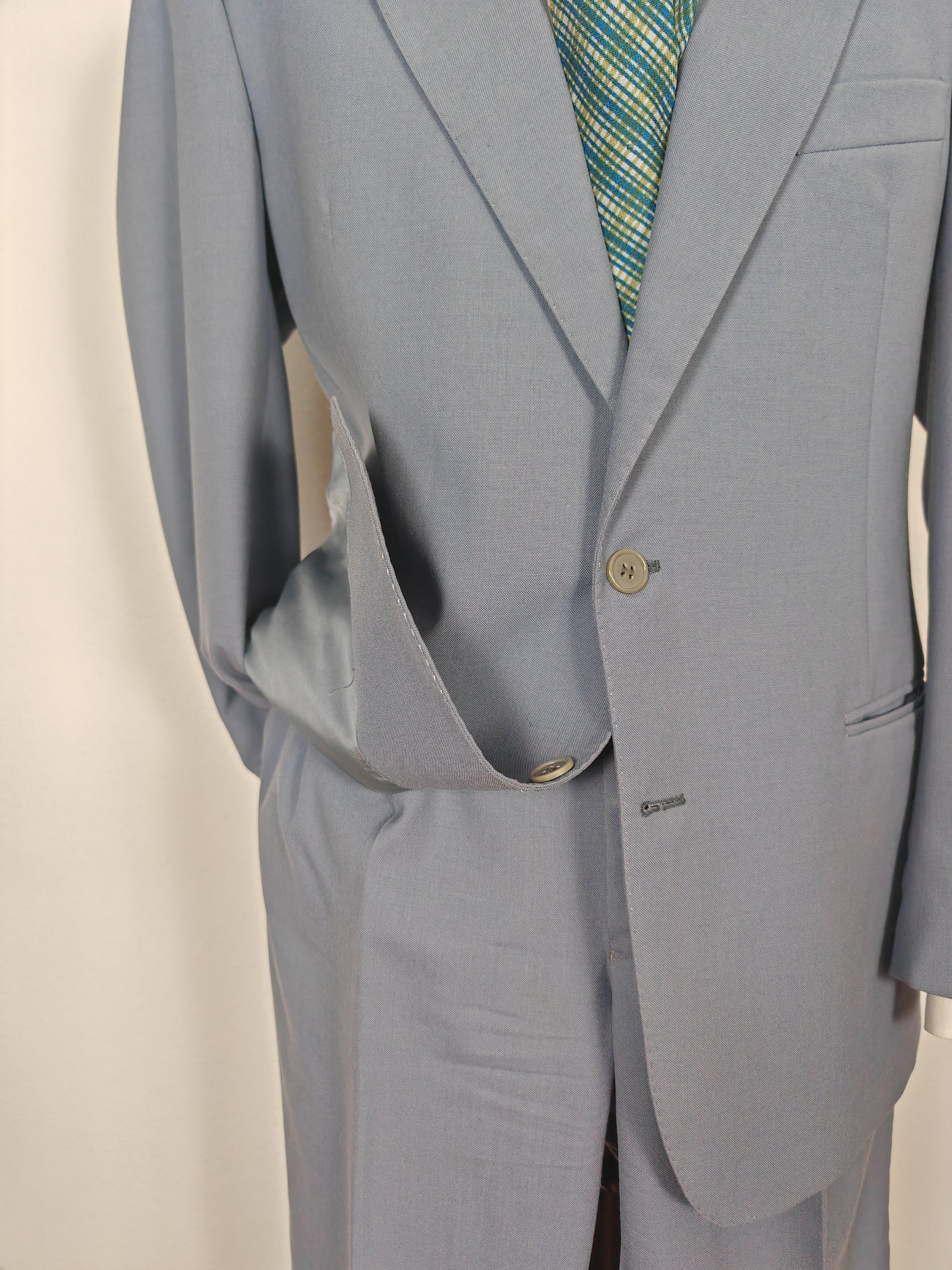 Completo anni '70 in tela di lana azzurro carta da zucchero - tg. 50