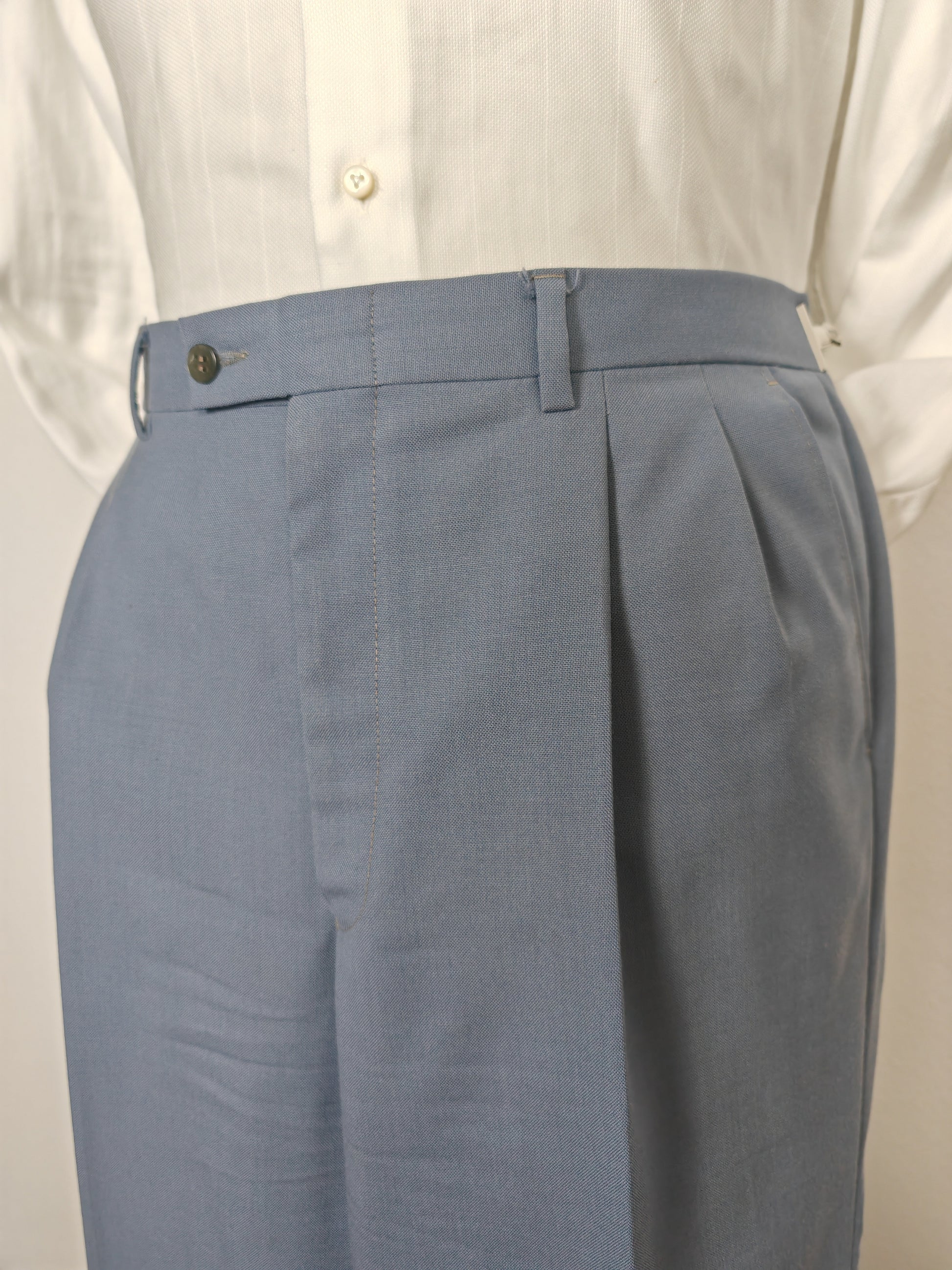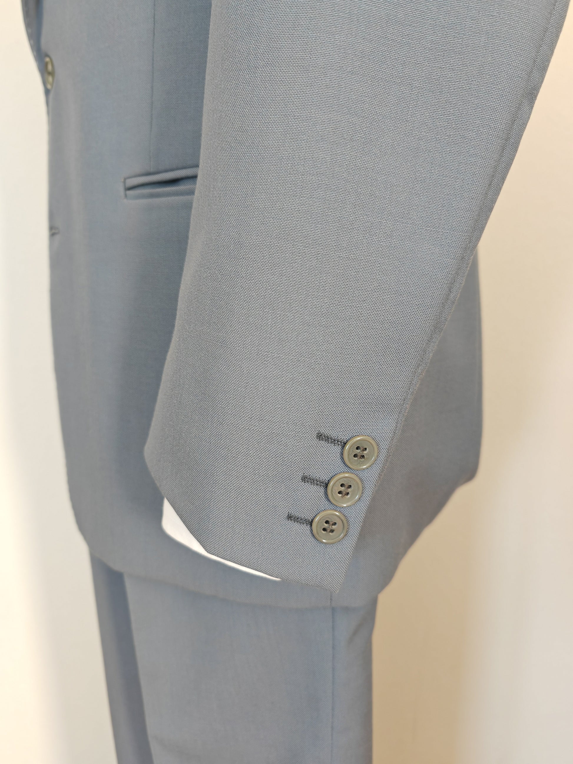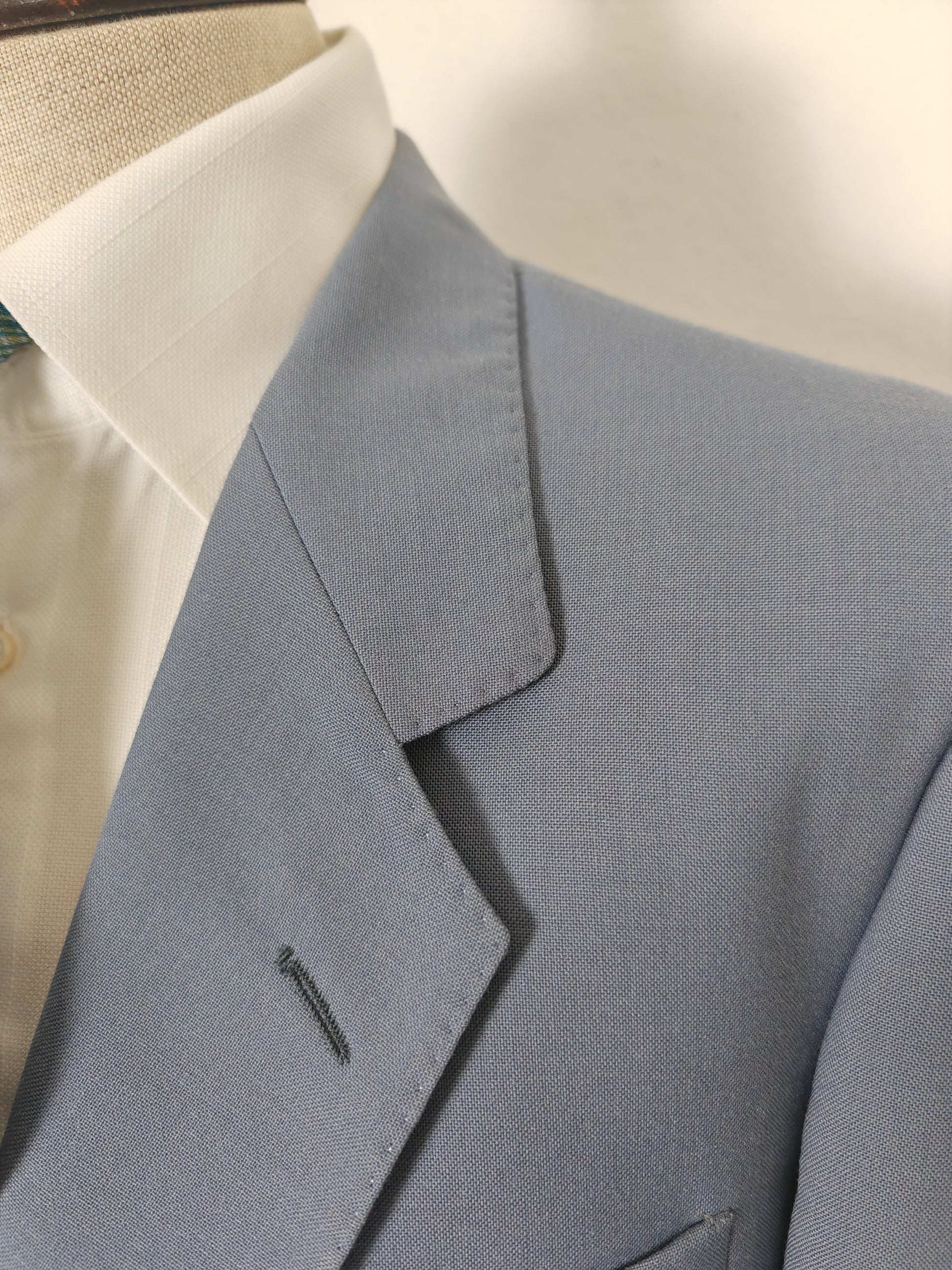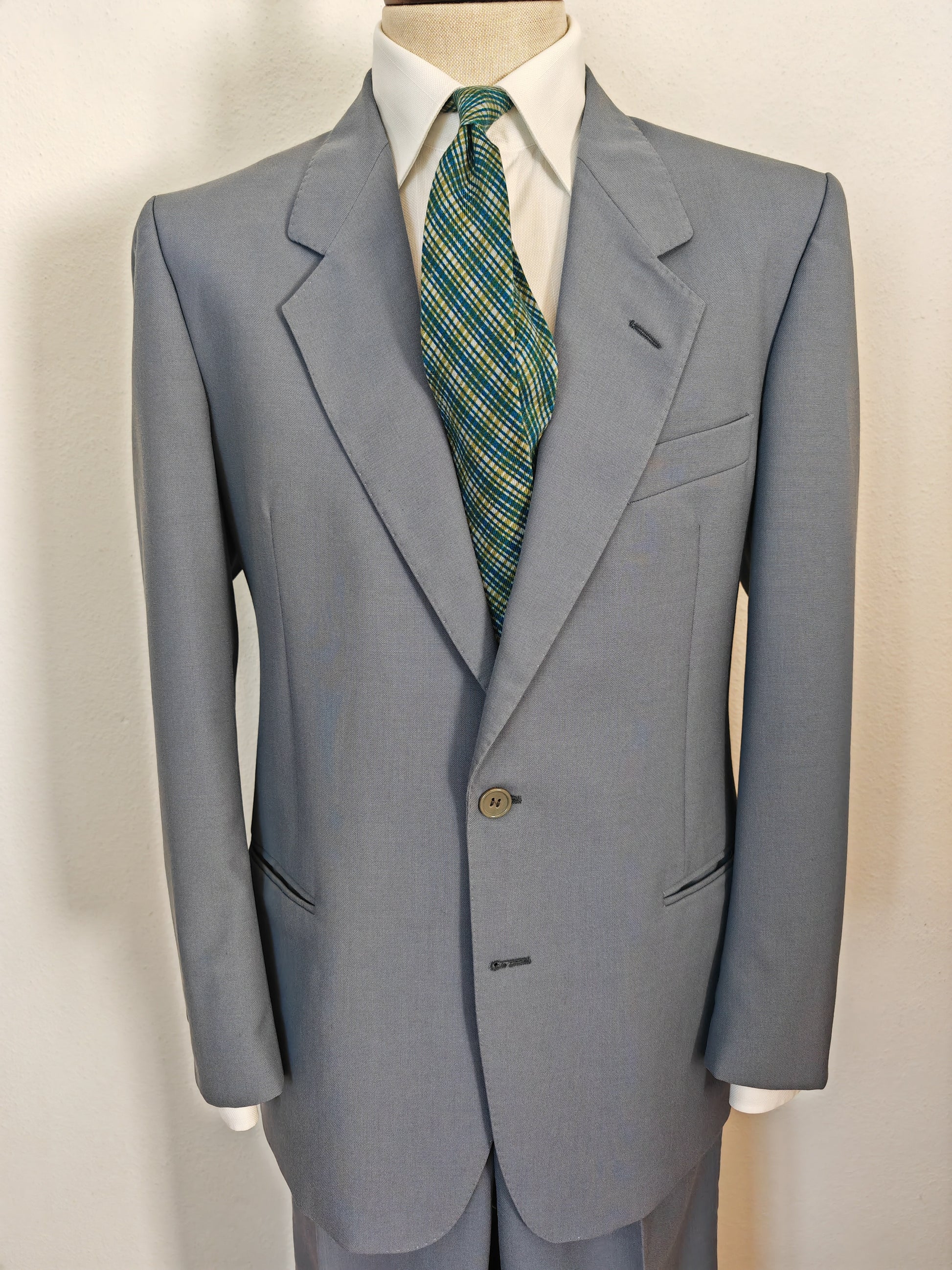 Completo anni '70 in tela di lana azzurro carta da zucchero - tg. 50