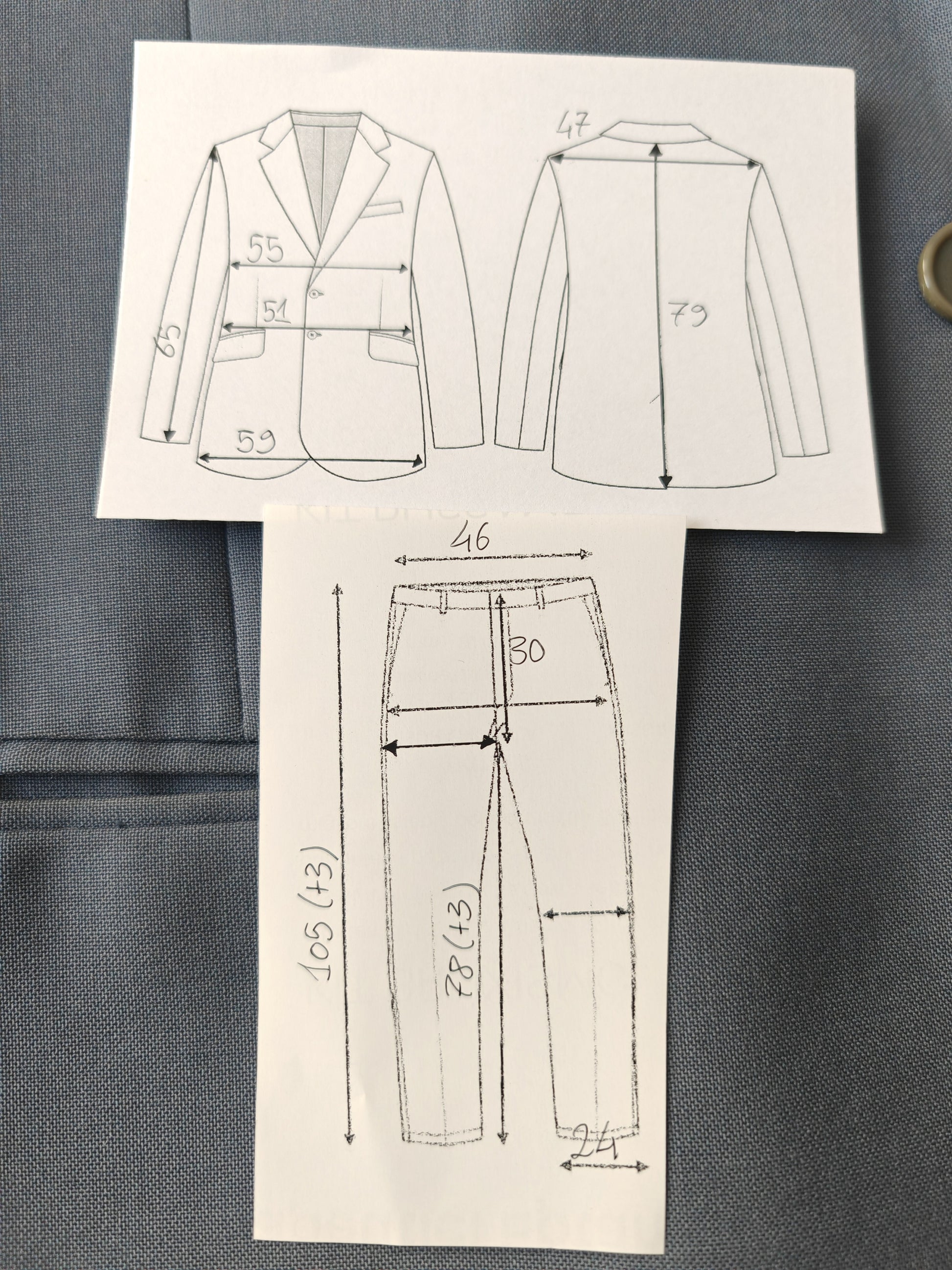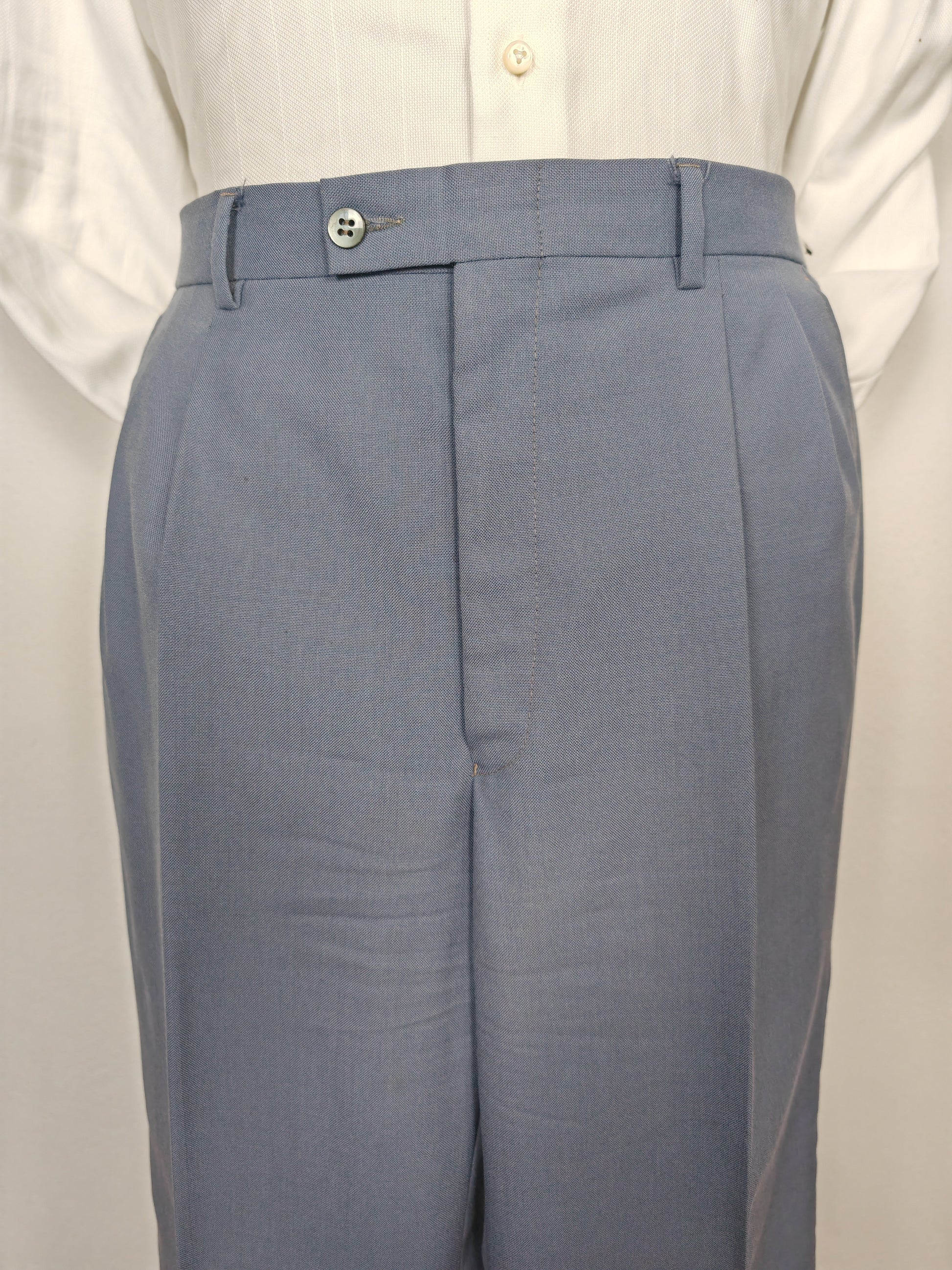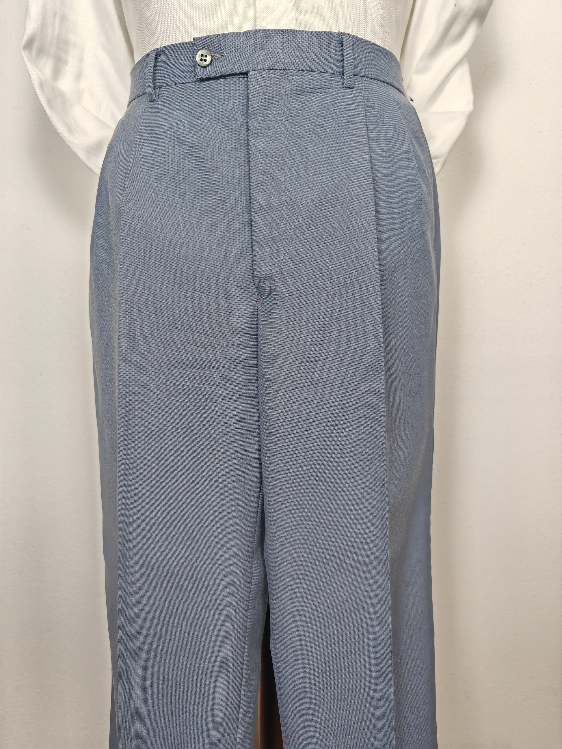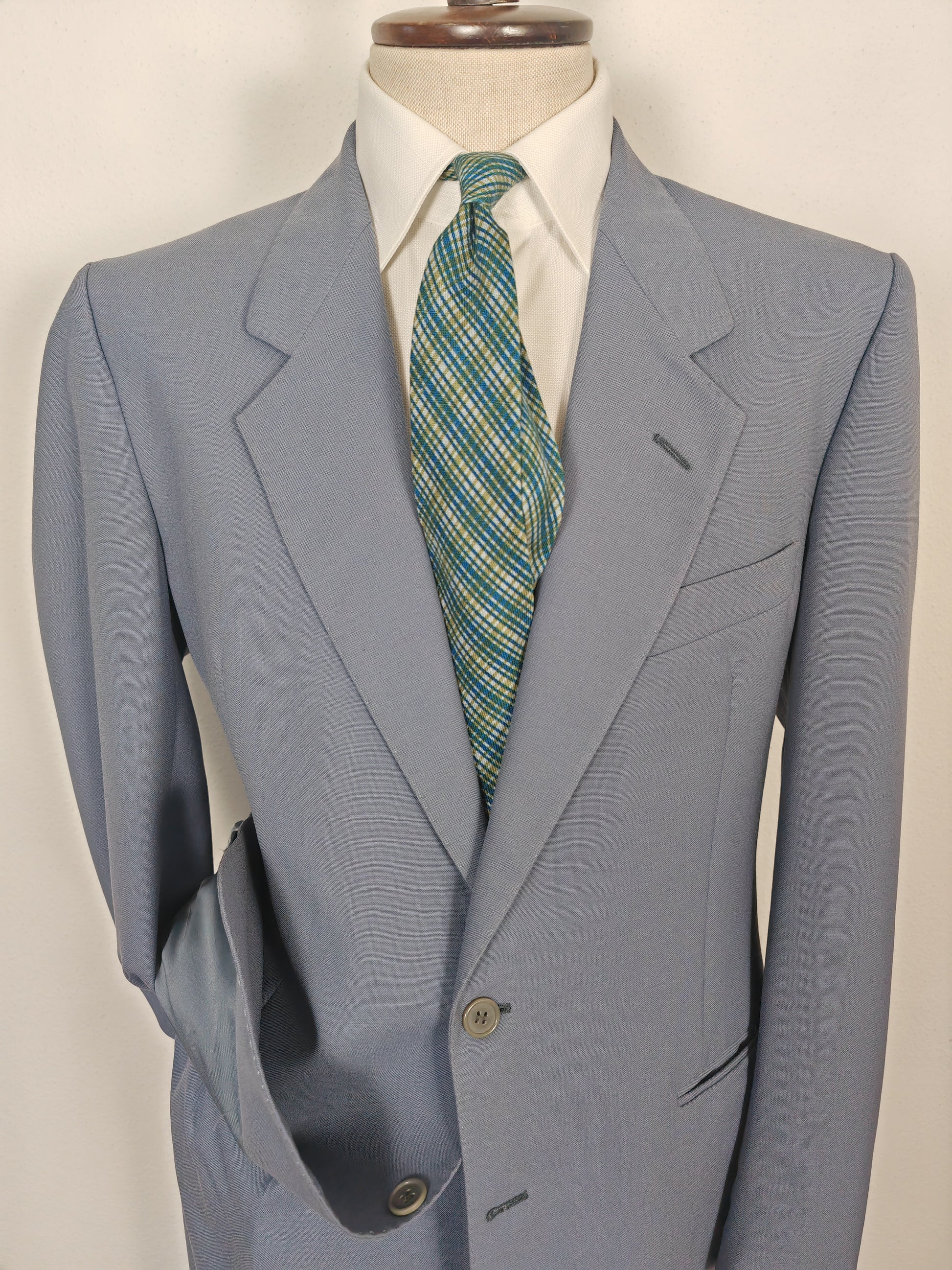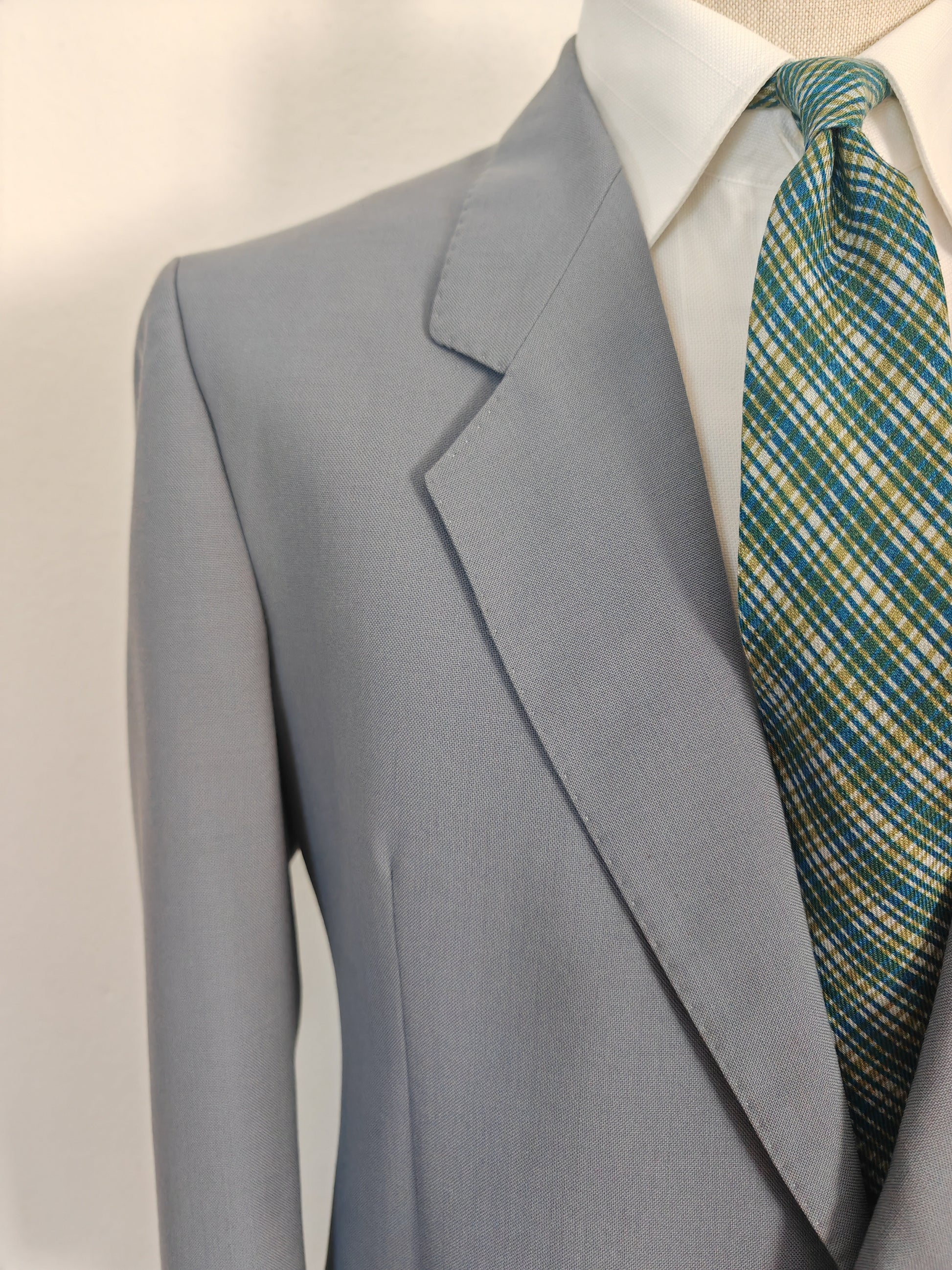 Completo anni '70 in tela di lana azzurro carta da zucchero - tg. 50