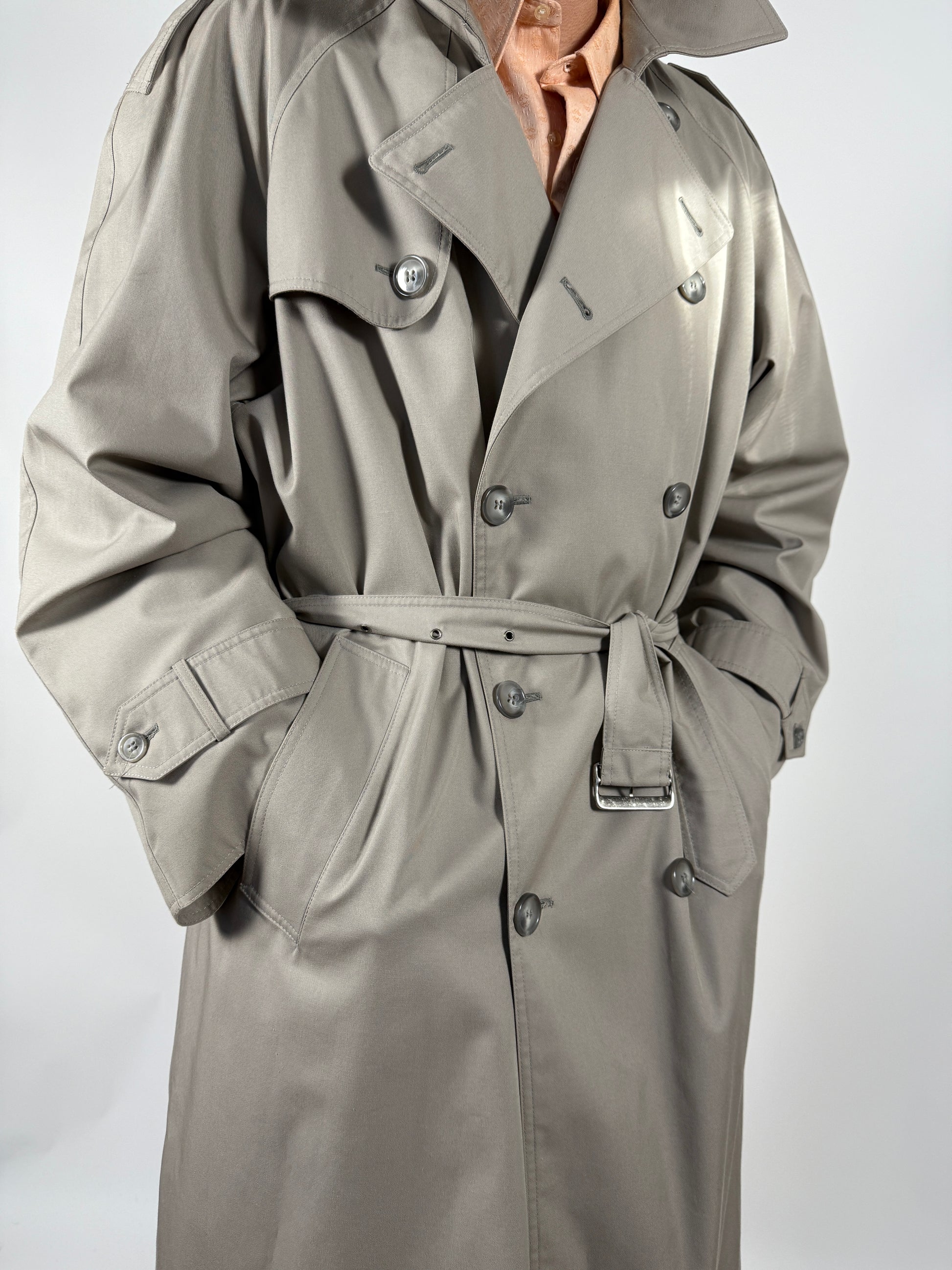 Trench impermeabile doppiopetto anni ‘80 Salco, in colore cachi/ecru.