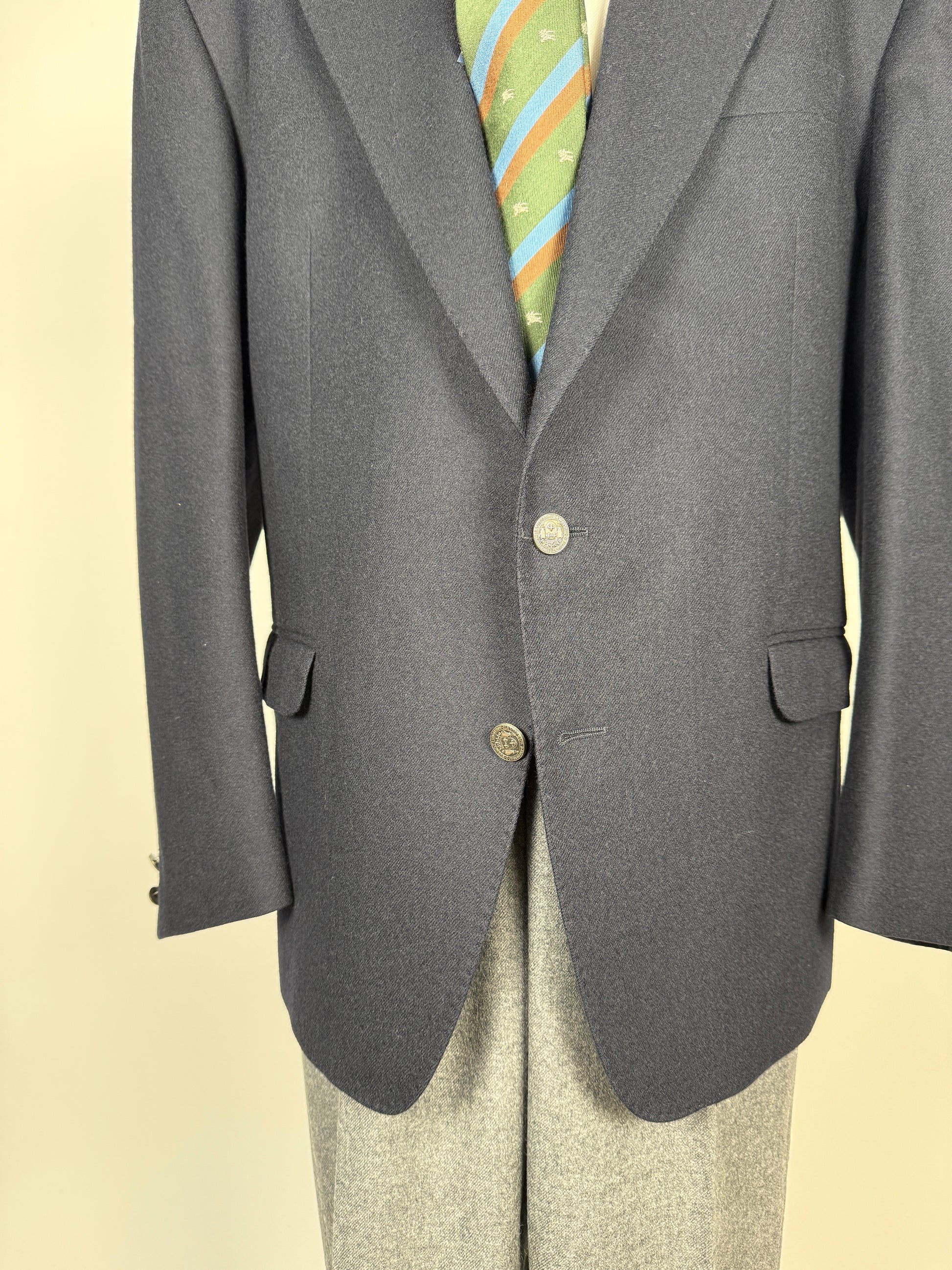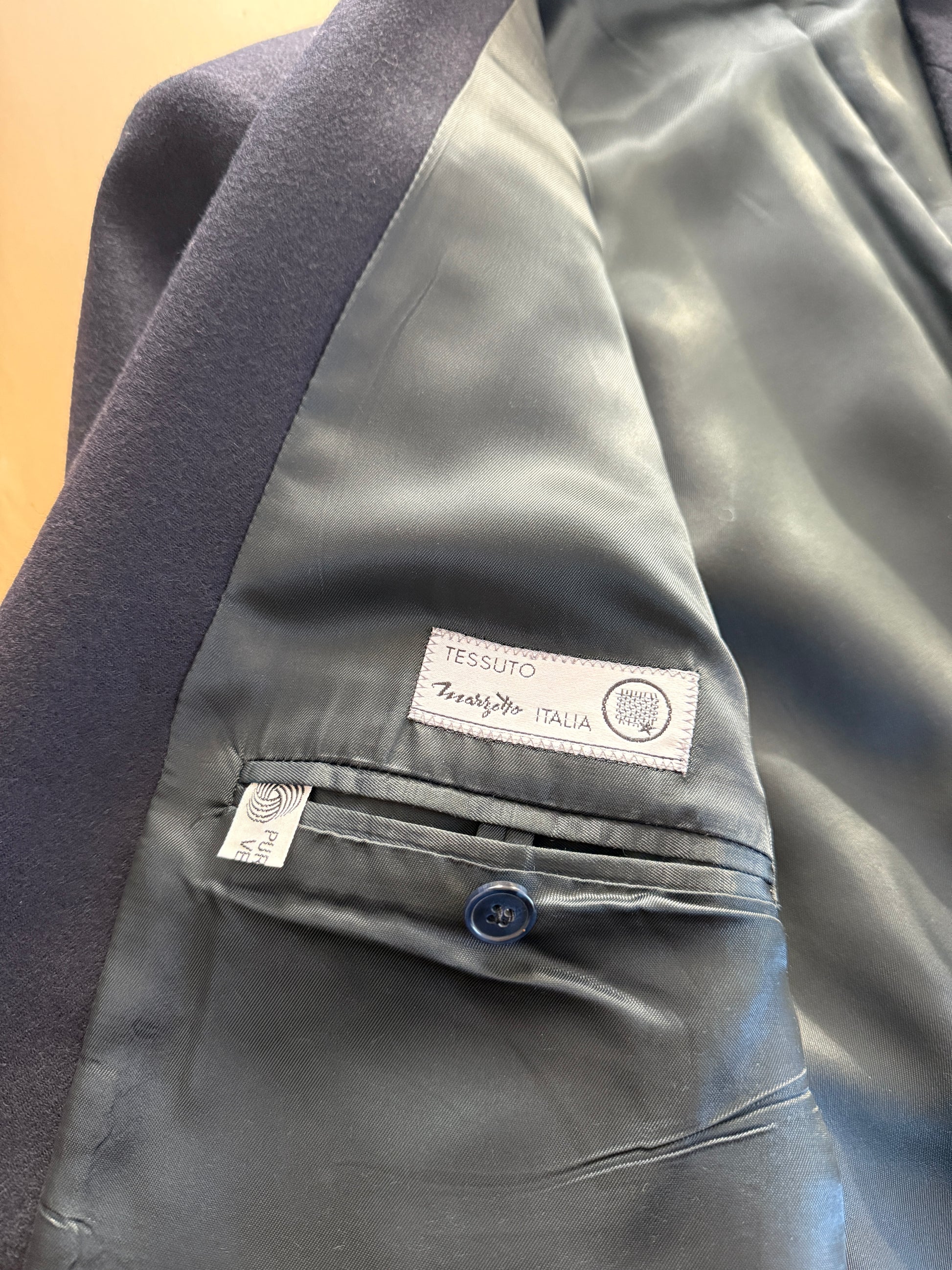 Giacca blazer anni ‘70/‘80, tessuto di Marzotto in flanella 100% lana colore blu notte.
