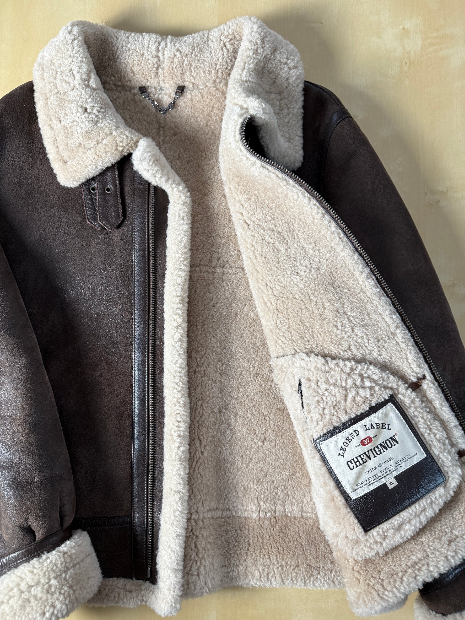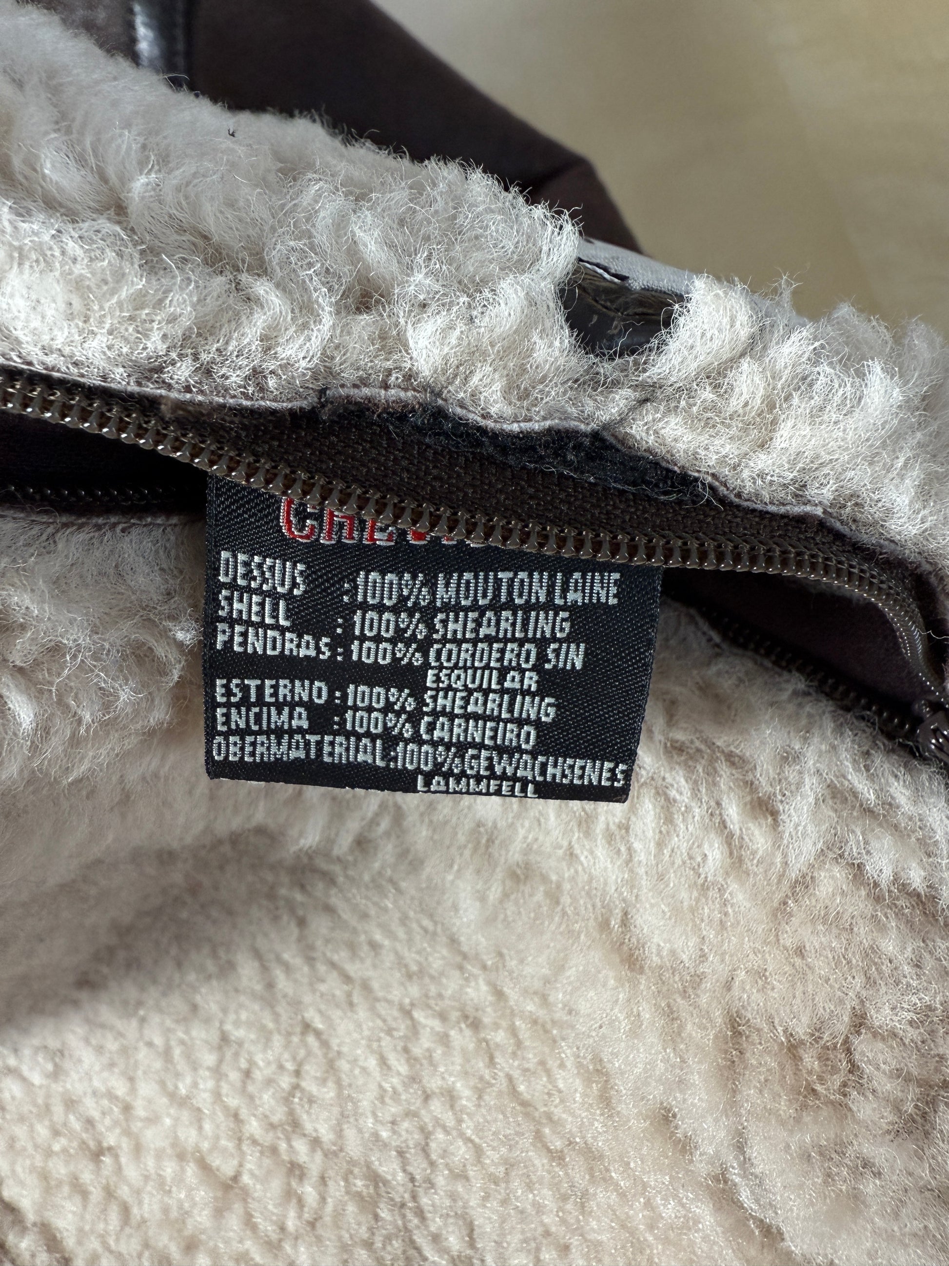 Moderno giubbotto aviatore di Chevignon in 100% shearling originale: vera pelle di montone, con la sua lana naturale all’interno.