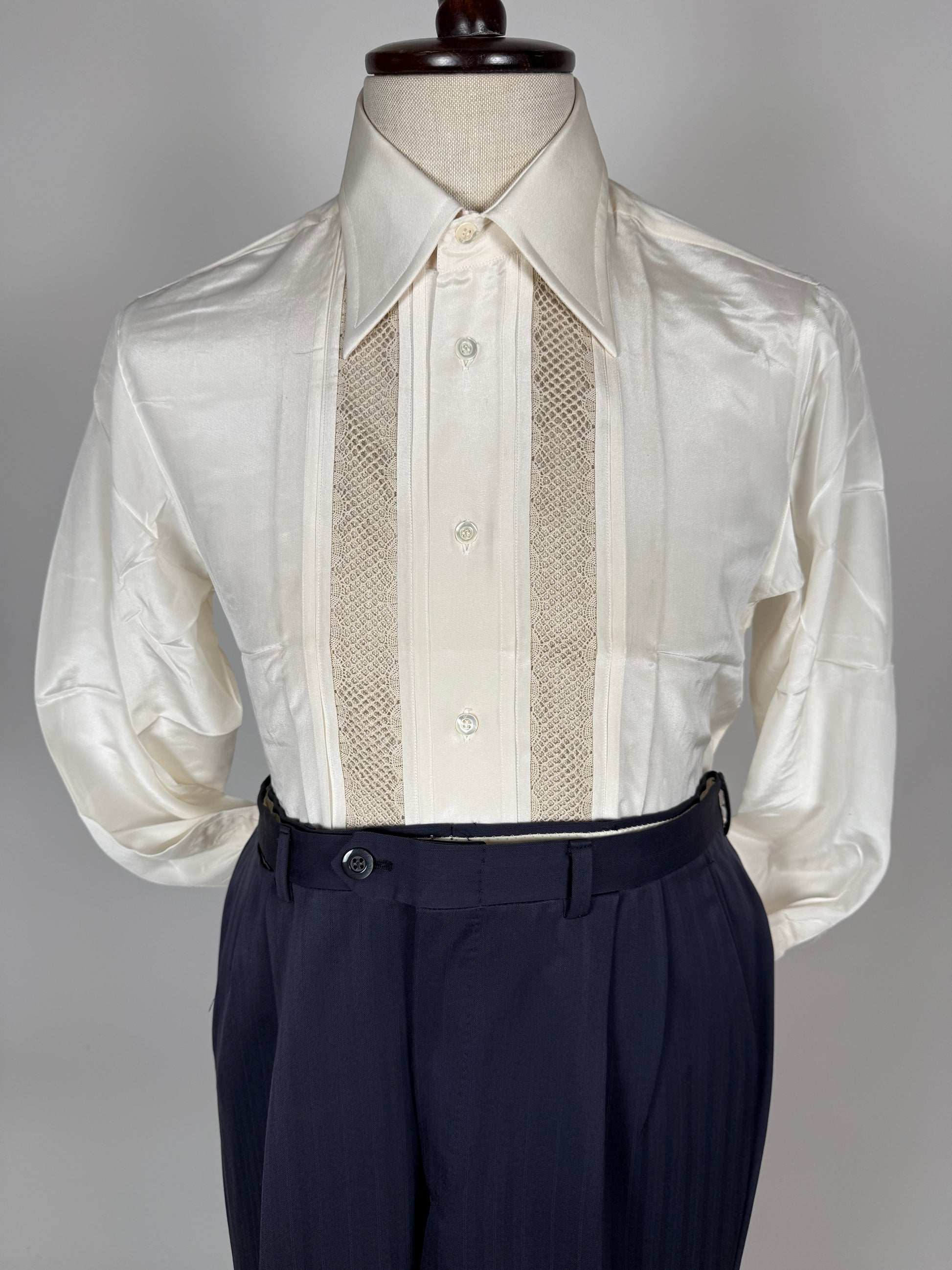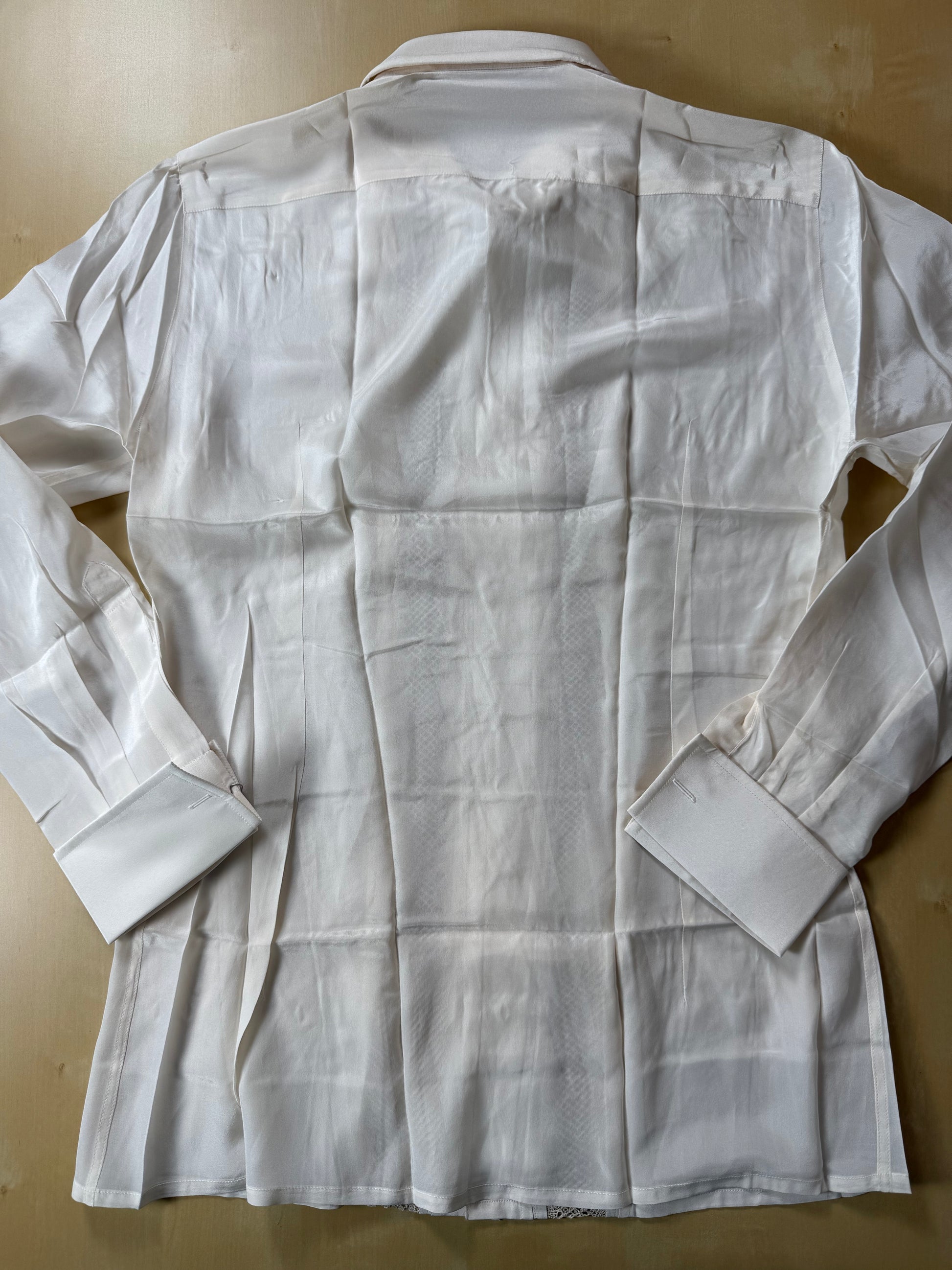 Camicia anni ‘70 in pura seta con ricamo (NOS) - M, collo 41