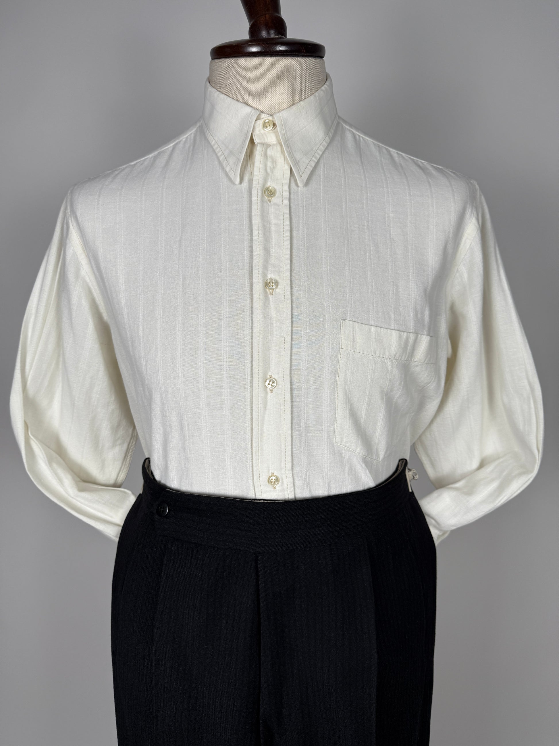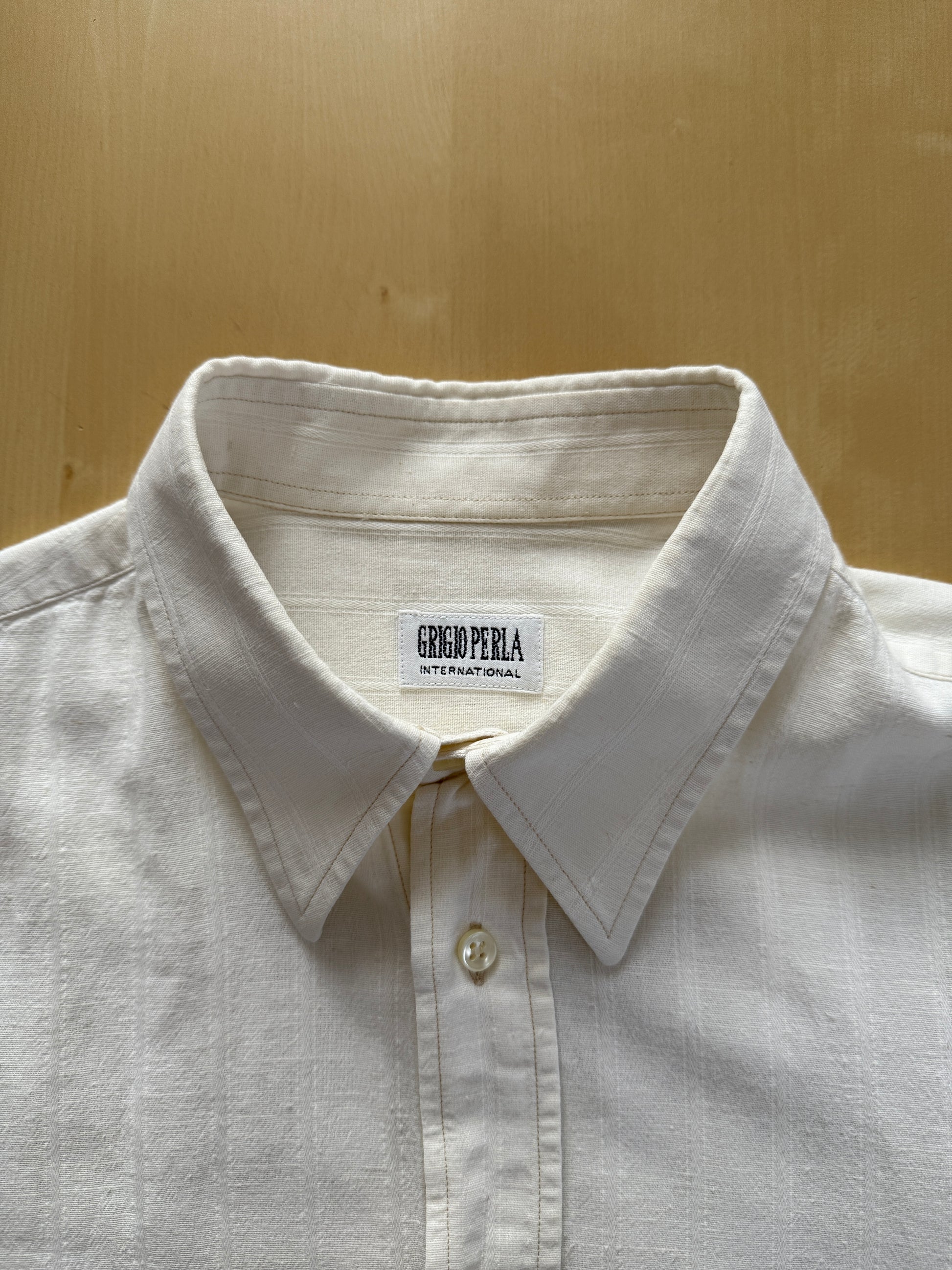 Camicia anni ‘80 Grigioperla (linea maschile de La Perla) di sapore spiccatamente vintage, con un bel collo italiano dalla vaga reminiscenza spearpoint collar.