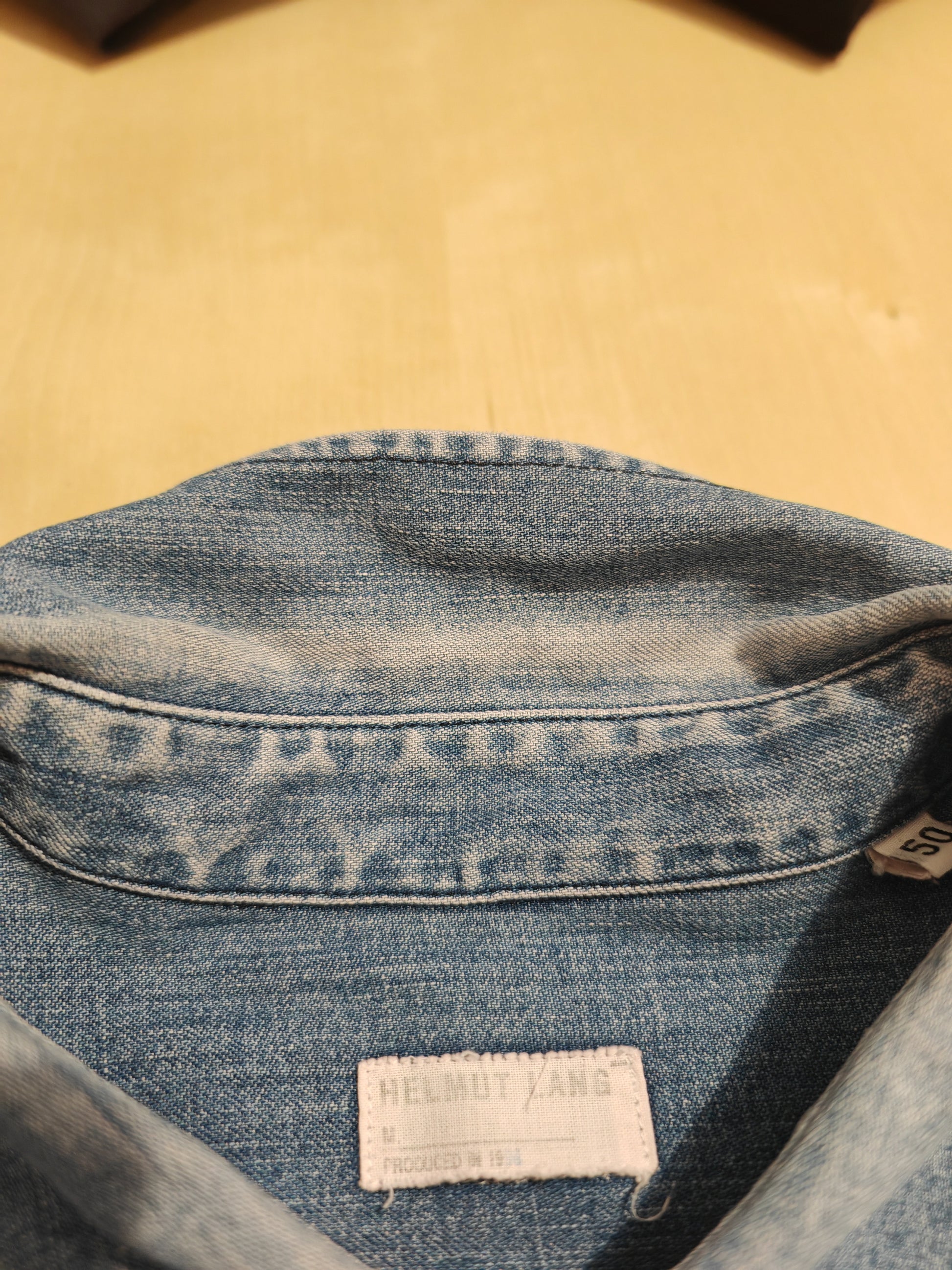 La camicia si presenta in ottime condizioni, con un piacevole fading del denim che ne aumenta la bellezza. Leggera usura in corrispondenza della piega del colletto, per cui vedere le foto: su un capo come questo non lo considererei neppure un difetto.