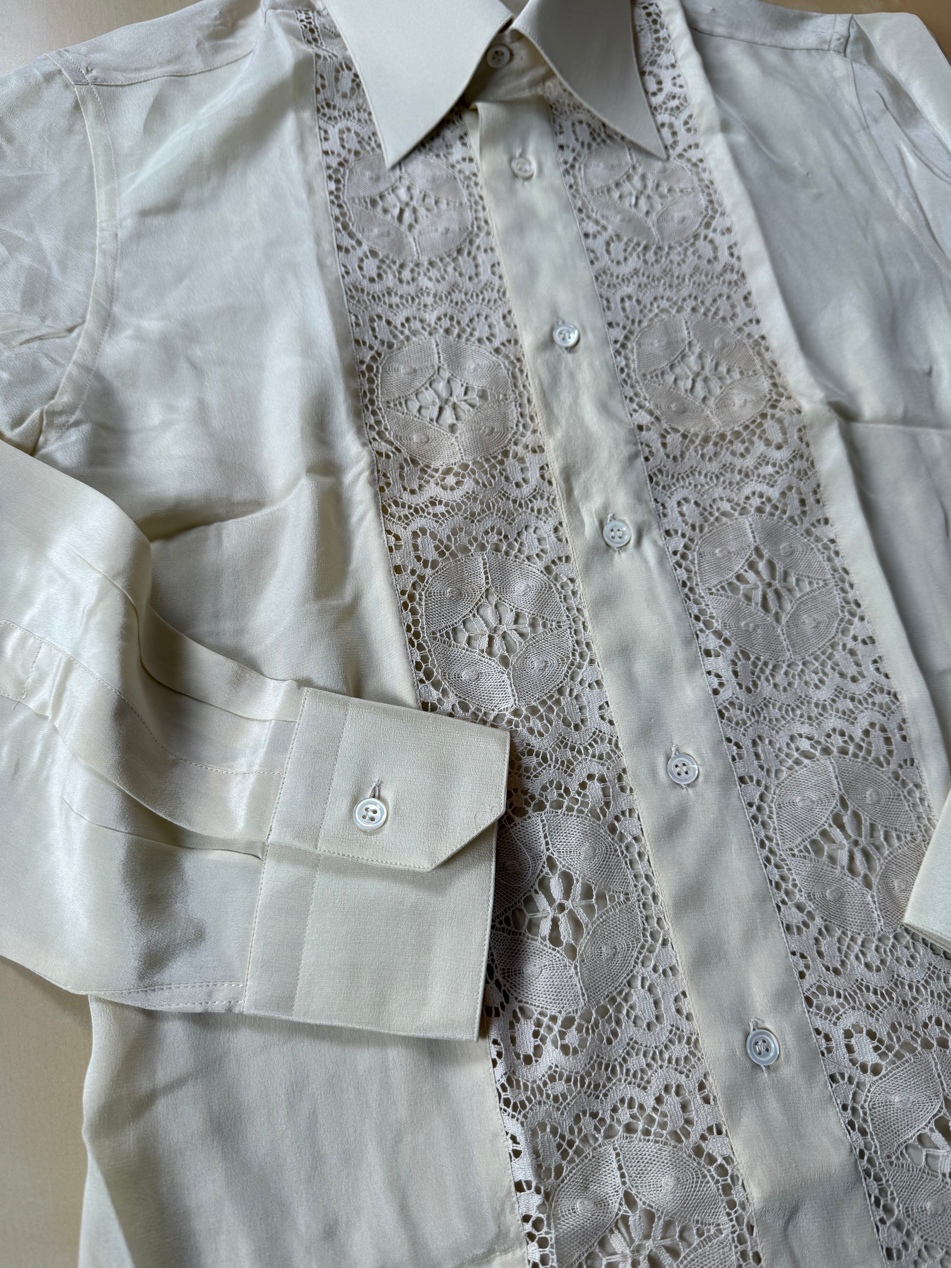 Camicia Pancaldi anni ‘70 pura seta ricamata (NOS) - S, collo 39