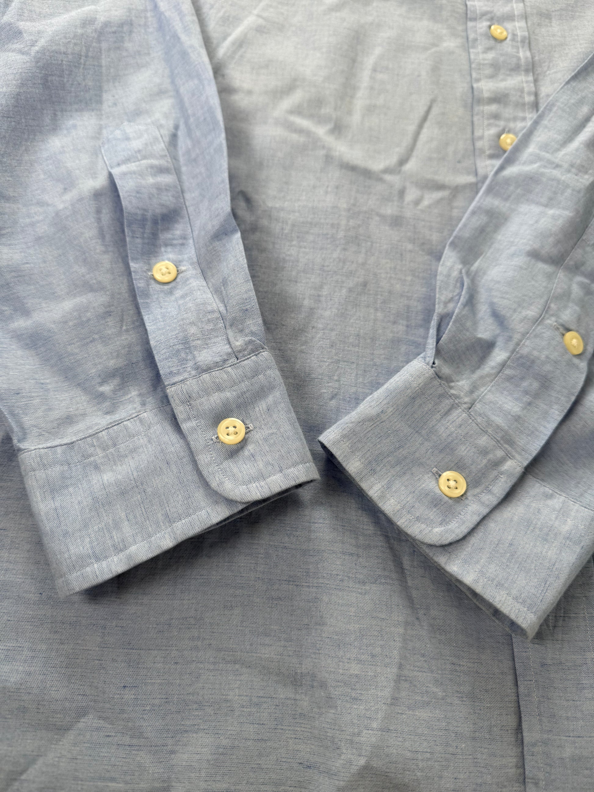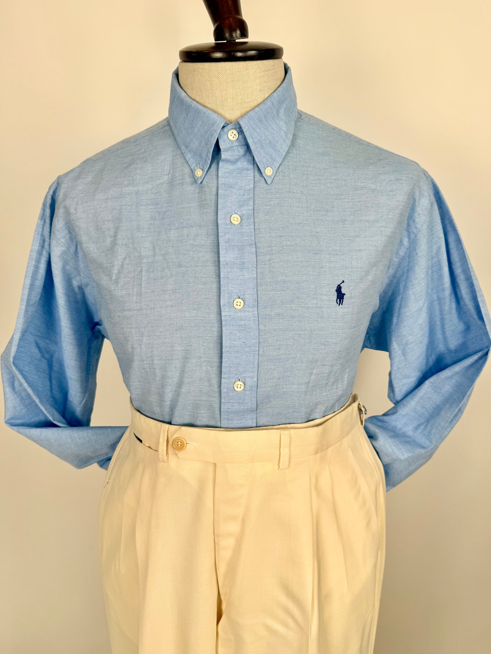 Taglio con tipico colletto button-down americano, polsini classici, e riprese cucite sulla schiena che donano un fit un po’ più asciutto rispetto alla classica camicia Ralph Lauren.
