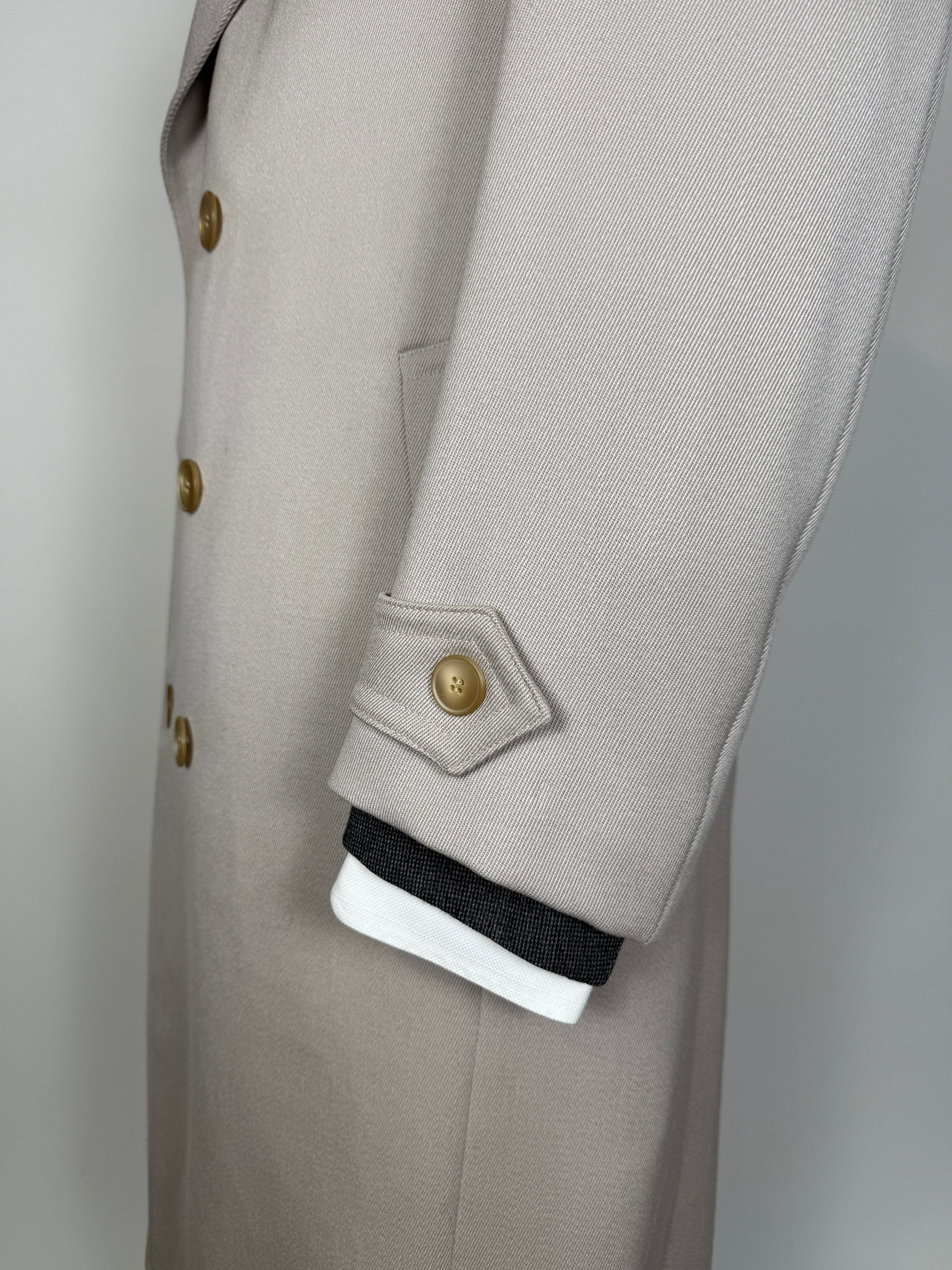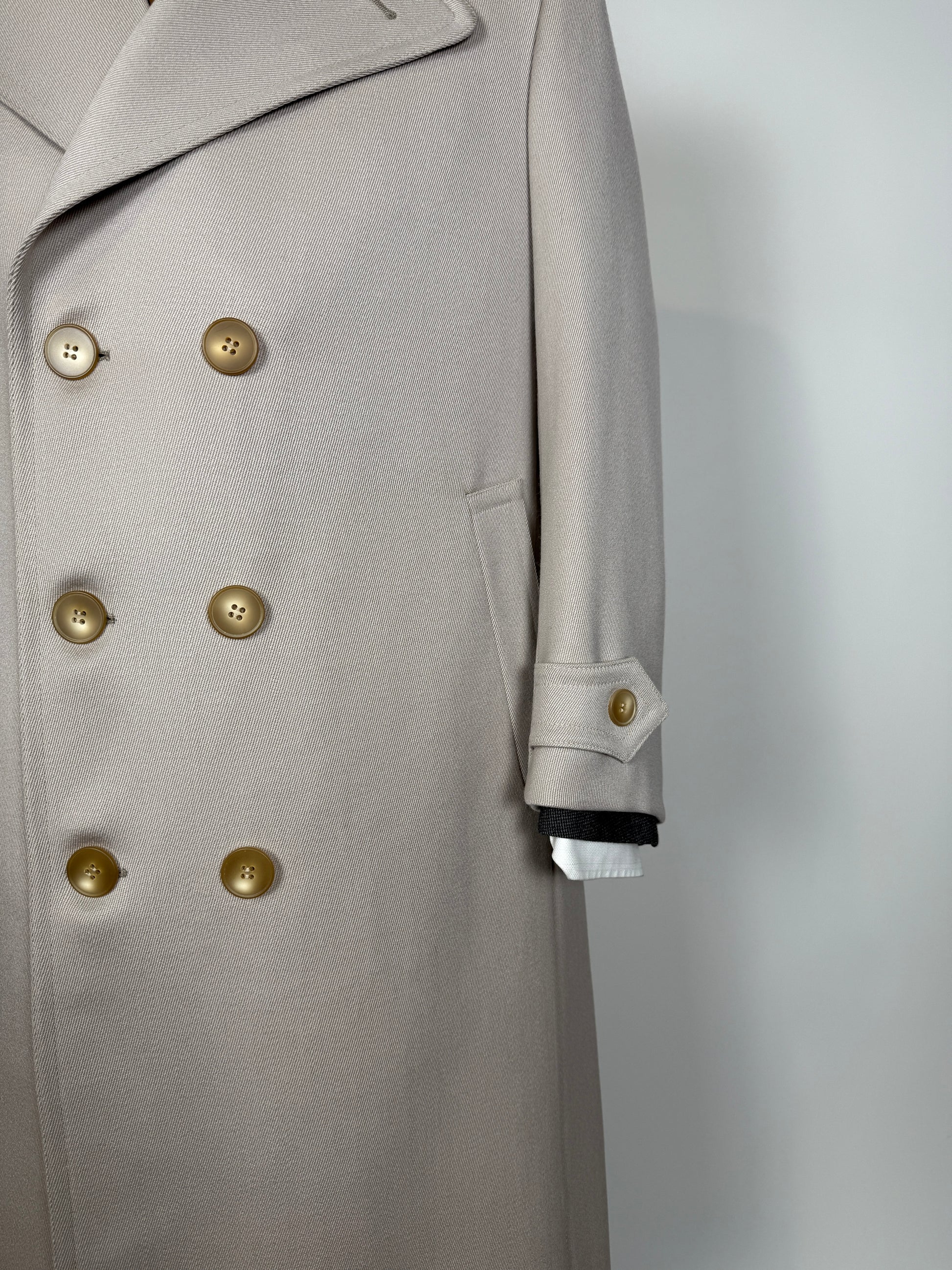 Cappotto doppiopetto anni ‘70 in twill di lana color avorio - tg. 46-48