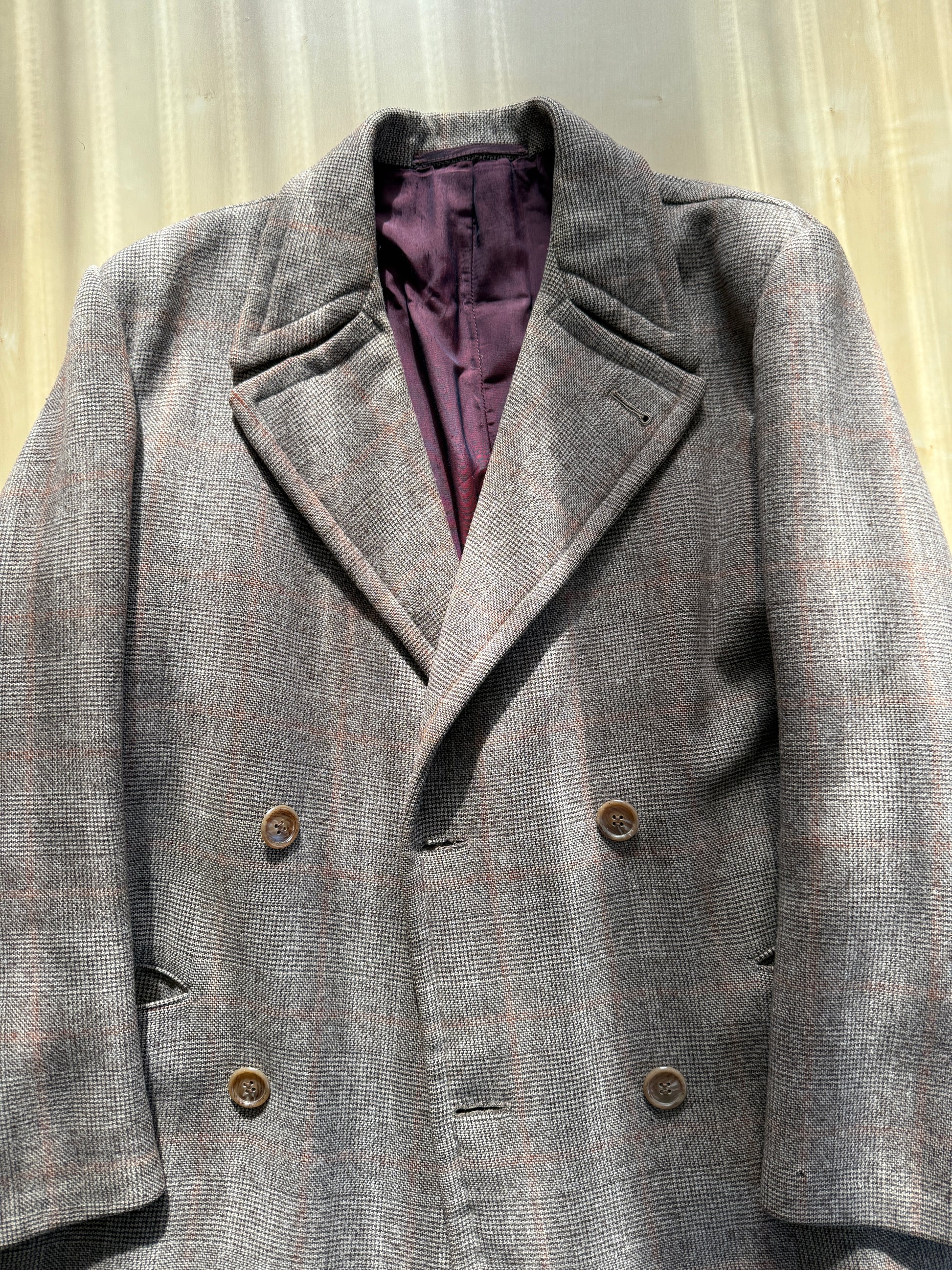 Cappotto doppiopetto sartoriale anni ‘50/‘60 glen check tabacco - tg. 44-46